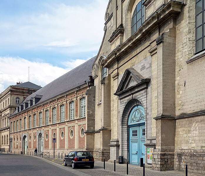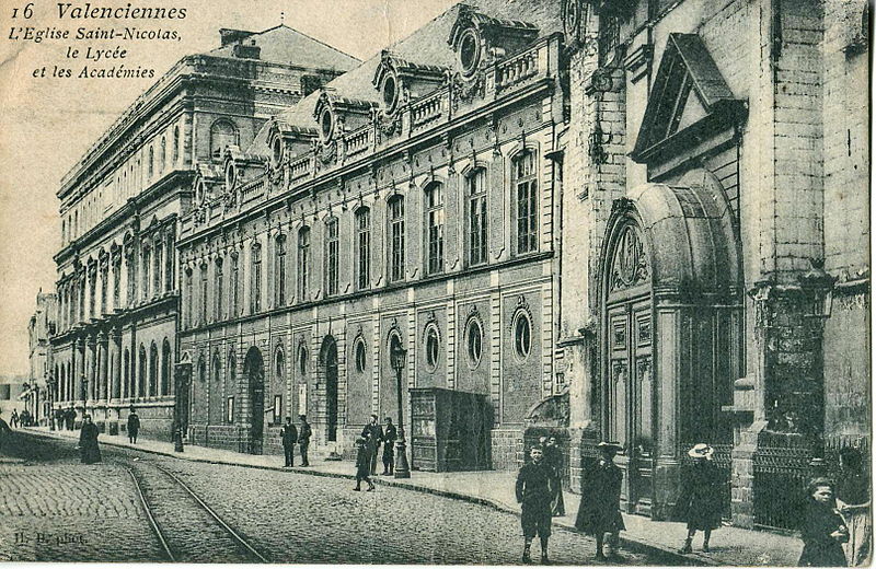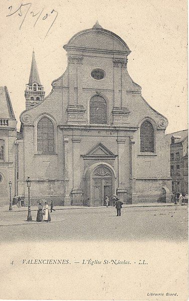 Ouvert en 1591, l'ancien collège des Jésuites de Valenciennes (Nord) est un ensemble de bâtiments édifiés au XVIIe siècle et reconstruit au XVIIIe siècle. De nouveaux bâtiments furent entrepris à partir de 1601 sous la direction des frères coadjuteurs Henri Hoeimaker pour la chapelle et Quirin Huart (1584-1628) pour le collège. Souvent inondés en raison de la proximité de l'Escaut et au moins deux fois bombardés lors des sièges de 1656 et 1677, les bâtiments furent remaniés puis reconstruits de 1735 à 1751. Les Jésuites, bannis de France en 1763, cessèrent d'y assurer l'enseignement et les locaux passèrent ensuite à d'autres mains. L'ancienne bibliothèque abrite la bibliothèque et les archives municipales de Valenciennes et a été classée au titre des monuments historiques par arrêté du 13 janvier 1937. L'ancienne chapelle, devenue l'église Saint Nicolas, a été inscrite au titre des monuments historiques par arrêté du 27 novembre 1968. La façade est en briques encadrées de pierre blanche et coiffée d'un toit d'ardoise imposant. À l'étage, treize fenêtres de style Régence tardif contrastent avec les dix œils-de-bœuf du rez-de-chaussée, encadrés de guirlandes de style « Louis XIV ».