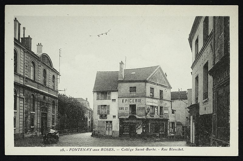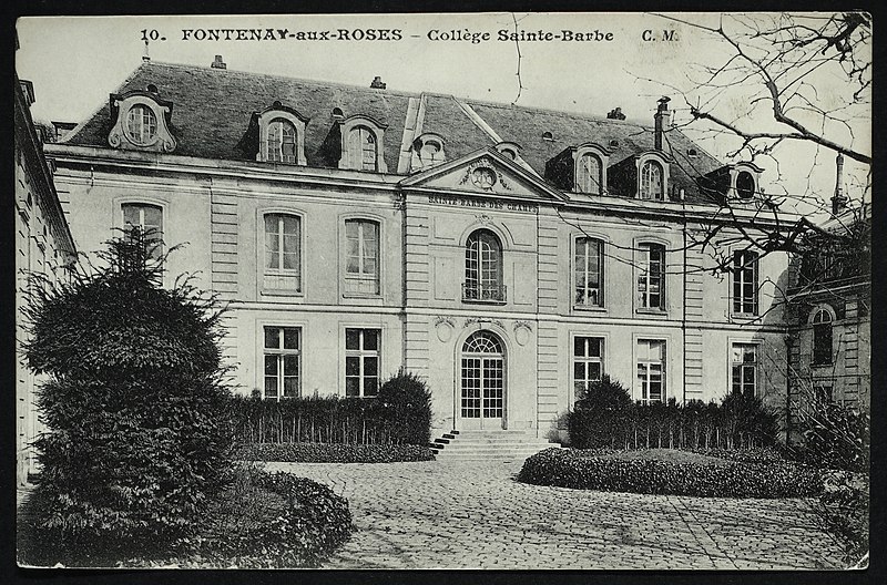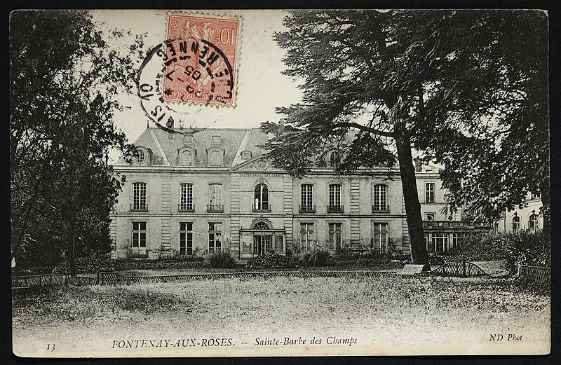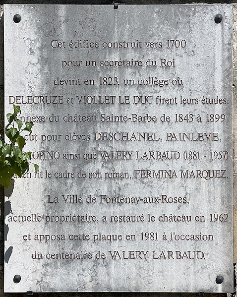 Construit dans la première moitié du XVIIIe siècle à l'emplacement de l'ancienne maison seigneuriale de Sainte-Geneviève, le château comprenait alors le corps de logis principal et une cour des communs sur l'aile est. Il a été acheté en 1851 par le collège Sainte-Barbe de Paris, qui a fait aménager le bâtiment en 1852 ; ces aménagements sont attribués à l'architecte Henri Labrouste d'après des travaux historiques. L'aile sur le jardin et, peut‑être, l'aile ouest ont été construites entre 1854 et 1862. Le collège a quitté Fontenay en 1899. Le petit séminaire de Notre‑Dame‑des‑Champs de Paris a alors acquis le domaine et y a fait remonter la chapelle construite en 1862 par Eugène Viollet‑le‑Duc, opération réalisée par l'architecte Ruprich‑Robert selon des travaux historiques. Après la loi de Séparation de l'Église et de l'État, les bâtiments saisis ont été attribués à la commune en 1907. Des logements ont été aménagés en 1927 par l'architecte Georges Boiret, selon la source. En 1937, une garderie a été installée au rez‑de‑chaussée. Une école occupe l'aile sur le jardin. La chapelle de Viollet‑le‑Duc a été démolie en 1974. Vers 1990, les anciens bâtiments de la cour des communs ont été démolis.