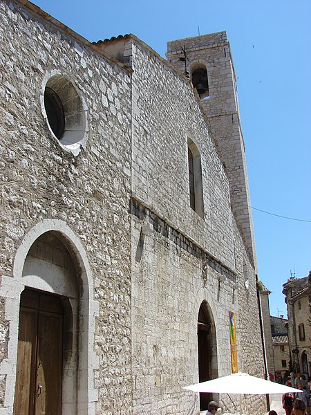La collégiale de la Conversion-de-Saint-Paul, devenue l'église paroissiale Saint-Paul, se trouve à Saint-Paul-de-Vence, dans les Alpes-Maritimes. Elle a été édifiée au point haut du castrum, à côté de l'ancien château des seigneurs de Saint-Paul dont la tour subsiste et sert aujourd'hui de mairie. À l'origine, la communauté présentait deux pôles : le castrum et un centre d'habitation situé autour de l'église Saint-Michel, peut‑être antérieur au château. Aucun document ne précise la fondation de Saint‑Paul ; en 1322 la paroisse est devenue une vicairie perpétuelle. La première église comportait une nef unique charpentée fermée par un chœur carré plus étroit voûté en berceau brisé, caractéristique qui fait penser, selon Jean‑Claude Poteur, à une construction de la seconde moitié du XIIIe siècle ou du début du XIVe siècle. Les collatéraux ont été ajoutés ultérieurement, peut‑être à la fin du Moyen Âge ou au début du XVIe siècle ; le collatéral nord ne devait pas être voûté à l'origine, les voûtes en briques actuelles ayant condamné des baies. La première travée du collatéral nord était surmontée d'un clocher mentionné dans un procès‑verbal de visite de 1699 et déjà évoqué en 1671 ; il pourrait avoir été édifié lors de l'érection en collégiale par l'évêque de Vence Antoine Godeau en 1666, décision contestée par la communauté mais confirmée par le parlement de Provence en 1671. En 1674, deux baies furent ouvertes dans le chevet pour améliorer l'éclairage du chœur, et en 1710 l'oculus de la façade occidentale fut remplacé par une fenêtre. La faiblesse des murs des collatéraux suggère qu'aucun clocher n'avait été prévu à cet endroit, ce qui expliquerait l'effondrement du clocher au début du XVIIIe siècle et la destruction partielle de la nef. Un nouveau clocher, plus haut, fut construit contre le collatéral sud en 1740 ; une plaque à sa base indique qu'il a été financé en 1728 par Flodoard Moret de Bourchenu, évêque démissionnaire de Vence, et qu'à cette date la réparation de la nef était achevée. La façade occidentale conserve les traces de l'élévation de la nef centrale, réalisée lors de la reconstruction : le procès‑verbal de 1699 signale une charpente masquée par une voûte lambrissée et la poursuite des toitures des collatéraux dans l'axe de la nef ; la surélévation se lit aux rampants primitifs visibles sur la façade. Les voûtes d'arêtes de la nef centrale datent de 1740 tandis que les arcs doubleaux sont d'origine. Deux chapelles hors‑œuvre ont été ajoutées : la chapelle Saint‑Mathieu, alignée sur le collatéral sud et prolongée par une sacristie, qui n'apparaît pas sur le plan de 1589 et existait sans doute au moment de l'édification de la chapelle des Pénitents blancs en 1654 ; et la chapelle Saint‑Clément, bâtie en 1681 perpendiculairement au collatéral sud sur la dernière travée après autorisation des consuls et financée par les frères Alexandre et Pierre‑Jean Bernardi. Un canonicat sous le titre de saint Clément martyr y fut érigé le 19 juin 1689 et le tableau qui y figure date probablement de cette époque. L'édifice est classé au titre des monuments historiques depuis le 2 septembre 1921. L'église conserve un important mobilier, lui aussi classé et répertorié dans la base Palissy : plusieurs autels sont ornés de retables et de tableaux, notamment Donation et les mystères du Rosaire (1580), une Sainte Catherine d'Alexandrie probablement exécutée à Rome au XVIIe siècle et qualifiée de «fort belle peinture» par l'évêque de Vence lors de sa visite de 1699, Saint Charles Borromée et saint François de Sales présentant des séminaristes, Saint Mathieu écrivant son Évangile sous la dictée d’un ange de Jean Daret dans la chapelle Saint‑Mathieu, La Vierge et l'Enfant avec saint Charles Borromée et saint Jean l'Évangéliste dans la chapelle Saint‑Clément — copie contemporaine d'un tableau de Carlo Maratta — et La Conversion de saint Paul, exécutée vers 1680 par Sébastien Canavesi, chanoine de Saint‑Paul. La majeure partie du mobilier et du décor a été acquise après l'érection en collégiale ; les stalles du chœur datent de 1668. Enfin, l'acte d'érection d'une confrérie du Rosaire à Saint‑Paul remonte à 1588 ; la permission accordée par le vicaire général Barthélémy de Miranda précise que le tableau de la confrérie représente la Vierge et l'Enfant remettant le chapelet à saint Dominique, avec sainte Catherine de Sienne et treize mystères en médaillons.
