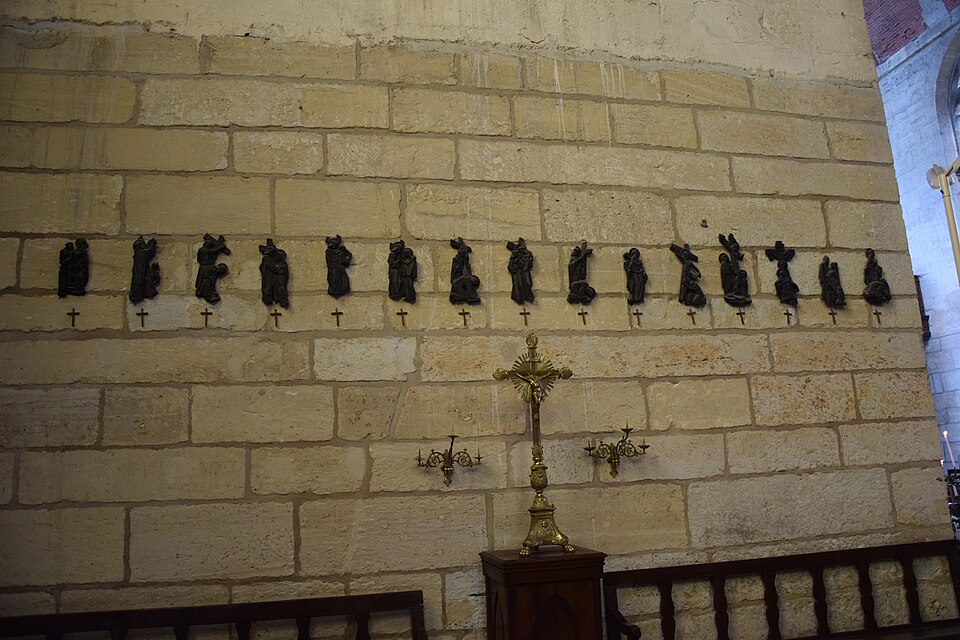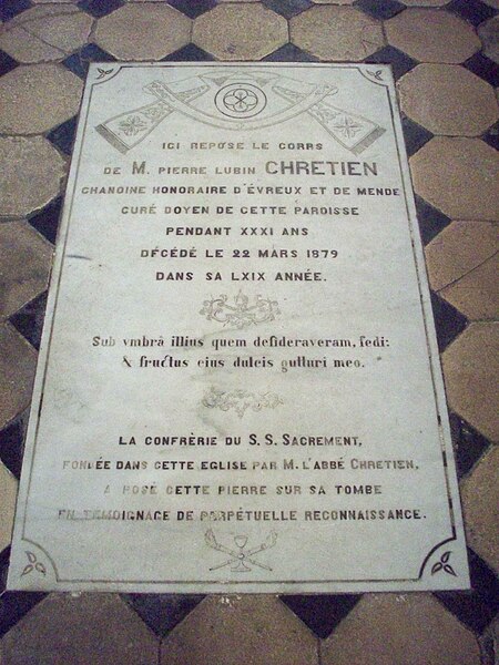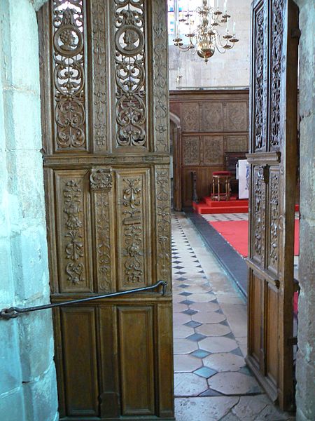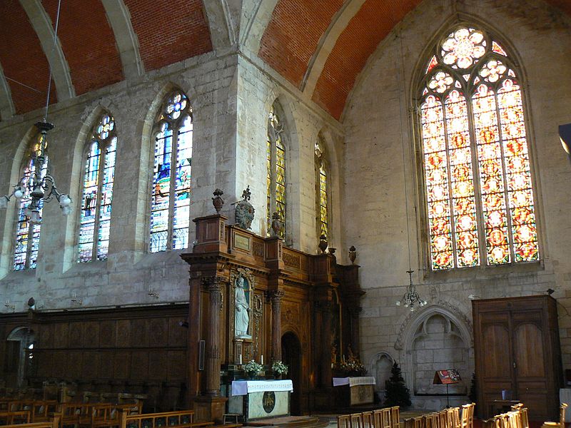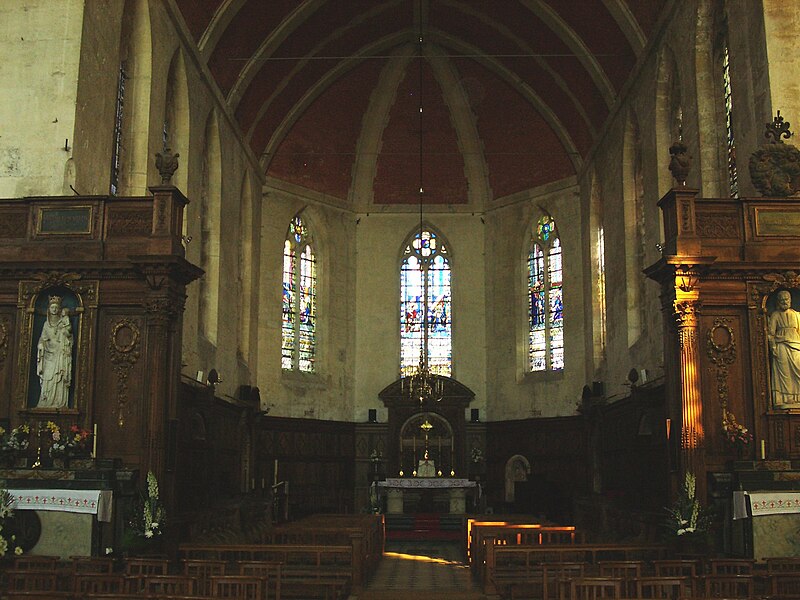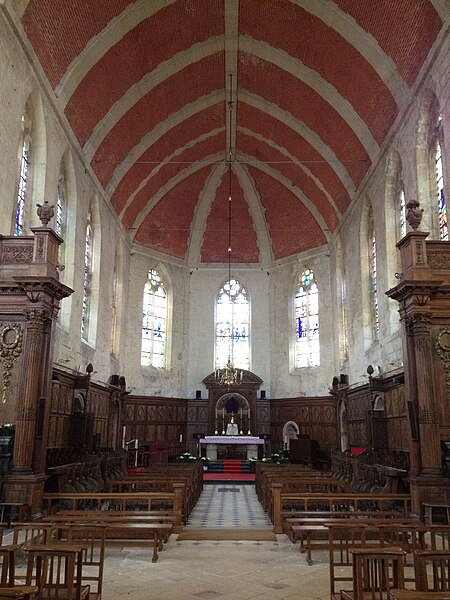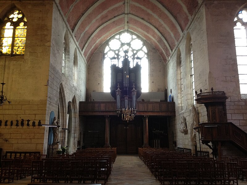 Le mobilier comprend des fonts baptismaux et une croix du XVIIIe siècle, ainsi qu'une chaire du XIIe siècle reposant sur un socle figurant symboliquement les quatre évangélistes. Les trente‑six stalles du chœur datent de la fondation de l'église et figurent parmi les plus anciennes de France; les retables et boiseries appartiennent au XVIIe siècle. La restauration du buffet d'orgue classé du XVIIe siècle ayant été jugée trop onéreuse, il fut remplacé par un orgue numérique ALLEN Elite Opus II spécialement conçu pour l'édifice, inauguré le 18 mai 2008 par Sophie‑Véronique Cauchefer‑Choplin. La statuaire est riche: sur le mur nord de la nef se voit un groupe de l'Annonciation avec la Vierge et l'ange Gabriel; dans le transept nord figurent sainte Véronique, sainte Marie l'Égyptienne et un Ecce Homo du XVe siècle; dans le transept sud se trouve une sainte Marguerite. La chapelle nord abrite plusieurs statues, notamment sainte Cécile du XIVe siècle, une statue polychrome de saint Laurent, ainsi que saint Denis et saint Martin datant du XVe siècle.