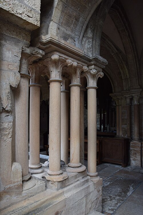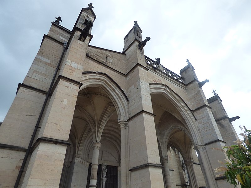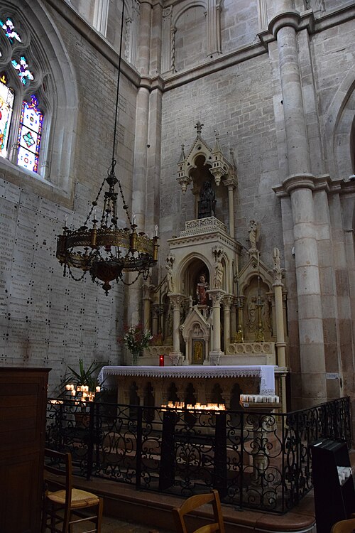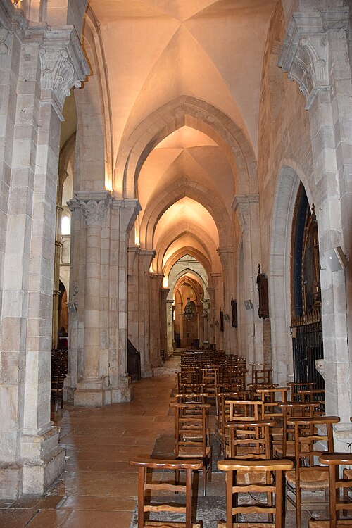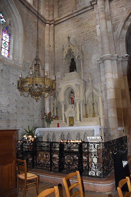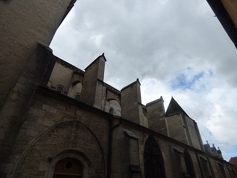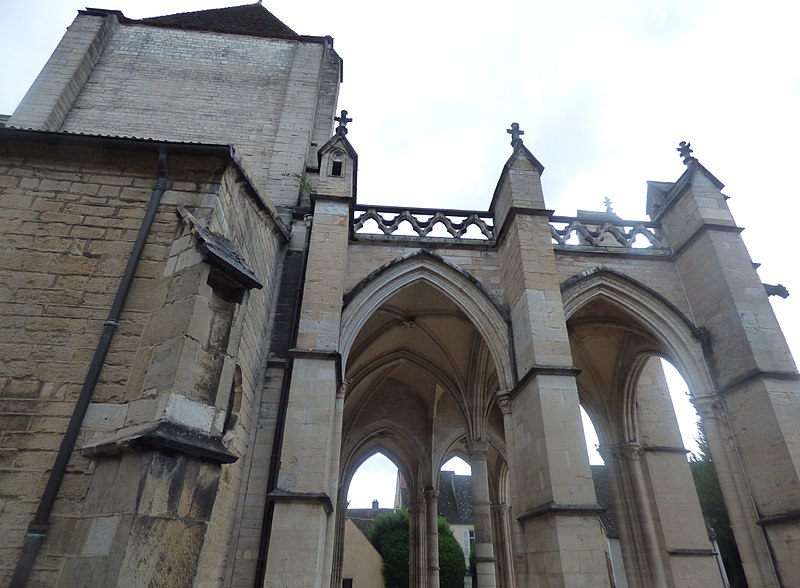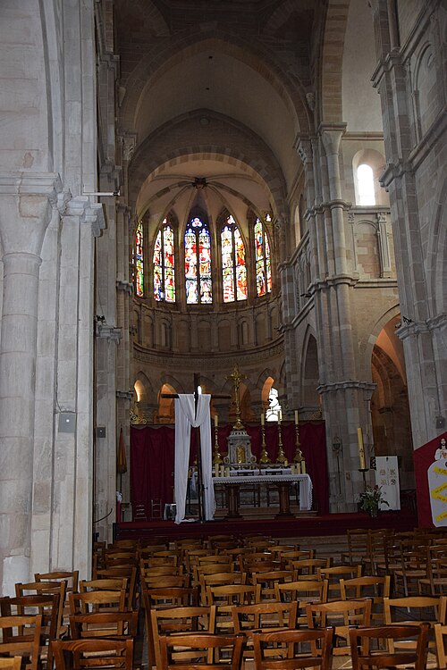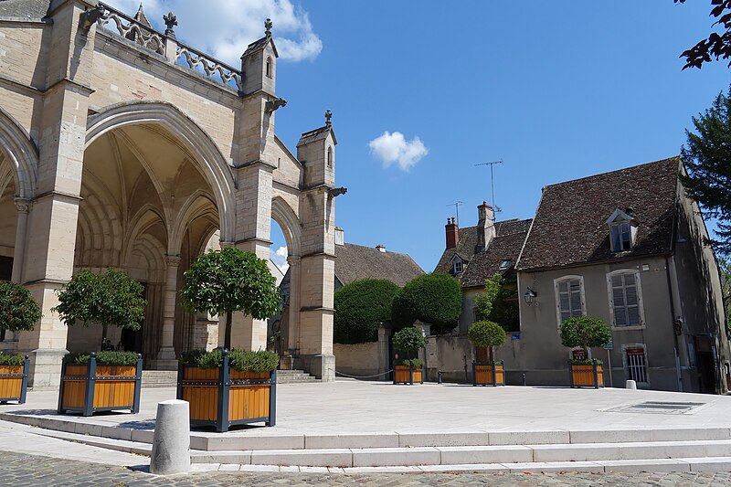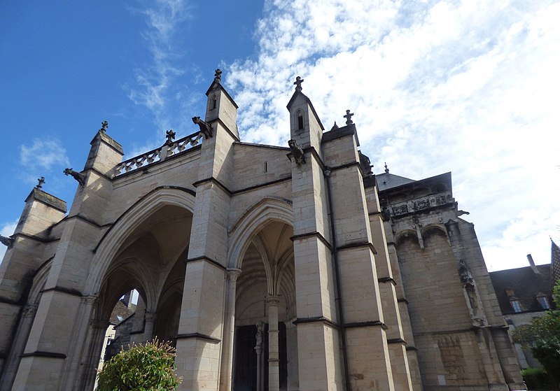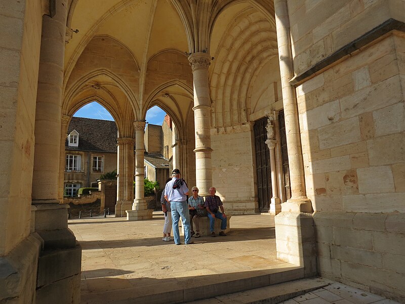 L'église Notre‑Dame de Beaune et son presbytère forment un ensemble canonial situé à Beaune, en Côte‑d'Or, dont la construction a été engagée au milieu du XIIe siècle et achevée au début du XIIIe siècle. Les bâtiments canoniaux datent de la fin du XIIe siècle et le porche du milieu du XIIIe siècle. Après l'incendie de 1272, d'importants travaux de reconstruction concernèrent les parties hautes de l'abside, où l'arcature aveugle fut reprise, les fenêtres romanes furent remplacées par de grandes baies gothiques à remplages et des arcs‑boutants furent établis sur les contreforts romans du déambulatoire. Les corniches, les baies du déambulatoire, les toitures et la tour du transept furent également remaniées. Des chapelles furent ajoutées du XIIIe au XVIe siècle ; parmi elles, la chapelle Saint‑Léger, ornée de peintures murales, et la chapelle du chanoine Bouton (1529‑1533) se distinguent. La flèche gothique de l'église fut remplacée par un toit à l'impériale construit de 1580 à 1588 selon les plans d'Hugues Sambin. La Révolution destruisit la statuaire du portail et une grande partie du mobilier liturgique ; un fragment d'autel roman retrouvé en 1843 est aujourd'hui exposé dans l'église. Eugène Viollet‑le‑Duc établit un devis de restauration en 1844 ; les travaux débutèrent en 1860 sous la direction de Maurice Ouradou, avec Alphonse Forest comme inspecteur, et se concentrèrent surtout sur les extérieurs : les huit arcs‑boutants de la tour de la croisée furent détruits et le couronnement occidental fut repris en 1886, avec une réinvention des ornements sculptés. L'édifice est classé au titre des Monuments historiques depuis la liste de 1840, et le bâtiment conventuel utilisé comme presbytère est inscrit depuis le 26 mai 1926. L'église comprend une nef à deux bas‑côtés, un transept et un chœur avec abside, déambulatoire et chapelles rayonnantes ; la nef, le transept et le chœur sont couverts de voûtes en berceau brisé, les bas‑côtés et le déambulatoire de voûtes d'arêtes, tandis que le porche, l'abside, les chapelles, le cloître et la salle capitulaire présentent des voûtes d'ogives ; la chapelle Bouton est, elle, couverte d'un plafond. Dans le chœur est exposée une tenture de la Vie de la Vierge offerte par le chanoine Le Coq en 1500, classée au titre d'objet le 10 octobre 1891. L'église abrite un grand orgue dont le buffet peint et sculpté contient un instrument daté du XVIIe siècle et modifié à plusieurs reprises ; il comprend quatre claviers, un pédalier et une cinquantaine de jeux, et son titulaire est, depuis 1976, l'organiste Michel Tissier. À gauche du chœur se trouve l'ancienne sacristie et, à droite à l'étage, l'ancienne chapelle Saint‑Michel, oratoire privé de Nicolas Rolin, dont l'abside éclairée par une fenêtre en plein cintre est soutenue par un cul‑de‑lampe et couronnée par une terrasse bordée d'une balustrade. Un couloir reliait ces espaces au bâtiment canonial ; le portail du bras droit du transept donne sur une galerie de cloître à sept travées surmontée d'une partie des anciens bâtiments canoniaux, aujourd'hui utilisée comme presbytère. Parmi les œuvres et personnalités liées à l'édifice figurent une Adoration du Sacré‑Cœur de Gabriel Revel (vers 1690) ainsi que des personnalités telles que Jean VI Rolin et le maître de musique Jacques Huyn.