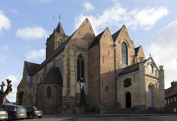 La collégiale Notre-Dame est une ancienne collégiale située à Cassel, dans le département du Nord. Elle est classée au titre des monuments historiques depuis le 22 décembre 1981. L'existence d'une église à cet emplacement est attestée depuis le Xe siècle ; incendiée et profanée à plusieurs reprises, elle a été reconstruite sur ses anciennes fondations. Après la Révolution, l'édifice a successivement servi d'écurie, de prison, d'hôpital puis de Temple de la Raison ; sa forme actuelle résulte d'une restauration menée sous l'impulsion de l'archevêque de Cambrai, à une époque où le diocèse de Lille n'existait pas encore. La statue miraculeuse de Notre-Dame de la Crypte, vénérée à Cassel depuis le XVIe siècle et conservée dans la crypte de la collégiale Saint-Pierre, a longtemps été objet de dévotion locale : on rapporte que le maréchal Foch priait devant elle chaque jour durant son séjour à Cassel pendant la Première Guerre mondiale et que, par son intercession, la ville aurait échappé aux bombardements qui frappaient la Flandre. En témoignage de gratitude, la population offrit une bannière représentant la sainte patronne, aujourd'hui exposée au musée départemental de Flandre à Cassel. La neuvaine à Notre-Dame de la Crypte se tient chaque année du 2 au 10 juillet ; les Casselois la prient pour la protection et la vie de la cité. Le culte de saint Roch fut autrefois très présent : la légende veut que saint Roch ait arrêté la peste aux portes de Cassel, rue Moeneclaye, et jusqu'au milieu du XXe siècle la ville célébrait une neuvaine en son honneur en décembre, honorant chaque année un garçon de la rue Moeneclaye en souvenir du miracle. La collégiale est également liée à la présence des frères Récollets, établis à Cassel jusqu'à la Révolution ; la paroisse actuelle, dédiée à saint François, porte ce nom en raison de la longue présence de ces religieux dans le pays de Cassel. L'église actuelle, de style gothique, présente trois nefs de même hauteur, typiques de l'église-halle (hallekerk en flamand), et une haute tour carrée s'élève au-dessus du chœur. Parmi le mobilier, on note une Annonciation d'Alexis Bafcop, commandée pour le retable de la Vierge et érigée en 1847 ; vers 1900 ce tableau fut déposé pour céder la place à une statue et fut alors accroché sur un mur voisin ; il relève du classicisme davidien. Le retable en marbre et bois peint date du XVIIIe siècle. Le chœur était orné de fresques peintes au XIXe siècle par Alexis Bafcop, assisté de son frère Ambroise ; ces fresques, qui représentent les apôtres et diverses scènes de la vie de l'Église, ont été restaurées en 2009 mais n'ont pas pu être entièrement préservées en raison de leur fort mauvais état. On conserve également des éléments de fer forgé du XVIIIe siècle. L'orgue et son buffet, transformés en 1821, portent l'inscription « Les orgues chantent par les dons des citoyens » ; leurs facteurs sont René Germain, Pierre Loncke, Frédéric Loncke et Bernard Cogez. Au sommet du buffet figurent deux statues imposantes, le roi David avec sa harpe et sainte Cécile, ainsi que trois angelots en bois jouant du clairon. La première église de Cassel est attestée depuis le Xe siècle et la collégiale Notre-Dame resta la seule paroisse de la ville jusqu'en 1993, date de création de nouvelles paroisses. Avant cela, Cassel comptait trois paroisses — Notre-Dame, Saint-Nicolas et la Quaestraete — ainsi que trois autres églises : la collégiale Saint-Pierre, l'église des Jésuites et celle des sœurs chanoinesses augustines. Après la Révolution, la paroisse de Cassel s'est calquée sur le découpage communal et Notre-Dame est devenue l'unique église paroissiale. Depuis 1993, la paroisse nouvelle de Saint François des Monts de Flandres regroupe les clochers de six communes : Cassel (collégiale Notre-Dame), Hardifort (église Saint Martin), Zuytpeene (église Saint Vaast), Bavinchove (église Saint Omer), Oxelaere (église Saint Martin) et Sainte-Marie-Cappel (église Notre-Dame). En 2021, le curé de la paroisse était le père Christophe Vasse.
