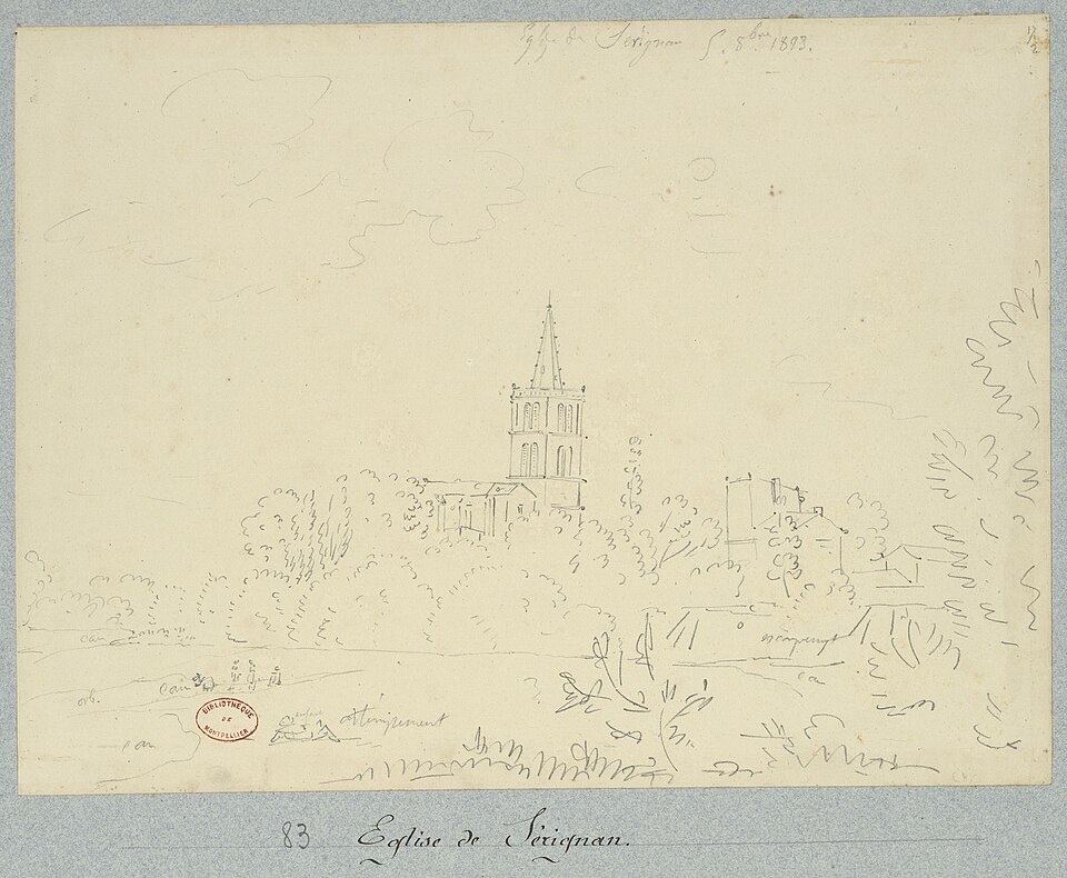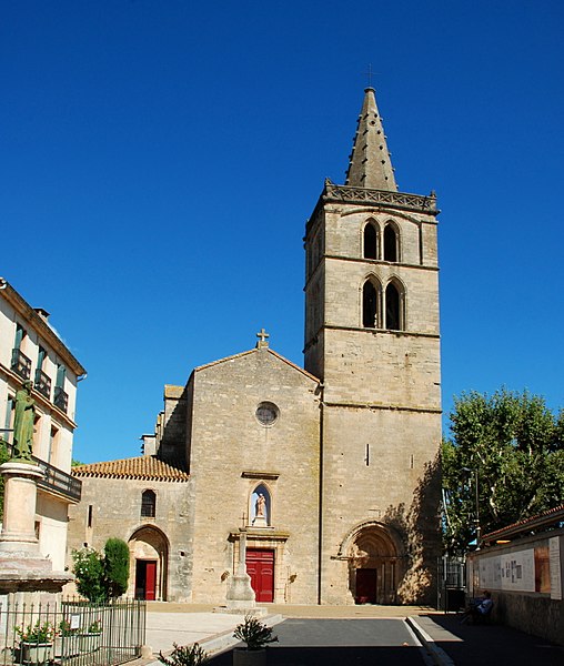 L'église Notre‑Dame de Grâce, ancienne collégiale de Sérignan (Hérault), réunit des éléments romans et gothiques. La nef date du XIIIe siècle et le chœur du début du XIVe siècle. Le chœur se compose d'une travée dont les murs présentent un réseau de meneaux et de moulures imitant la claire‑voie d'une large baie. L'abside à sept pans s'ouvre par sept fenêtres à meneaux ; ses nervures retombent sur des colonnettes aux chapiteaux sculptés. Le chevet roman de l'absidiole sud subsiste parmi les vestiges romans. Deux clochers, élevés sur la première travée de chaque bas‑côté, flanquent l'édifice ; celui du nord est resté inachevé. La tour‑clocher, imposante et proche d'un donjon guerrier, est pourvue de mâchicoulis qui défendent notamment les portes sous les clochers et la façade. Le dernier étage, la balustrade et la flèche en pierre du clocher sud datent du XVIe siècle. Des chapelles ont été ajoutées du XVe siècle à nos jours et des éléments défensifs ont été intégrés à la fin du XVIe siècle. L'édifice fut mentionné dès 990 ; prieuré dépendant de l'abbaye de Saint‑Thibéry en 1218, il fut institué église de pèlerinage des "Peregrinatores minores" en 1229 et desservi par un chapitre collégial. À partir de 1229, la collégiale fut reconstruite en plusieurs étapes en réutilisant des vestiges romans. Le chœur témoigne de l'intervention d'un atelier français qui a reproduit un modèle importé. Une fausse voûte en briques construite sur la nef en 1865 s'est effondrée en 1962, révélant la charpente peinte d'origine ; l'édifice fut alors entièrement restauré d'après les modèles anciens. Les vitraux ont subi de nombreux remplacements au fil des siècles ; l'abside, ouverte par sept hautes fenêtres à meneaux, reçoit un ensemble de verrières réalisées par les ateliers de Mauvernay et posées en 1879. La collégiale abrite trois cloches de volée fondues en 1891 par Burdin‑Aîné (Lyon), accordées en Ré#3, Sol3 et La#3. L'orgue comprend deux claviers de 56 notes — un Grand‑Orgue de sept jeux et un Récit de six jeux — ainsi qu'un pédalier de 30 notes avec jeux empruntés au Grand‑Orgue ; la transmission est électropneumatique et la console amovible est reliée par câble. L'église est classée au titre des monuments historiques depuis le 16 septembre 1907.