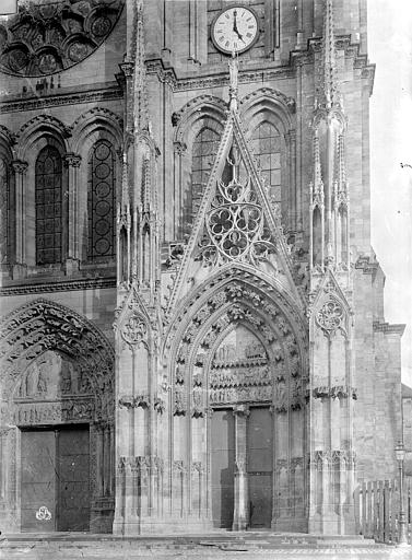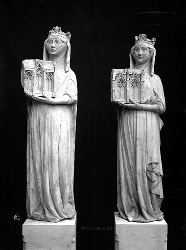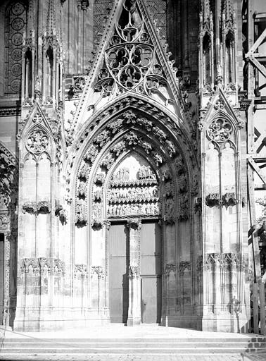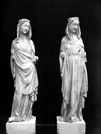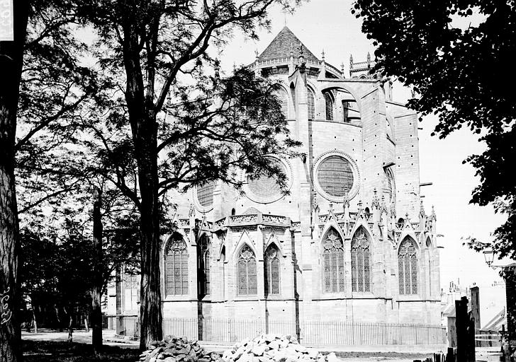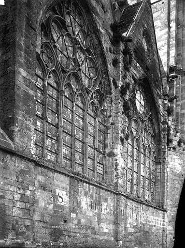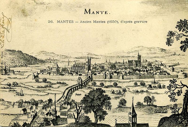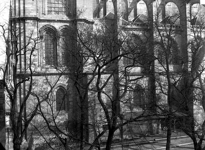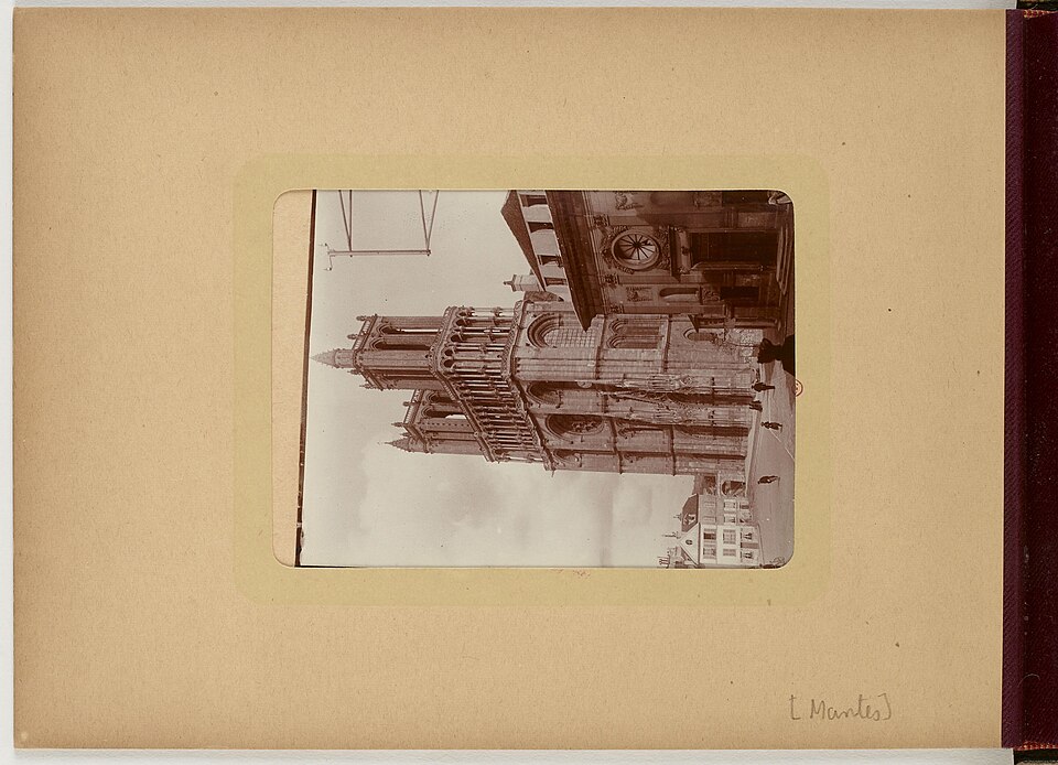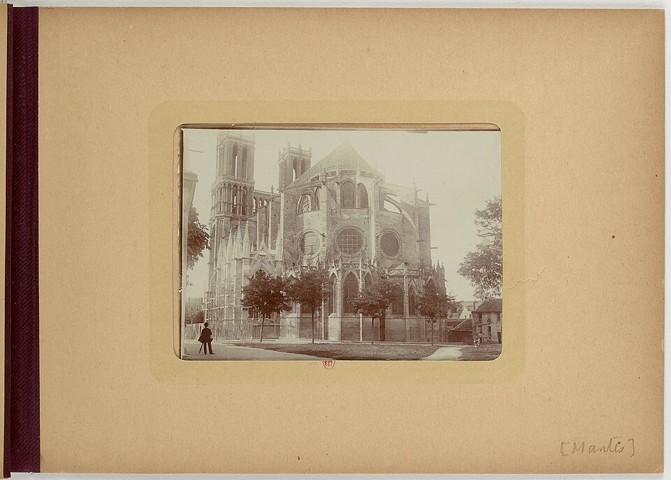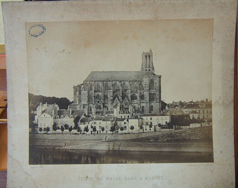 La collégiale Notre-Dame de Mantes-la-Jolie prend forme au milieu du XIIe siècle : le premier niveau de la façade occidentale est daté de 1155 et des études situent la mise en chantier autour des années 1150-1160. Sa construction suit les étapes du gothique d'Île-de-France : les parties basses relèvent du premier art gothique, avec un haut vaisseau encadré de bas-côtés et un chœur sans chapelles rayonnantes, tandis que l'élévation des parties supérieures et des tribunes appartient au deuxième âge gothique. Des campagnes datées de 1170-1175 témoignent de cette seconde phase ; les baies hautes sont achevées avant 1200 et le voûtement sur croisée d'ogives de la nef intervient au début du XIIIe siècle. Les voûtes commencent par l'abside et les travées voisines de la nef pour se poursuivre vers l'ouest, et la datation des charpentes par dendrochronologie confirme que leur pose suit l'achèvement des baies hautes. La façade occidentale, achevée sous l'influence de Laon, présente le principe du triplet de baies surmonté d'une rose. Les travaux semblent connaître une interruption avant la reprise vers 1240 pour la construction des étages des tours ; par la suite, des chapelles rayonnantes sont ajoutées au chevet entre la fin du XIIIe et le début du XIVe siècle, et des chapelles latérales sont aménagées le long des bas-côtés. La chapelle de Navarre est fondée en 1313 et le portail des échevins est exécuté vers 1320. Pendant la guerre de Cent Ans, à partir de 1351, Charles de Navarre fortifie l'église avec une clôture, un pont-levis et des aménagements intérieurs tels qu'un puits, des moulins et des fours ; la collégiale reprend sa fonction cultuelle en 1432. La tour nord est reconstruite à partir de 1492 et achevée en 1508 après un effondrement antérieur. L'édifice subit de graves dégradations à la Révolution : pillage du mobilier et martellement de nombreuses statues en 1794 ; il est alors successivement converti en temple de la Raison, fabrique de salpêtre et forge, puis rendu au culte en 1795 avec des réparations sommaires. Au début du XIXe siècle, les architectes signalent l'état alarmant des toitures, des tours, des voûtes et du pavage ; les interventions initiales restent limitées faute de crédits. Après la création des Monuments historiques, l'État finance des campagnes de restauration ; sous la direction de Postel, puis du contrôle de Labrouste, on intervient sur la façade sud (1839) et la façade ouest (1840-1842), mais ces travaux sont critiqués et Labrouste démissionne. Questel engage des travaux urgents sur la tour nord, que l'on démolit à partir de 1845 pour la relever après reprise des parties basses ; en 1846 Alphonse Durand lui succède et reconstruit la tour nord sur le modèle de la tour sud, réunissant les deux tours par une haute galerie inspirée de Notre-Dame de Paris, ouvrages achevés en 1855. La tour sud est consolidée en 1858, les voûtes hautes reprises de 1867 à 1870, puis plusieurs voûtes s'effondrent en 1870 à la suite de la destruction du pont et sont aggravées par un ouragan en 1872 ; les réparations sont financées et engagées en 1873. Durand restaure encore le portail droit entre 1877 et 1880, et l'architecte Simil dirige de 1888 à 1895 des travaux de consolidation de la tour sud. Au XXe siècle et après la Seconde Guerre mondiale les restaurations se poursuivent, notamment la restitution des remplages, puis des campagnes récentes ont porté sur la réfection de la toiture (1998-2003) et la restauration des portails de la façade occidentale (1996-1998) sous la maîtrise d'œuvre de l'ACMH Bernard Fonquernie. Le décor en tuiles polychromes, documenté par un dessin de Durand vers 1850 et décrit dès 1791 par Millin, a été restitué à l'identique au XIXe siècle et constitue aujourd'hui l'un des éléments visibles de cette phase de restauration. Par son élévation à trois niveaux et par certains choix stylistiques, la collégiale reflète l'influence des grands chantiers parisiens et exprime l'ampleur des ambitions et des moyens liés à sa proximité avec le pouvoir royal depuis l'époque médiévale.