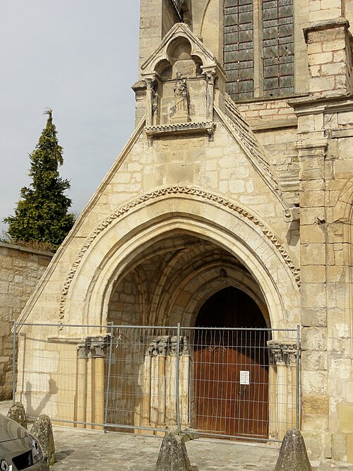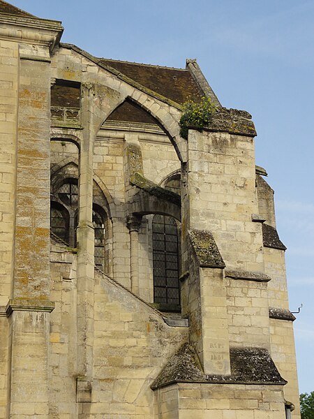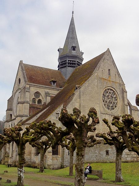 L'église présente un plan cruciforme singulier par son étroitesse est-ouest qui n'excède pas l'extension nord-sud. Elle se compose d'une nef de deux travées flanquée de bas-côtés — le bas-côté nord ayant été doublé au XVIe siècle — d'un transept saillant et d'un chœur au chevet plat, flanqué de deux bas-côtés prolongés par de petites chapelles qui ne communiquent pas avec le transept. Le seul accès est le portail sous le porche méridional. À l'intérieur, l'élévation s'organise sur trois niveaux — grandes arcades, triforium et fenêtres hautes — et le triforium, présent sur presque toutes les parois, constitue un élément structurant remarquable, l'un des premiers exemples de triforium ajouré pour les extrémités du transept. La nef, le transept et le chœur sont voûtés d'ogives ; la croisée a reçu une voûte à liernes et tiercerons lors des réparations de la période flamboyante.
