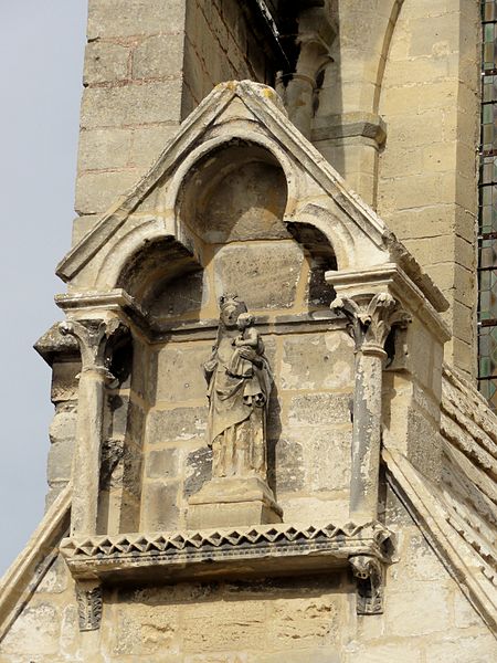 L'extérieur paraît disparate mais traduit une ambition intérieure : la silhouette compacte met en valeur la largeur du transept et l'élévation sur trois niveaux. La façade méridionale, tournée vers la place de l'Église, fait office de façade principale, tandis que la façade occidentale donne sur une ruelle et le site de l'ancien château d'Argyle ; le chevet est enclavé dans une propriété privée et la façade nord s'ouvre sur une partie gazonnée de la place. La lecture des parements permet de distinguer les deux campagnes médiévales, la pierre étant plus sombre en bas et plus claire en haut ; la façade du croisillon sud présente deux fenêtres basses d'inspiration romane et une grande rosace d'époque postérieure, tandis que la façade ouest conserve une rosace très travaillée et un ancien portail bouché muni d'un tympan sculpté. Les arcs-boutants sont inégalement répartis selon les côtés, la toiture du second bas-côté nord ayant entraîné la suppression de certains d'entre eux.