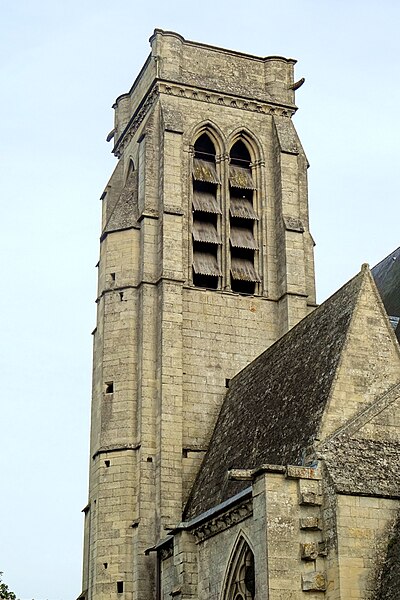 Les croisillons et collatéraux conservent des arcatures aveugles et des fenêtres au remplage varié ; le croisillon sud porte les traces d'une ancienne hotte de cheminée, indice d'équipements présents dans l'église romane. La base du clocher, surmontée d'un étage de beffroi percé de baies abat‑son, se termine par une plate‑forme rare dans la région ; la décoration comporte des archivoltes, des colonnettes, une frise de crochets et quelques gargouilles.