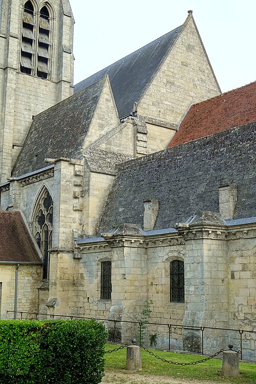 L'ancienne collégiale Notre‑Dame de Montataire, dans l'Oise, est une église catholique édifiée à la fin du XIIe siècle comme collégiale seigneuriale et annexe du château voisin. La nef romane et les bas‑côtés datent de cette période ; vers 1225‑1230 on a ajouté des portails gothiques et voûté les bas‑côtés, tandis que le voûtement de la nef, amorcé, restera inachevé. Entre 1250 et 1260 le chœur primitif a été remplacé par un vaste chœur gothique rayonnant, considéré comme l'une des réalisations majeures de la région. Malgré un plan irrégulier et parfois asymétrique, l'édifice se distingue par son élégance, sa légèreté, la qualité sculpturale de ses chapiteaux et sa décoration soignée. La collégiale a traversé les guerres sans destructions notables ; l'église paroissiale Saint‑Léonard a été abandonnée au profit de la collégiale à une date indéterminée. La Révolution a supprimé le chapitre de chanoines mais n'a pas entraîné la démolition du bâtiment. Classée au titre des monuments historiques dès la liste de 1862 pour la qualité exceptionnelle des parties orientales, l'église a bénéficié de plusieurs campagnes de restauration depuis le XIXe siècle. Elle est aujourd'hui peu utilisée pour le culte, la paroisse privilégiant l'église du Christ Ressuscité, inaugurée en 1962.