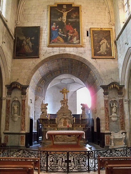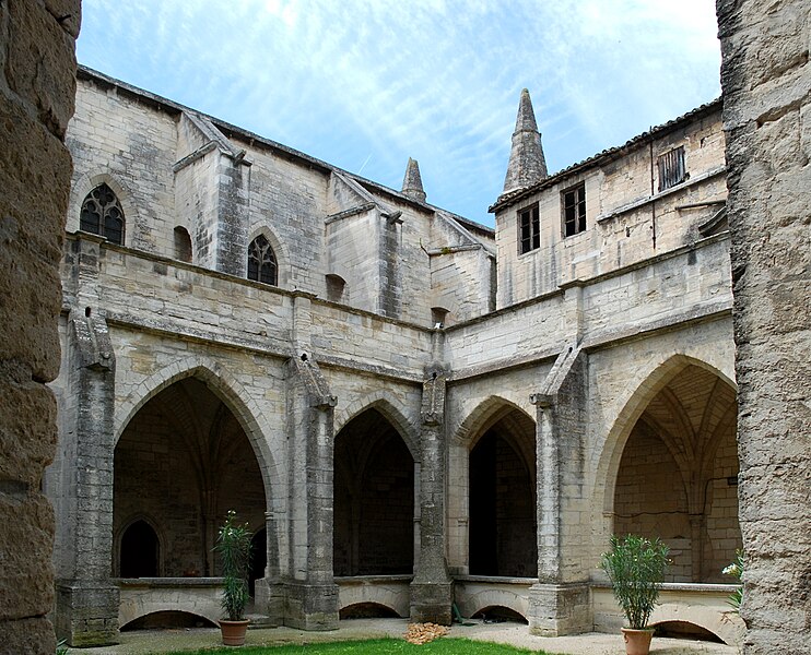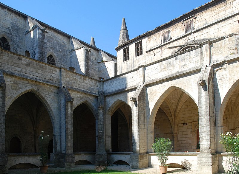La collégiale Notre‑Dame de Villeneuve‑lès‑Avignon, dans le Gard, s’inscrit dans l’histoire de la fondation de Villeneuve par Philippe le Bel en 1293 et dans le développement lié à l’installation de la cour pontificale à Avignon à partir de 1309. Le cardinal Arnaud de Via, neveu du pape Jean XXII, s’installe à Villeneuve vers 1320 et fait construire un palais dont l’existence est attestée dès 1322. Entre 1327 et 1333 il rassemble des terres au sud de sa demeure pour y édifier une chapelle, consacrée le 1er juin 1333 par le pape Jean XXII. Par un acte daté du 7 août 1333, il fonde sous le vocable de la Vierge une collégiale composée de douze chanoines et l’endette de son palais, de jardins, de terres environnantes et de biens situés à Montault, aux Angles, à Sorgues, à Aramon, à Théziers et à Beaucaire. Le roi autorise la création du porche d’entrée à l’est le 1er avril 1334. Le cardinal meurt peu après et est inhumé dans sa chapelle ; ses chanoines héritent de la fondation. Dès 1336 les chanoines construisent le cloître entre l’église et le corps de logis du palais, modifient l’orientation de l’église en ouvrant une nouvelle porte au sud et remplacent l’ancien chœur ouest par le chœur actuel à l’est. La collégiale se dote d’un clocher‑beffroi achevé en 1362. La chapelle du Saint‑Esprit est ajoutée au coin nord‑est du cloître en 1540. Les bâtiments sont remaniés au xviiie siècle par l’architecte Jean‑Baptiste Franque, qui, entre 1732 et 1749, recouvre notamment le chœur des chanoines d’une voûte à cinq branches. À la Révolution le chapitre est supprimé : le corps de logis du palais et les terres arrière sont vendus, et la collégiale devient alors l’église paroissiale de Villeneuve en remplacement de l’église Saint‑Pons. Classée au titre des monuments historiques dès la liste de 1862, l’église et le cloître font l’objet de restaurations successives ; en 1877 la tour reçoit un couronnement orné de créneaux et de mâchicoulis. Entre 1992 et 2019 une campagne de restauration, soutenue par l’État pour un montant supérieur à un million d’euros, a porté sur la couverture, la charpente du clocher, la partie haute de la façade nord, la façade ouest et ses clochetons, les murs gouttereaux de la nef ainsi que la porte sud et son décor peint.
