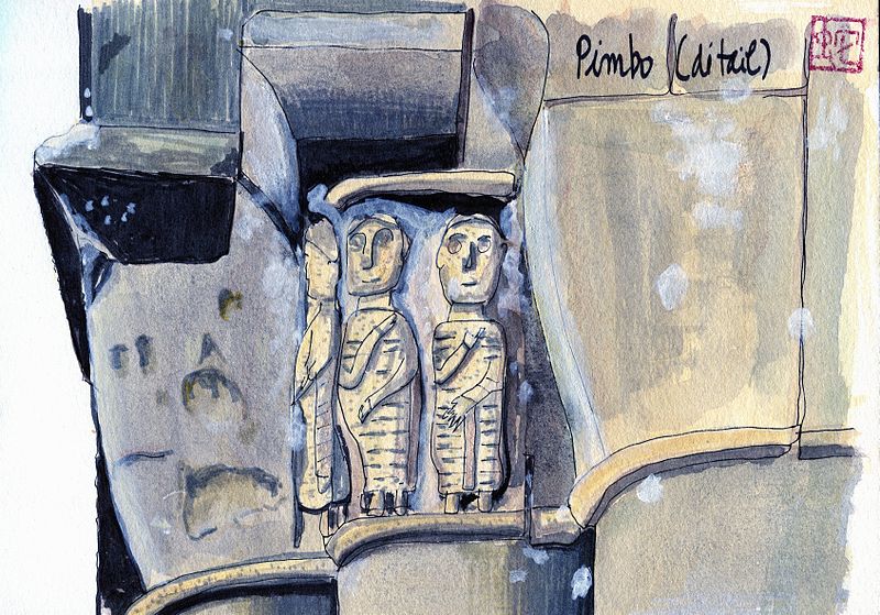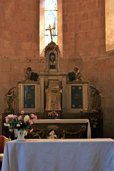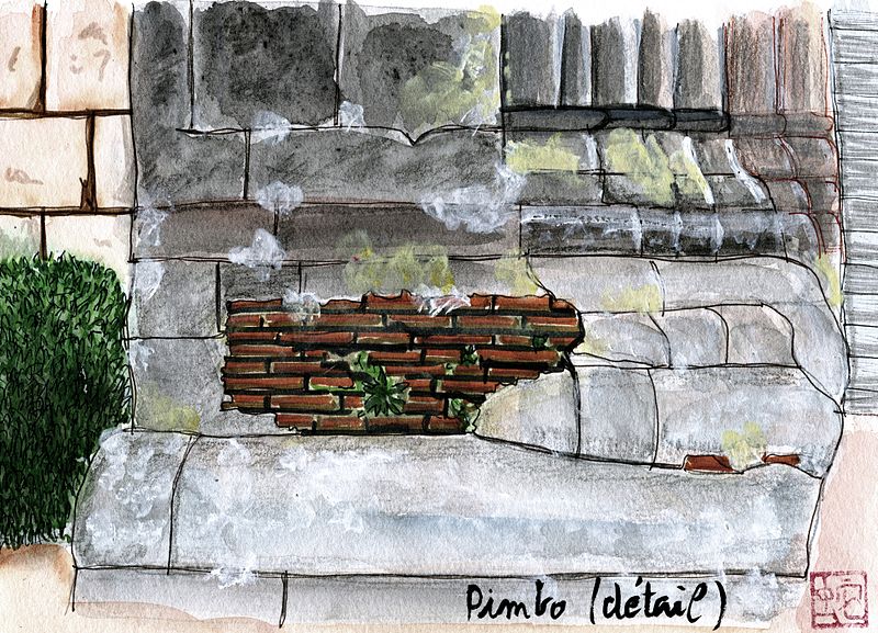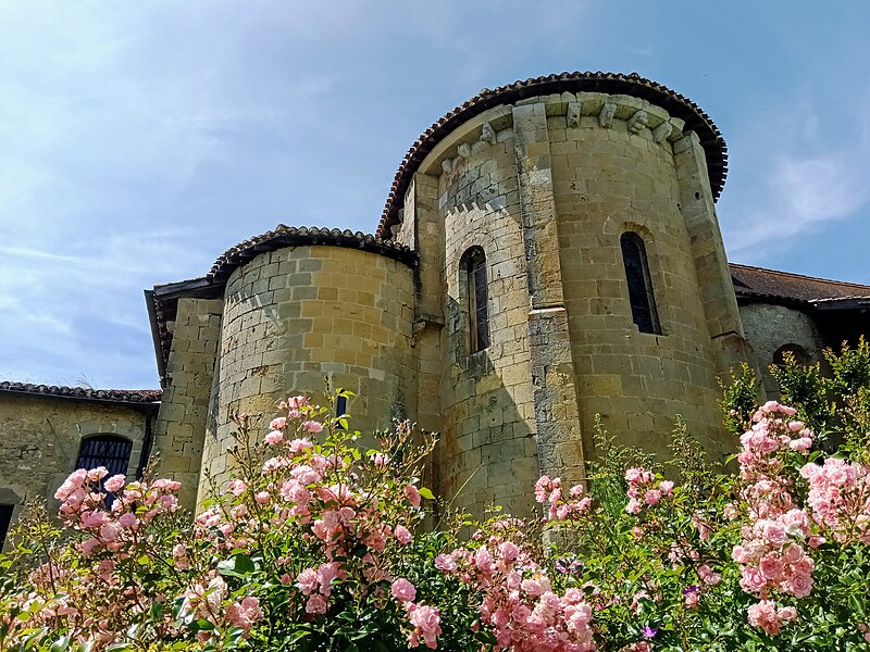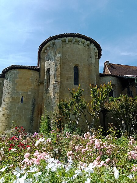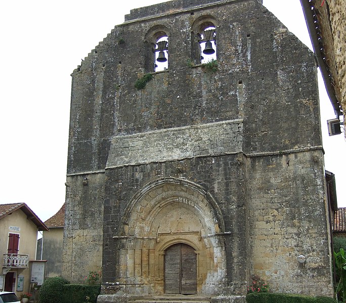 La collégiale Saint-Barthélemy de Pimbo, située dans la commune de Pimbo dans les Landes, est une ancienne collégiale et une étape de la Via Podiensis du pèlerinage de Saint-Jacques-de-Compostelle. Mentionnée pour la première fois dans un texte du XIe siècle, la tradition locale attribue sa fondation à Charlemagne ; les parties les plus anciennes datent du XIIe siècle. L'édifice roman, à trois nefs et trois absides, conserve un caractère globalement défensif malgré de nombreuses destructions et restaurations. Pendant les guerres de religion l'église, la maison abbatiale et les maisons canoniales furent incendiées ; des objets précieux furent emportés et plusieurs membres du clergé victimes de violences. Le logis abbatial, accolé au nord, fut reconstruit puis transformé au XIXe siècle en presbytère ; il abrite une belle salle romane voûtée. Le portail roman de la façade principale présente plusieurs voussures en plein cintre ornées de motifs géométriques, végétaux et de moulures, retombant sur de fortes colonnettes, et comporte quelques figures et un chapiteau sculpté d'exécution maladroite. Le chevet est formé de trois absides peu profondes, l'abside centrale précédée d'une travée droite de chœur ; l'ensemble est renforcé par des contreforts à ressauts, percé de fenêtres à double ébrasement et couronné d'une corniche soutenue par des modillons sculptés. L'homogénéité de l'appareil et la concordance des assises montrent que cette partie fut édifiée en une seule campagne. Les modillons portent des décors végétaux, des boules, des rouleaux et un personnage accroupi portant un tonneau, et plusieurs chapiteaux intérieurs subsistent avec rinceaux, motifs végétaux ou animaux. La nef à trois vaisseaux est couverte d'une voûte en plein cintre ; ses murs témoignent de restaurations dès le Moyen Âge et, rehaussée au XIVe siècle pour des raisons de fortification, elle conserve un chemin de ronde desservi par un escalier à vis. La façade, en puissant mur-pignon ajouré de deux arcades pour les cloches et coiffée par le chemin de ronde, présente un massif saillant qui abrite le portail sculpté. L'ensemble de l'église, la terrasse nord, le presbytère et la salle médiévale située en dessous ont été inscrits parmi les monuments historiques par arrêté du 6 janvier 1998 ; le portail et le chevet avaient été inscrits respectivement en 1935 et 1950. Le décor sculpté extérieur se concentre principalement sur le portail et les modillons du chevet, tandis que les interventions médiévales et les destructions liées aux guerres de religion ont entraîné la perte d'une grande partie du décor intérieur. Après ces destructions, l'église fut remeublée et conserve plusieurs objets anciens inscrits aux monuments historiques, notamment un crucifix en bois du XVIIe siècle, le maître-autel du XVIIIe siècle composé d'un autel, d'un tabernacle, d'une croix d'autel et d'une statue de la Vierge entourée de deux anges, ainsi que deux statues du XVIIIe siècle représentant saint Marc et un apôtre, peut-être saint Barthélemy.