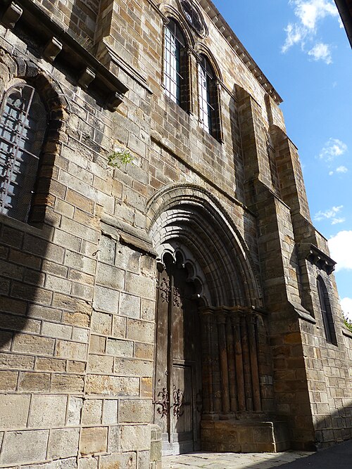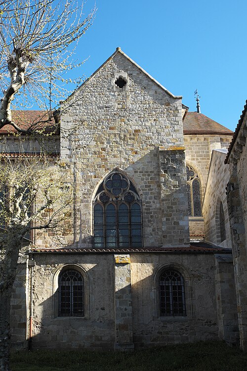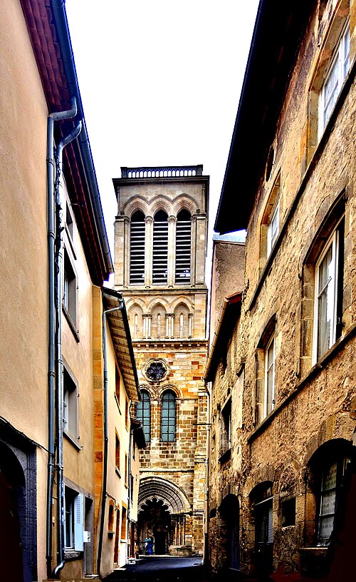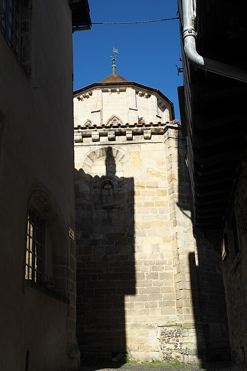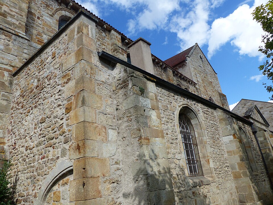 La collégiale Saint-Cerneuf, située à Billom dans le Puy-de-Dôme, est un ancien édifice canonial aux origines roman-gothiques. L'implantation initiale remonte à la fin du XIe ou au XIIe siècle; la crypte romane, le déambulatoire et une partie du chevet avec mosaïque de pierre en sont les principaux vestiges, et témoignent d'un chœur circulaire entouré probablement de chapelles rayonnantes aujourd'hui disparues. Des peintures murales datées de la fin du XIIe siècle et une statue en bois de saint Sérène de Sirmium, classée mobilier historique, subsistent dans l'édifice. Initialement dédiée à la Vierge Marie, la collégiale formait l'une des quatre paroisses de Billom. D'importants travaux au XIIIe siècle ont remplacé l'ancienne église par une nef à trois vaisseaux et des bas-côtés, en réutilisant les fondations romanes; le portail occidental, la nef et les bas-côtés datent de la première moitié du XIIIe siècle, tandis que le premier niveau du chœur roman subsiste avec de beaux chapiteaux sculptés et que les niveaux supérieurs furent remaniés vers 1250. Les chapelles rayonnantes furent démolies puis reconstruites aux XIVe et XVe siècles. La chapelle du Rosaire, à droite du chœur, fut réalisée grâce aux dons de la famille Aycelin de Montaigut; mentionnée dans le testament de Gilles Aycelin en 1314, elle présente un chevet pentagonal, une travée droite voûtée d'ogives, trois baies géminées, un important décor peint et un tombeau en pierre de Volvic surmonté d'un baldaquin, orné de figures représentant des saints et des membres probables de la famille Aycelin. La chapelle centrale, dédiée au Précieux-Sang, est attribuée aux XVe–XVIe siècles ; la relique associée, rapportée par deux chanoines après la première croisade, aurait été retrouvée le Vendredi Saint 1255, un premier miracle est signalé en 1274, sa reconnaissance pontificale date de 1444 et la relique fut détruite le 17 novembre 1793. La Révolution entraîna la destruction de la plupart des tombeaux, seule subsiste la sépulture de Gilles Iᵉʳ Aycelin de Montaigut, archevêque de Rouen, classée au titre des monuments historiques. Un bâtiment du XIIe siècle, primitivement contigu au côté sud de la collégiale et relié par une porte entre deux chapelles absidiales, formait un côté du cloître; il a servi de salle ou chapelle capitulaire, a été occupé par les confréries des Pénitents et de la manécanterie, puis, après la disparition de ces confréries, affecté à un tribunal de commerce et mutilé sur sa face méridionale par l'architecte A. Mallay. Au cours des siècles, l'abside a été remaniée, notamment au XVIIIe siècle, lorsque des chapiteaux furent recouverts d'un ordre ionique en stuc et que des décors stuqués investirent la partie haute; parallèlement, des baies romanes furent transformées en niches. Les remaniements et restaurations se succédèrent : démolition de la tribune entre la nef et le chœur en 1791 et du clocher en 1794; reprise de travaux au XIXe siècle (projets et restaurations menés par A. Mallay, chantiers de 1863 à 1866 et reconstruction du clocher à partir de 1868); interventions datées en 1884; déblaiements et restaurations menés sous la direction de Ruprich-Robert au tournant du XXe siècle, avec rétablissement d'un accès méridional à la crypte et rabaissement des niveaux de sol du chœur, de la nef et des bas-côtés entre 1906 et 1908; restauration du porche nord en 1909; puis, en 1957, dépose de la balustrade du toit et remplacement de l'ardoise par une tuile plate. L'édifice a été classé au titre des monuments historiques en 1862 puis de nouveau en 1923. Malgré les pertes subies pendant la Révolution, la collégiale conserve un mobilier notable, parmi lequel un tableau représentant Jésus guérissant les possédés, L'Annonciation d'Horace Le Blanc (1622) et un groupe en calcaire de la mise au tombeau datant de la première moitié du XVIe siècle, réunissant huit personnages.