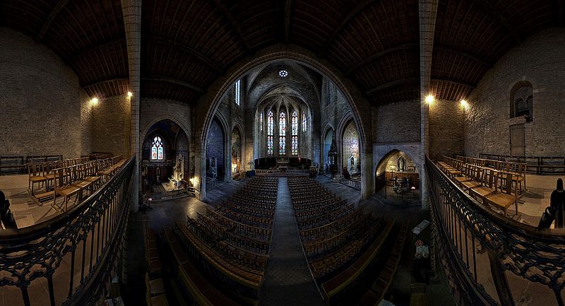 La collégiale Saint-Étienne de Capestang est une ancienne collégiale dédiée à saint Étienne, située sur la commune de Capestang dans le département de l'Hérault en France. L'édifice est classé au titre des monuments historiques depuis 1906. Il a été bâti sur l'emplacement de l'église Saint-Félix du XIe siècle, dont subsiste le mur ouest et quelques autres vestiges. La construction proprement dite a été lancée à partir du XIIIe siècle et s'est poursuivie au début du XIVe siècle, entraînant la démolition, travée par travée, de l'édifice roman antérieur. L'édifice reste inachevé : il manquerait environ vingt mètres et seules la partie du chœur et les deux premières travées avec leurs chapelles ont été achevées. L'ouvrage, de style gothique, a probablement été réalisé par le même maître d'œuvre que celui de la cathédrale Saint-Just-et-Saint-Pasteur de Narbonne, et il partage avec cette cathédrale plusieurs caractéristiques, dont l'inachèvement. Malgré cela, la hauteur des voûtes de la partie achevée atteint 26,50 mètres. La grande épidémie de peste et le manque de fonds mirent un terme à ce chantier ambitieux qui aurait dû donner naissance à l'un des plus vastes édifices de la région. Le clocher s'élève à 43 mètres et abrite cinq cloches au total : une cloche de tintement posée sur le toit du clocher, accordée en Ré#4 et fondue en 1559, qui servait pour l'horloge, et quatre cloches de volée en sonnerie rétro-équilibrée dont le beffroi, les jougs, les moteurs et les battants ont été entièrement restaurés en 2006. Parmi ces cloches figurent le bourdon, accordé en mi3 et fondu en 1867 par Louison (environ 1000 kg), une cloche accordée en la3 fondue en 1882 par Lévêque-Amans (environ 500 kg), une cloche accordée en si3 fondue en 1867 par Louison (environ 300 kg) et une cloche accordée en do#4 fondue en 1882 par Lévêque-Amans (environ 200 kg). Des vues panoramiques permettent d'apprécier la collégiale depuis la place Jean-Jaurès, l'intérieur de l'édifice et le sommet du clocher, ainsi que les vitraux principaux.