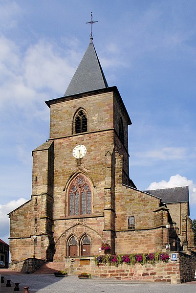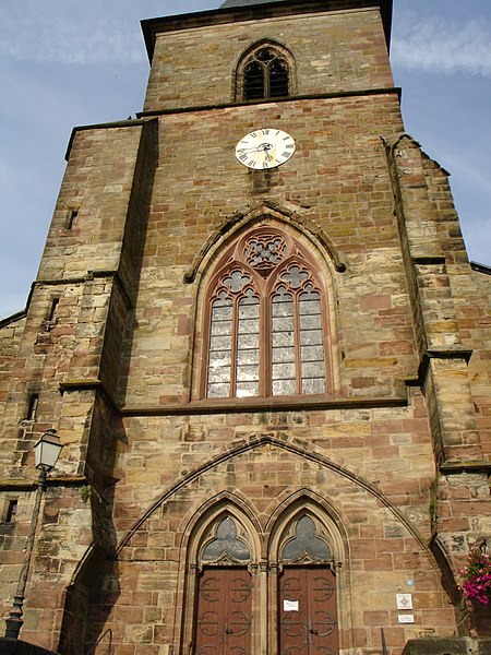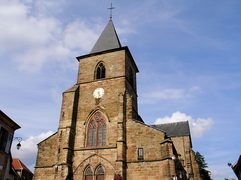 Édifiée en grès des Vosges et couverte d’ardoises, la collégiale présente un plan en croix latine composé d’une nef bordée de bas‑côtés, d’un transept, d’un chœur et de deux chapelles latérales : la chapelle de semaine dédiée à saint Nicolas, située dans l’angle formé par le chœur et le bras sud du transept, et la chapelle dite des Bayer, le long du bas‑côté sud. Les vitraux sont pour l’essentiel postérieurs à la Seconde Guerre mondiale, la plupart ayant été réalisés par Jean‑Henri Couturat en 1955, tandis que le vitrail de la chapelle des Bayer date du XIXe siècle.