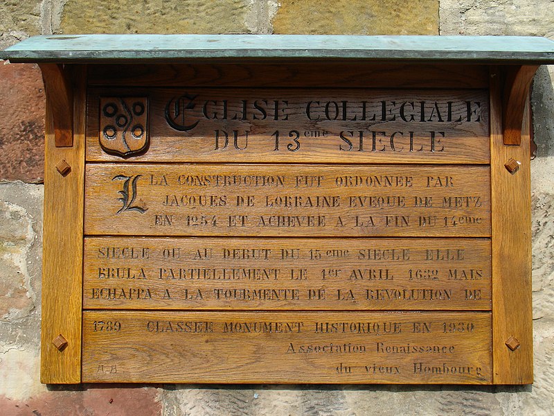 La collégiale Saint‑Étienne de Hombourg‑Haut est une ancienne collégiale située dans la commune de Hombourg‑Haut, en Moselle (région Grand Est), classée au titre des monuments historiques depuis le 16 février 1930. Selon les sources, elle appartient aux XIIIe‑XVe siècles, certaines précisant une construction par les chanoines entre 1290 et 1390. Le chapitre, installé en 1254 par Jacques de Lorraine, est supprimé en 1743 puis remplacé par des Franciscains‑Récollets d’origine allemande sur autorisation de Stanislas, roi de Pologne. Selon d’autres attestations, l’église paroissiale aurait été agrandie en 1234 par Jacques de Lorraine, évêque de Metz, et la chapelle Saint‑Nicolas serait le vestige probable de l’ancienne paroisse. Un cloître était accolé à la collégiale ; il fut détruit lors de l’incendie de 1632 qui endommagea également la toiture. La fin d’un important programme de restauration a été célébrée le 20 juillet 2017 ; les travaux ont concerné le nettoyage de 2 035 m2 de façades, la reprise de 8 370 mètres de joints, le remplacement de 18,5 m2 de pierres, la réfection d’une assise du beffroi du clocher, le remplacement des moteurs de volée et du cadre des cloches ainsi que la révision de 1 524 m2 de toiture.
