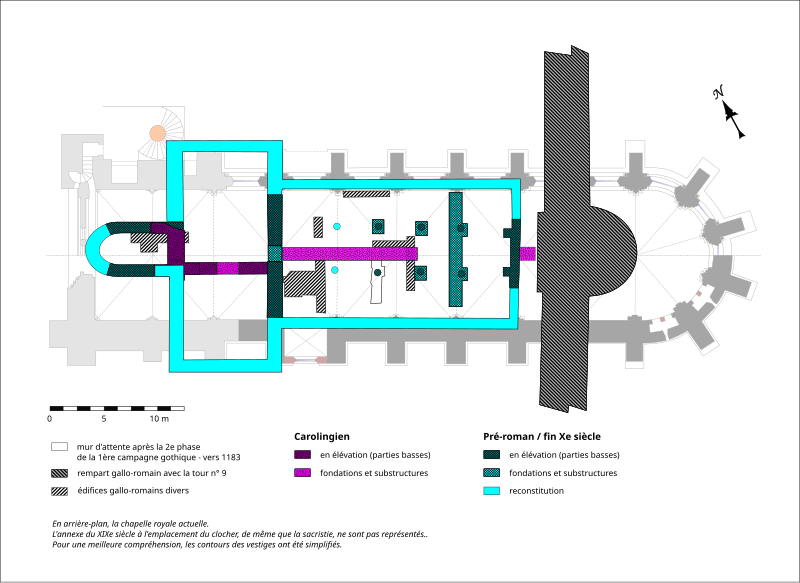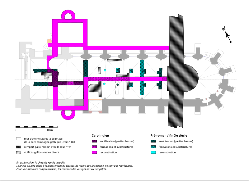 La collégiale Saint‑Frambourg de Senlis a été fondée au Xe siècle par la reine Adélaïde, épouse d’Hugues Capet, comme chapelle royale desservie par un chapitre de douze chanoines et destinée à la vénération des reliques de saint Frambourg. Une première église préromane fut alors édifiée ; l’édifice gothique actuel a été entrepris à partir de 1169 et son gros œuvre achevé à la fin du XIIIe siècle au terme de deux campagnes de construction. La première campagne porta essentiellement sur le chœur, les travées orientales de la nef et les premières travées de l’axe, la seconde sur la façade occidentale, l’achèvement de la nef et la base du clocher, tandis que la partie haute du clocher et des chapelles entre les contreforts furent complétées à la fin du XIIIe siècle. L’architecture adopte un plan à vaisseau unique, une élévation à un seul niveau, un chevet en hémicycle à cinq pans et des voûtes sexpartites couvrant les travées, avec des volumes généreux pour une chapelle royale. Longue de 46 mètres et large de 9,70 mètres à l’intérieur, la collégiale se caractérise par une élégante sobriété : proportions harmonieuses, exécution soignée et décor limité plutôt que recherche d’un ornement abondant. Au fil des siècles l’édifice a connu peu de remaniements mais a souffert d’abandon et d’usages détournés : fermé à la Révolution, transformé en temple de la Raison puis vendu comme bien national, il servit ensuite de manège aux troupes prussiennes et fut utilisé comme magasin, atelier et entrepôt. Des démolitions et pillages, notamment au XIXe siècle, ont entraîné le démontage du clocher et la dispersion d’éléments sculptés, et la toiture de la nef s’est effondrée au milieu du XIXe siècle ; l’abside s’est effondrée en 1914. Après un long état de dégradation, l’ancienne collégiale fut rachetée par György Cziffra et, dès l’acquisition, des fouilles archéologiques et des travaux de restauration furent engagés : ces campagnes ont mis au jour la chapelle d’Adélaïde, des niveaux carolingiens et des vestiges gallo‑romains dont une tour de l’enceinte, précisant la succession des bâtiments antérieurs. La restauration intérieure menée dans les années 1970 a restitué la lisibilité architecturale de l’édifice, consolidé voûtes et parements et restitué des éléments supprimés en adoptant un parti sobre sans reconstitutions excessives. Trois vitraux dessinés par Joan Miró et réalisés par Charles Marq furent posés dans la façade dès 1977, et des travaux ultérieurs sur la façade, les abords et la toiture ont restitué le volume et la silhouette d’origine de la chapelle. Les interventions ont également permis de mettre en valeur et d’aménager en sous‑sol des vestiges de la collégiale préromane et de l’enceinte gallo‑romaine pour la visite. Implantée au cœur de Senlis, à proximité immédiate de la cathédrale Notre‑Dame, la collégiale intègre la base du clocher primitif et s’ouvre sur la place Saint‑Frambourg ; son chevet donne sur la rue Saint‑Hilaire. À l’extérieur, le bâtiment présente un aspect massif marqué par de puissants contreforts et des fenêtres largement ébrasées qui privilégient l’éclairement intérieur. L’intérieur révèle un espace unifié, des modénatures et des sculptures de qualité et une exécution qui font de Saint‑Frambourg un exemple remarquable de l’architecture gothique du XIIe siècle. Propriété de la Fondation Cziffra, la collégiale accueille aujourd’hui concerts, festivals et activités pédagogiques centrés sur le piano et la musique de chambre, tout en conservant en surface et en sous‑sol les témoins archéologiques de son histoire longue et complexe.