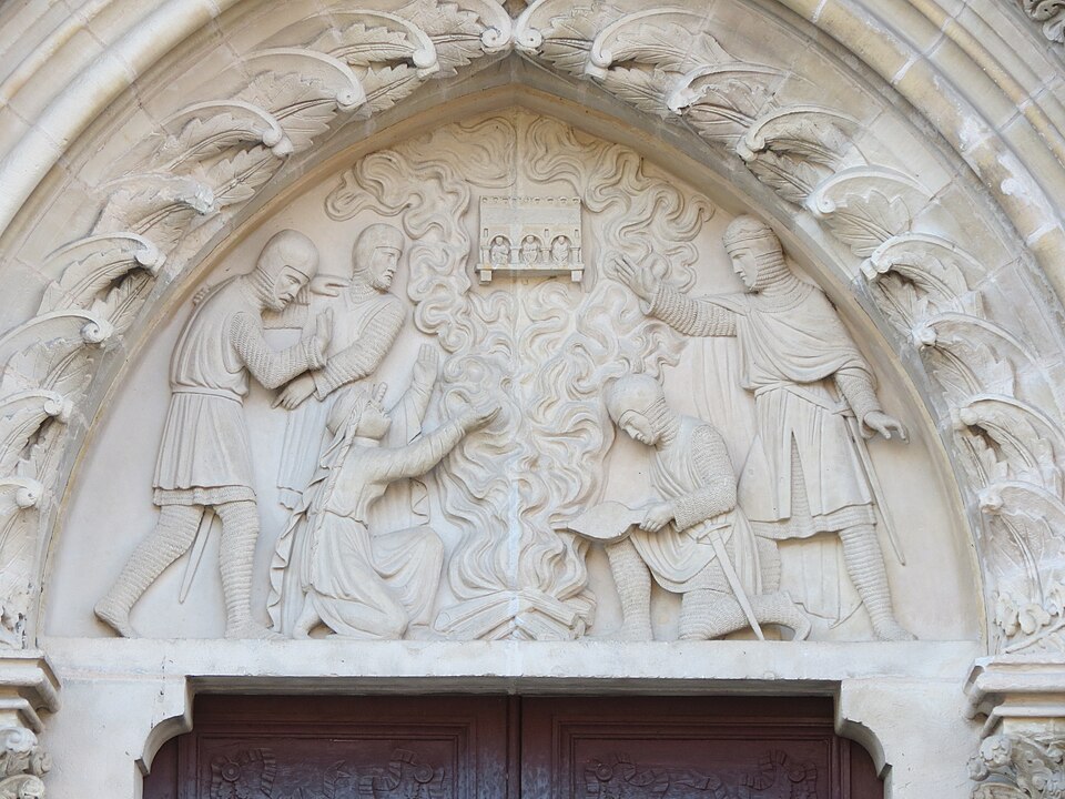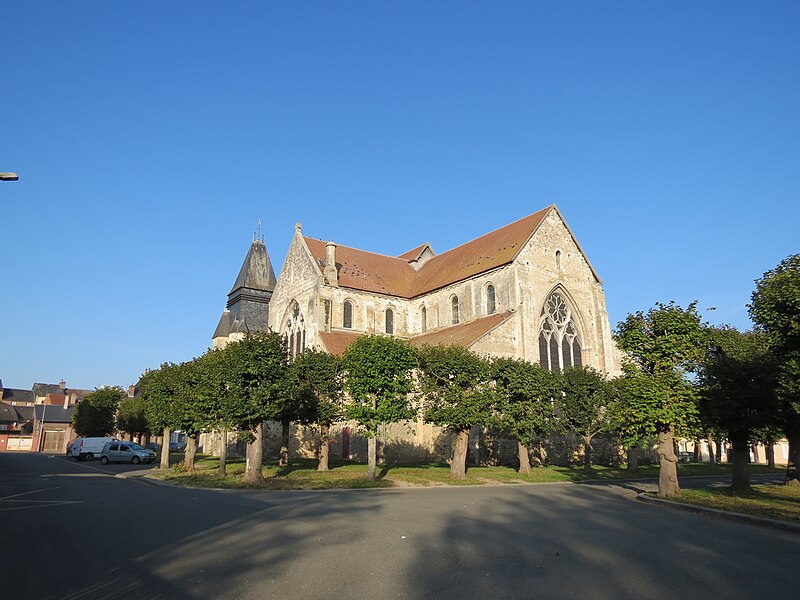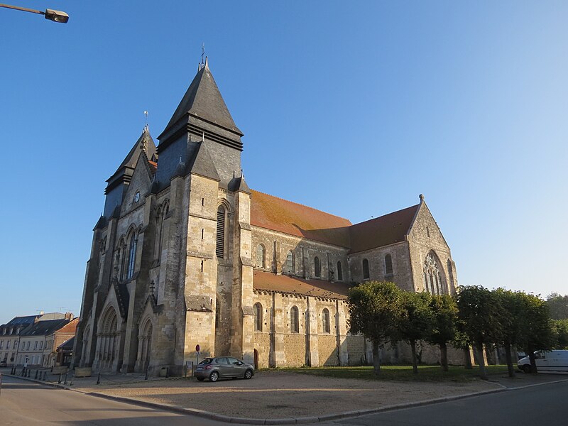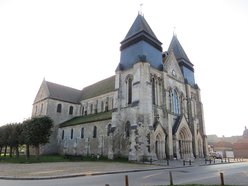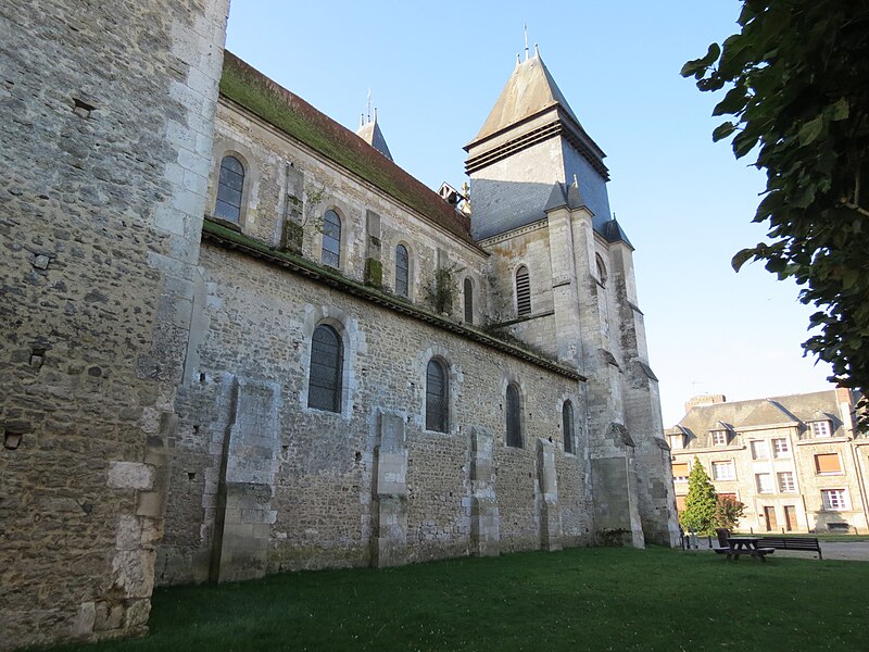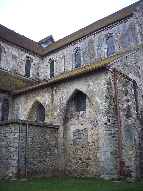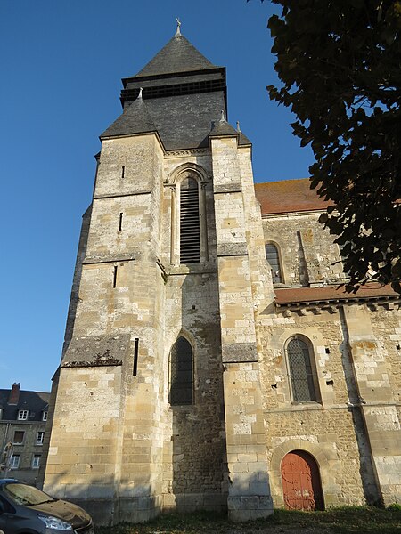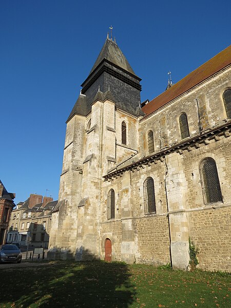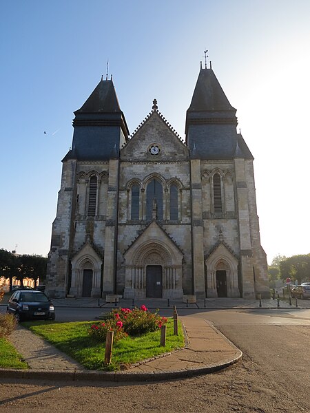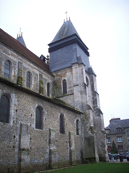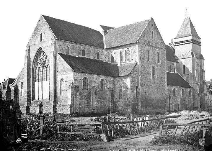 La collégiale Saint-Hildevert de Gournay-en-Bray, ancienne collégiale aujourd'hui église paroissiale, se situe en Seine-Maritime et fait l’objet d’un classement au titre des monuments historiques depuis la liste de 1840. L’édifice actuel a été bâti au XIIe siècle sur les vestiges d’un bâtiment antérieur daté du Xe ou du XIe siècle ; il conservait à l’origine une nef flanquée de collatéraux de six travées, un transept avec tour à la croisée et petites absidioles, ainsi qu’un chœur de trois travées et un chevet plat. Incendiée en 1174, la collégiale a été partiellement remaniée : au milieu du XIIe siècle le chœur fut partiellement reconstruit et la nef ainsi que le transept furent voûtés d’ogives, puis la nouvelle église fut consacrée le 29 avril 1192. Au début du XIIIe siècle la façade occidentale a été reprise et la travée extrême surmontée de deux tours carrées restées inachevées ; c’est également à cette époque que la collégiale reçut sa dédicace à saint Hildevert, par l’intermédiaire de clercs venant de Meaux. Aux XIVe et XVe siècles le chevet fut percé de grandes fenêtres et une sacristie fut accolée au transept. La tour à la croisée disparut en 1617 et fut remplacée par une tour-lanterne détruite en 1649 ; entre 1650 et 1660 les deux tours occidentales furent surélevées par un clocher en charpente couvert d’ardoise. Une restauration complète a été conduite en 1874 par de la Roque. Certains vitraux, disparus pendant la Seconde Guerre mondiale, ont été refaits en 1954 par J. Gaudin sur le thème de la vie de saint Hildevert. Le mobilier comporte notamment un buffet d’orgue dont des éléments datent de 1538 et qui a été classé au titre d’objet dès 1840. Les chapiteaux des piles sud de la nef et du chœur figurent parmi les plus remarquables du répertoire normand médiéval.