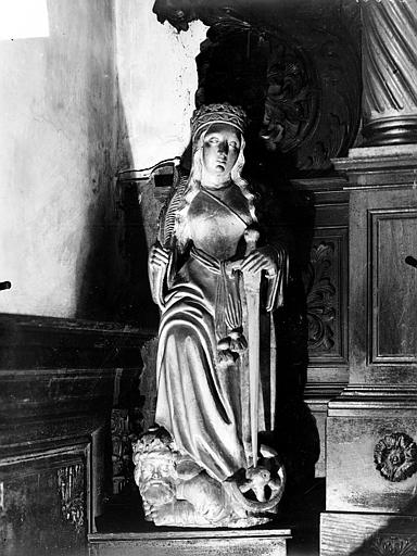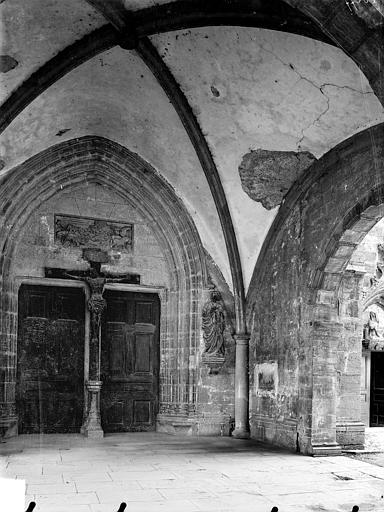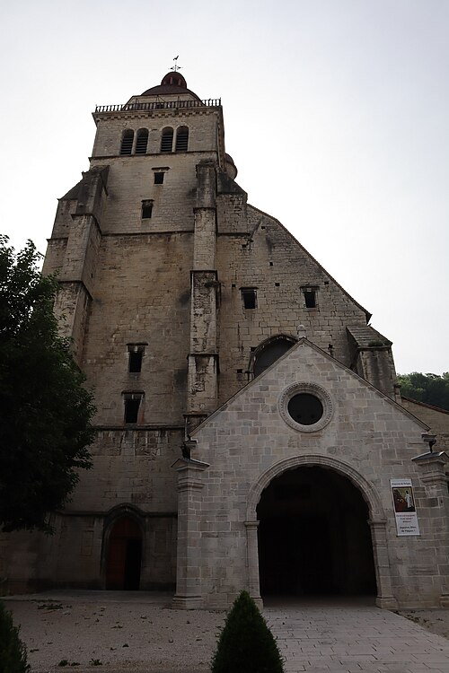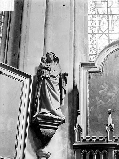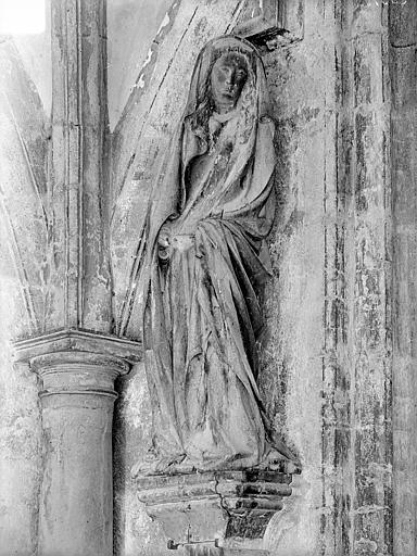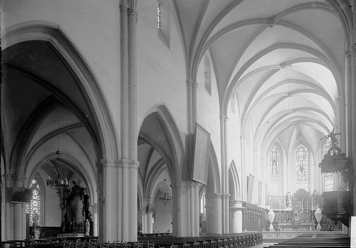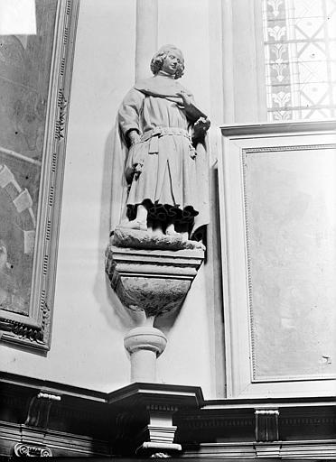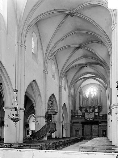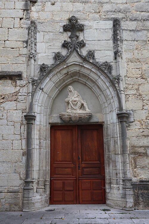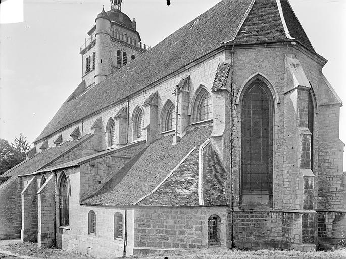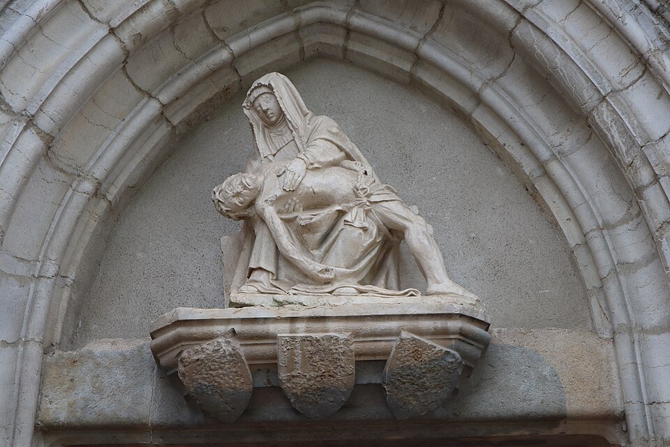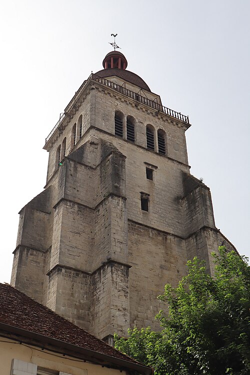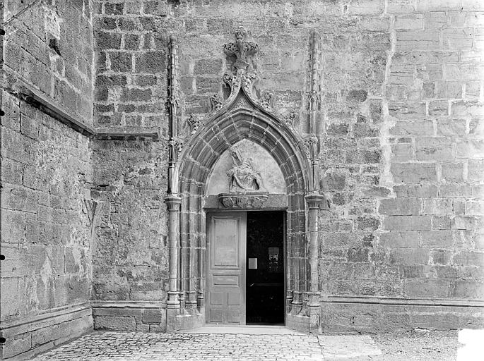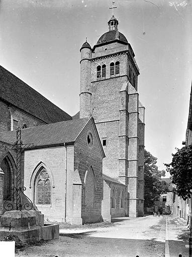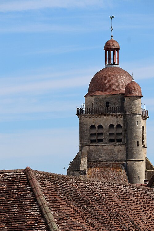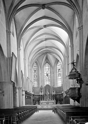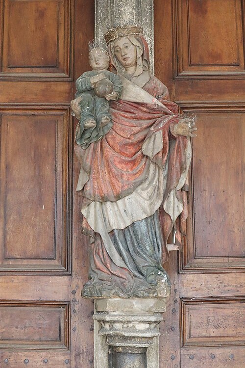 La collégiale Saint‑Hippolyte de Poligny, dans le Jura, doit sa construction aux dons de Jean Chousat, bourgeois et membre du Grand Conseil de Bourgogne, et aux enrichissements apportés par Jean Chevrot, évêque de Tournai et président du conseil de Philippe le Bon. Dès l'origine, elle cumule les fonctions de collégiale et d'église paroissiale. Classée au titre des monuments historiques en 1911, elle a fait l'objet d'une importante campagne de restauration de 1974 à 1988, incluant l'orgue. Les archives conservées permettent de connaître précisément le chantier, commencé en 1414; l'église est dédiée en 1437 et la construction, à peu près achevée vers 1440, se poursuit jusqu'en 1450 pour l'élévation du clocher. Réalisée dans les débuts du gothique flamboyant en moins d'un demi‑siècle, sa construction rapide lui confère une unité architecturale, et l'ampleur du projet s'explique notamment par la montée en puissance de Poligny lors de la séparation de la comté et du duché de Bourgogne. La tour carrée du clocher, du XVe siècle, est décentrée à gauche de la façade; elle était à l'origine coiffée d'une flèche en pierre détruite au XVIIe siècle et remplacée par un dôme. Le porche, daté du XVIIe siècle, est couvert d'une voûte d'ogives dont les arcs retombent sur des colonnes toscanes; il abrite une Vierge polychrome du XVe siècle. L'édifice est composé d'une nef flanquée de collatéraux en cinq travées, d'un chœur de deux travées et d'une abside polygonale; plusieurs chapelles s'ouvrent sur les bas‑côtés. La collégiale conserve une collection de statues de l'école bourguignonne du XVe siècle, parmi lesquelles figurent quatre statues de l'abside et les statues du Calvaire dominant l'entrée du chœur. On y trouve également une Vierge à l'Enfant attribuée à l'atelier de Jean de la Huerta (milieu du XVe siècle), une statue de saint Jacques le Majeur par Jean de la Huerta et un bas‑relief intitulé «Le Martyre de saint Hippolyte» au‑dessus du portail principal, ainsi que la statue de Jean Chevrot. Vers 1445, Jean Chevrot fit décorer sa chapelle funéraire en commandant à Rogier van der Weyden le Retable des Sept Sacrements, aujourd'hui conservé au MRBA d'Anvers. L'édifice abrite un orgue Cavaillé‑Coll.