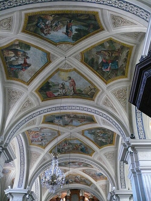 Voûtes intérieures entièrement peintes, ce qui fait la beauté de cet édifice religieux.
