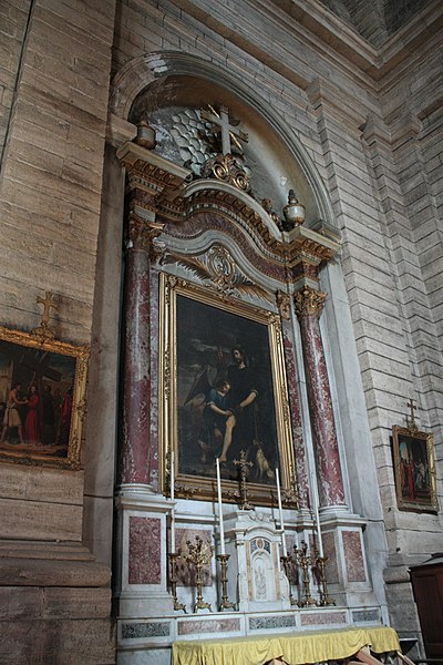 La collégiale Saint-Jean de Pézenas, située dans l'Hérault, est une ancienne collégiale dédiée aux saints Jean-Baptiste et Jean l'Évangéliste, inscrite au titre des monuments historiques en 1935. Au début du XIVe siècle, alors que la ville venait d'être entourée de remparts et ne disposait pas encore d'église paroissiale intra muros, les Hospitaliers de Saint-Jean de Jérusalem cédèrent vers 1314 à la communauté la petite église romane fortifiée élevée par le Temple à l'extrémité occidentale de la commanderie et firent construire dans leur enclos une nouvelle chapelle. Cette cession comportait la double condition que l'édifice fût dédié aux deux saints Jean et que le prieur rendît hommage au commandeur. En 1317, un clocher à trois étages, surmonté d'une terrasse à parapet crénelé, fut ajouté. L'église fut agrandie en 1519 par un nouveau chœur, des collatéraux et six chapelles, et elle avait été érigée en collégiale en 1600. L'écroulement du clocher, le 30 janvier 1733, entraîna la reconstruction complète de l'édifice; plusieurs projets furent étudiés en 1734, dont des dessins de Jean Giral repris ensuite, dans leurs grandes lignes, par Jean-Baptiste Franque. Les travaux d'exécution commencèrent en 1739 sous la direction de Jean-Antoine Giral, avec le concours de Jacques Cavalier, et l'ensemble fut réceptionné en 1746, date à laquelle le projet inspiré par Giral fut achevé par Jean-Baptiste Franque. Architecturally, l'édifice présente trois travées et une abside semi-circulaire flanquée de deux absidioles rectangulaires; une coupole domine la croisée du transept, dont les bras sont voûtés en arêtes, tandis que les bas-côtés sont couverts de coupoles. La décoration en marbres polychromes, réalisée entre 1746 et 1754, se remarque particulièrement dans la chapelle nord dédiée à la Vierge Marie. L'orgue, œuvre du facteur Jean François l'Épine construite en 1758 et restaurée en 1853 par Aristide Cavaillé-Coll, est notablement comparable aux grandes orgues de l'église Saint-Roch de Paris. Intérieurement, la nef, le chœur et cet orgue figurent parmi les éléments les plus remarquables du monument.
