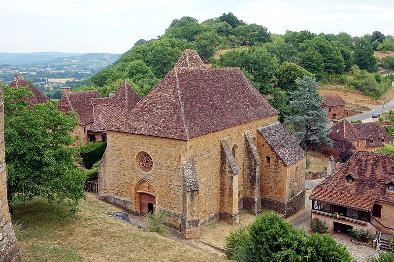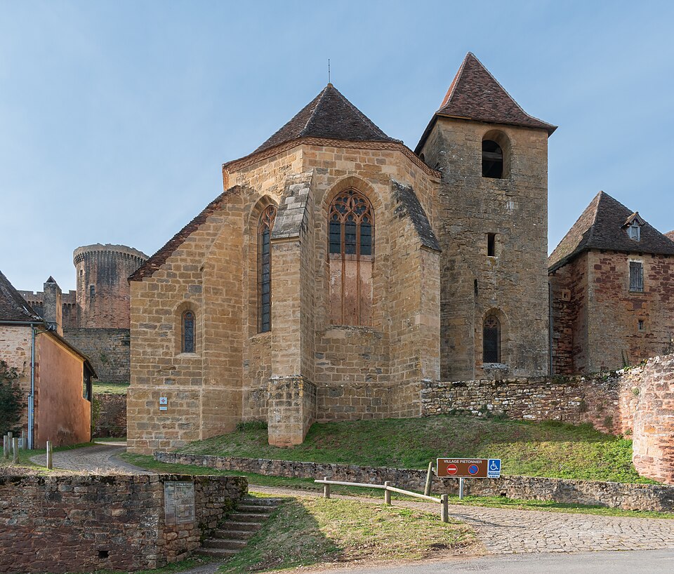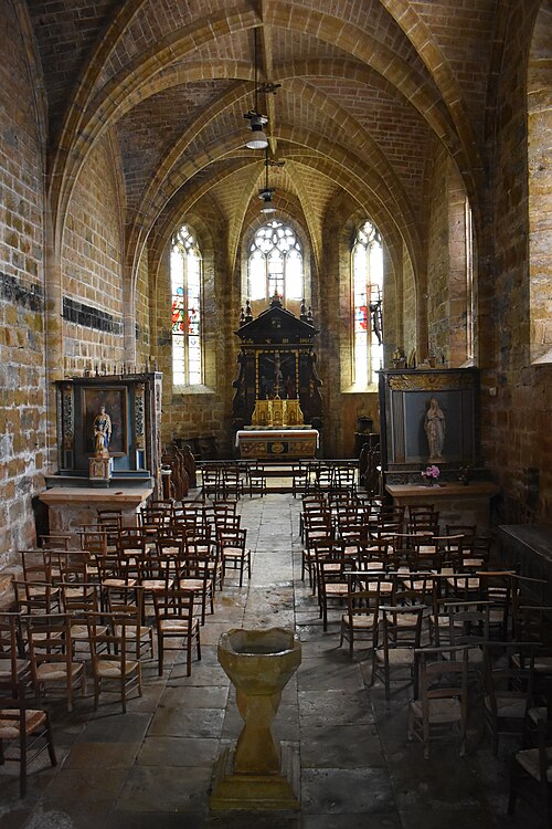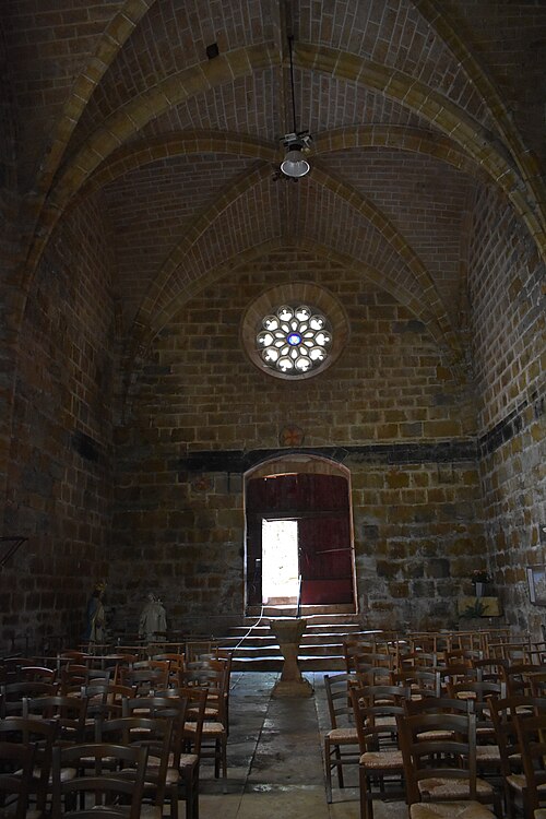 L’édifice présente une nef unique de quatre travées, sans transept, et un chœur à cinq pans; son architecture, conforme au gothique tardif, se caractérise par un aspect austère, un clocher trapu et de puissants contreforts. Le tympan du portail est timbré du blason des Castelnau; à l’intérieur, les croisées d’ogives à liernes et les fenêtres de style flamboyant affichent une grande élégance. Les clés de voûte portent les écus de Guy de Castelnau, évêque de Périgueux, de Jean II, de son fils Jacques et d’Antoine. L’édifice mesure environ 25 mètres de longueur pour 8 mètres de hauteur.