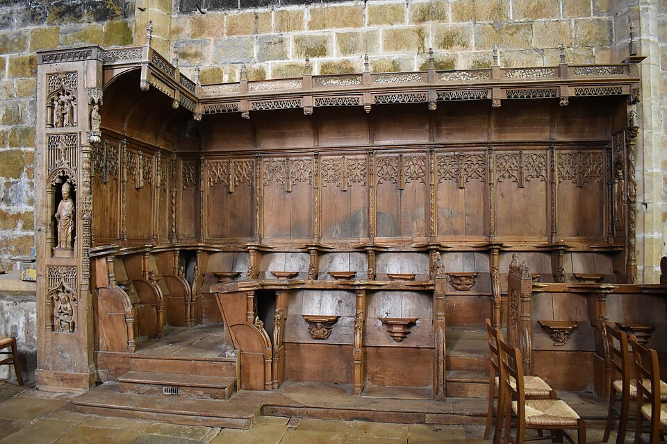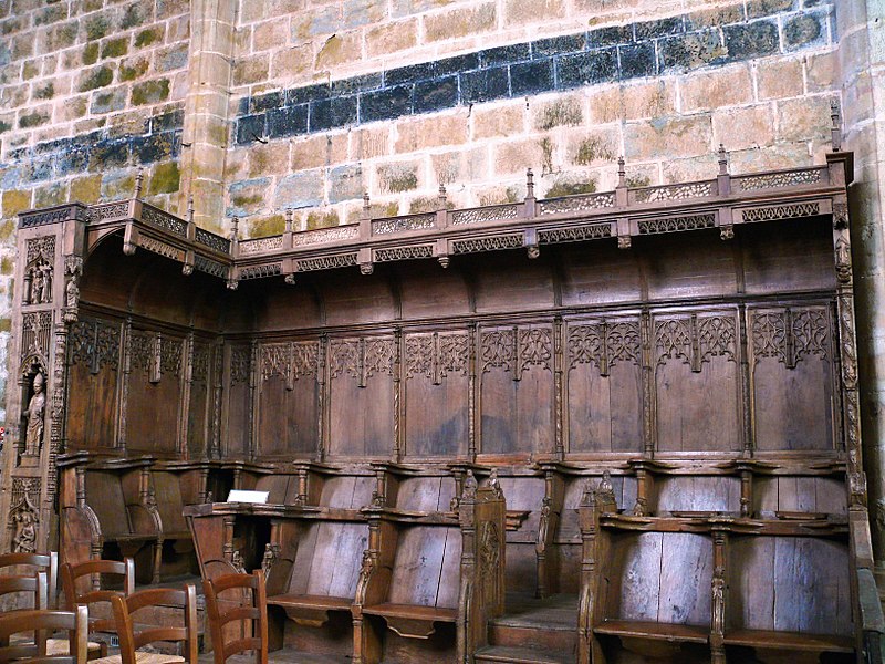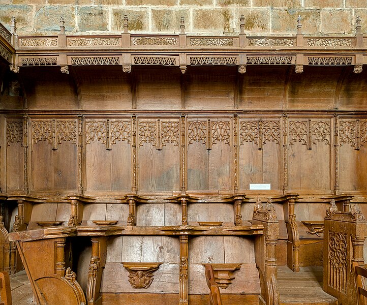 La collégiale conserve un mobilier important : trois autels dont l’autel majeur, orné d’un retable daté de 1663 et décoré des armes des Castelnau, des Clermont-Lodève et des Saint-Bussan, retable offert par les jésuites aux époux Louis de Castelnau de Clermont-Lodève et Anne-Marguerite de Saint-Bussan et responsable du murage de la partie basse de la baie centrale. Sur cet autel se trouve un tableau représentant la Crucifixion, daté du XVIIIe siècle. Deux autels secondaires, placés avant l’entrée du chœur, semblent réunir des éléments de réemploi. La collégiale possède plusieurs reliquaires, dont un bras-reliquaire de saint Louis, daté de la fin du XIIIe ou du début du XIVe siècle et offert par Louise de Bretagne. L’ensemble des 26 stalles, attribuées à Jacques de Castelnau, daterait du début du XVIe siècle ; leur réalisation est liée, selon la tradition, à l’intervention du cardinal François Guillaume de Castelnau de Clermont-Lodève, qui fit venir des artistes italiens actifs à la cathédrale d’Auch. Parmi les sculptures et éléments mobiliers se trouvent des accoudoirs sculptés entourant une miséricorde, une miséricorde ornée, un groupe polychrome du Baptême du Christ en pierre (XVe siècle) et une Vierge à l’Enfant polychrome (XVe siècle).
