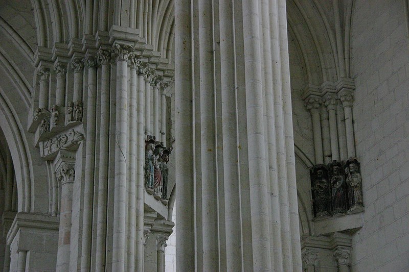 La collégiale Saint‑Martin de Candes, située à Candes‑Saint‑Martin en Indre‑et‑Loire, est une ancienne collégiale devenue église paroissiale. Une première église dédiée à saint Maurice, fondée par saint Martin où il mourut en 397, attira des pèlerins dès le Ve siècle malgré l'absence de reliques. Vers 1050, l'église est mentionnée comme collégiale et son chapitre compte douze chanoines. Au XIIe siècle la vieille église et la maison mortuaire de Martin tombent en ruine ; en 1175 ces bâtiments sont démolis et la construction d'une nouvelle collégiale est engagée. Les travaux, marqués par plusieurs reprises et changements de programme, se poursuivent jusqu'au milieu du XIIIe siècle sous la direction de différents maîtres d'œuvre, dont le Maître de Candes. Le chantier débute par le chœur et le transept : l'ensemble comprend une abside principale, deux absidioles et des chapelles dont la chapelle dite Saint‑Martin, peut‑être établie sur l'emplacement de la maison mortuaire et dont les fondations posent encore des questions. La chapelle de la Vierge au nord et le transept richement sculpté semblent dater du premier quart du XIIIe siècle. La nef, remaniée selon un nouveau projet inspiré des grandes réalisations de l'Ouest, est élevée ensuite et impose des ajustements au transept préexistant ; sa réalisation est attribuée plausiblement au second quart du XIIIe siècle. Le porche monumental ouvert sur le flanc nord, destiné aux pèlerins, est voûté en ogives, abondamment sculpté mais resté en partie inachevé. Après la guerre de Cent Ans, au XVe siècle, la collégiale reçoit des aménagements de défense — tours crénelées, mâchicoulis, chemin de ronde, bretèche et chambres de guet — qui font d'elle l'une des rares églises fortifiées de Touraine. Malgré ces dispositifs, l'édifice subit des destructions lors des guerres de Religion, notamment en 1562 et 1568, avec pillages, incendie du chartrier et mutilations de sculptures. Deux séismes, en 1711 et 1840, causent d'importants dégâts ; l'effondrement de voûtes et la chute du clocher au début du XVIIIe siècle entraînent des réparations qui modifient l'architecture du transept et la position du clocher. Au XIXe siècle la collégiale fait l'objet de restaurations importantes, notamment entre 1852 et 1856 sous l'architecte Charles Joly‑Leterme, puis de travaux complémentaires en 1882 et d'interventions pour la chapelle Saint‑Martin ; ces campagnes ont entraîné la disparition ou le remploi de certains éléments anciens et ont été critiquées par des historiens. Lors de ces travaux on découvre dans le maître‑autel une fiole attribuée aux martyrs thébains, authentifiée en 1875 par l'archevêque de Tours. Classée au titre des monuments historiques dès 1840 et visitée par Prosper Mérimée, la collégiale voit plusieurs de ses objets mobiliers protégés, dont le maître‑autel, le tabernacle, des tableaux, un groupe de statues et la cloche. Aux XXe et XXIe siècles l'édifice a fait l'objet de consolidations et de restaurations, notamment des travaux sur la charpente, la couverture et la maçonnerie achevés en 2015, suivis d'un réaménagement intérieur en 2016. L'étude de la chronologie de construction, des ateliers de sculpture et du programme iconographique reste active : la diversité des styles, la succession d'équipes et la rareté des sources anciennes rendent l'interprétation complexe. Le porche nord, attribué à plusieurs « maîtres », présente des statues achevées et inachevées dont l'iconographie a suscité diverses hypothèses, tandis que le décor intérieur mêle motifs du gothique de l'Ouest et scènes bibliques. Depuis la Révolution, la collégiale a perdu son statut canonique mais demeure un lieu de culte et un monument patrimonial largement étudié.