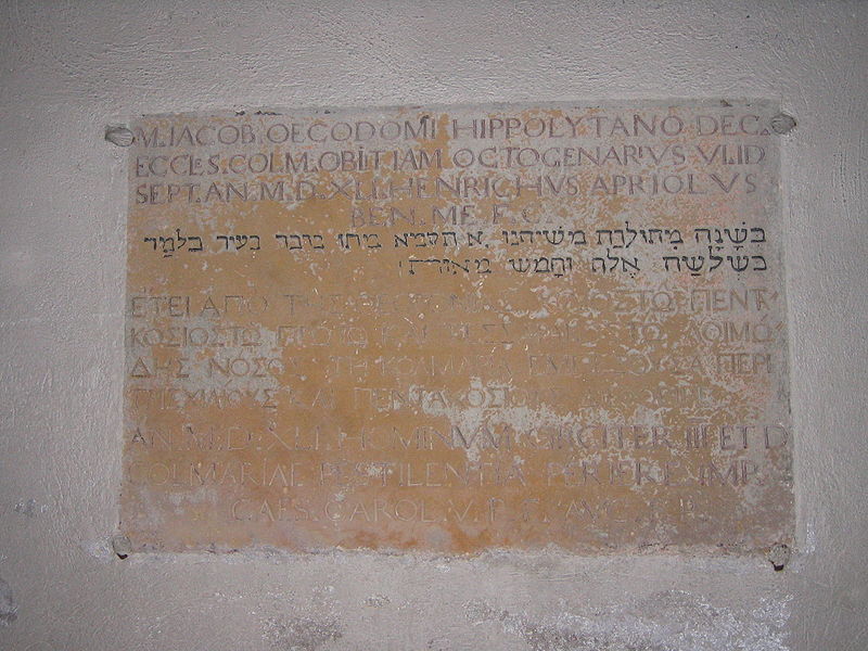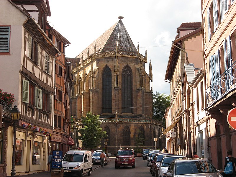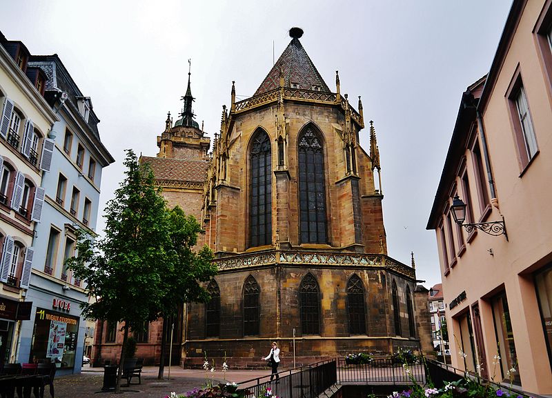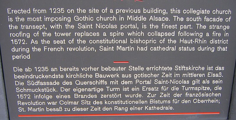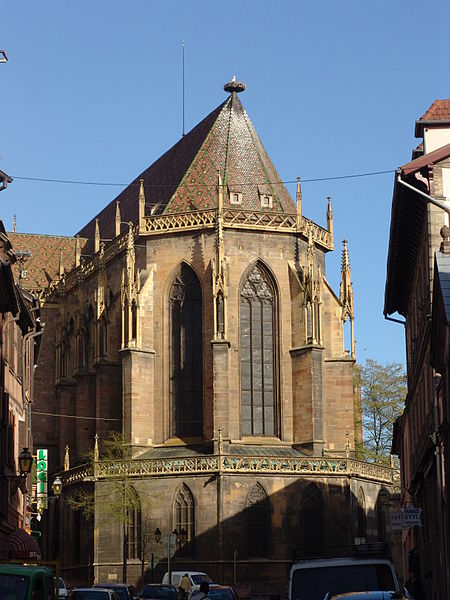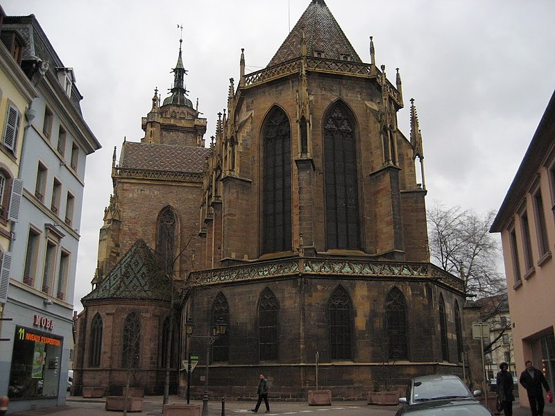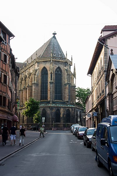 L'intérieur, dégradé pendant la Révolution et dépouillé après la suppression du mobilier du XIXe siècle, conserve cependant des sculptures et des vitraux médiévaux bien conservés, notamment une tête du Christ sans barbe au-dessus du portail nord. Pendant des siècles l'église a abrité la Vierge au buisson de roses peinte en 1473 par Martin Schongauer ; l'œuvre, volée en 1972 puis retrouvée en 1973, est désormais conservée à l'église des Dominicains.