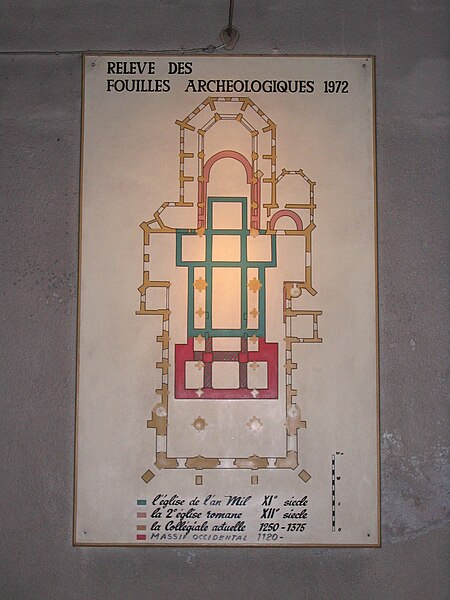 Des fouilles ont montré qu'une chapelle dédiée à saint Martin existait déjà avant l'an mil, et des vestiges datés du XIe siècle ont été mis au jour lors de sondages en 1972. Cet édifice primitif, doté d'une abside carrée, d'un transept et d'une nef, fut détruit par un incendie en 1106 et remplacé par une basilique romane. Par une bulle de 1234, le pape Grégoire IX érigea un chapitre collégial placé sous l'autorité de l'abbaye de Munster ; le chapitre compta seize chanoines à partir de 1245, puis douze à partir de 1440.
