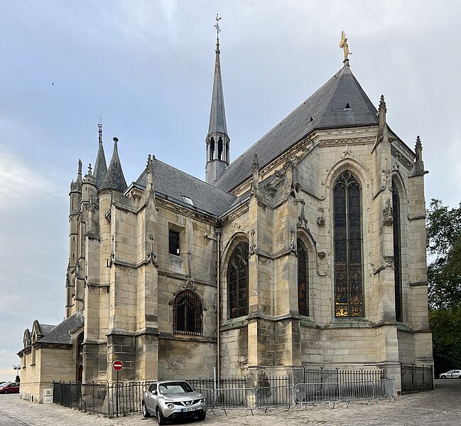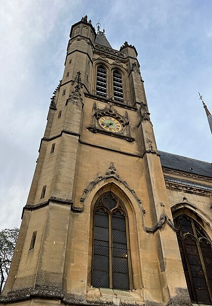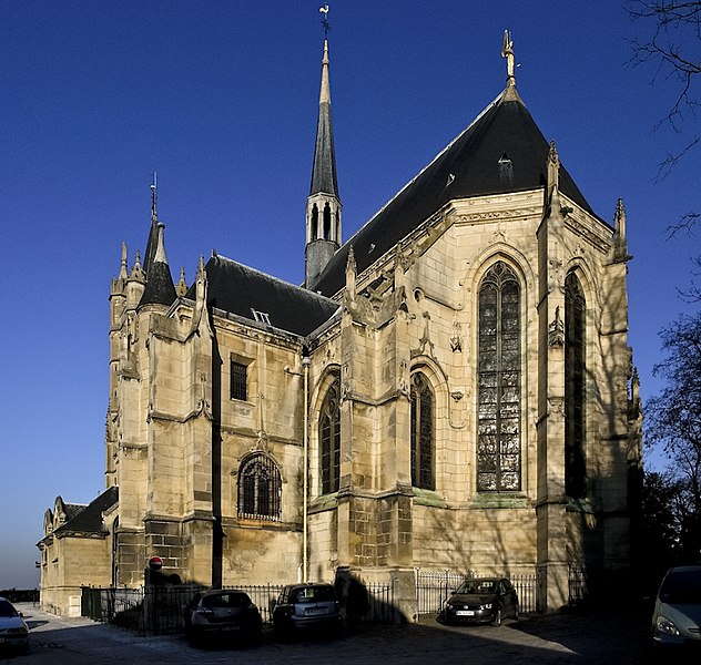 L'édification de l'édifice actuel débute en 1515 sous Guillaume de Montmorency selon un plan flamboyant ; la partie orientale, comprenant un chœur de quatre travées et sa flèche en charpente, est achevée seize ans plus tard. Anne de Montmorency reprend la construction en 1557, exigeant la continuité stylistique avec le chœur ; Jean Bullant élabore la maquette et Jean Désilles dirige le gros œuvre, la nef étant achevée en 1563. Le tombeau du connétable est installé au centre de la nef avant la mort d'Anne de Montmorency en 1567.