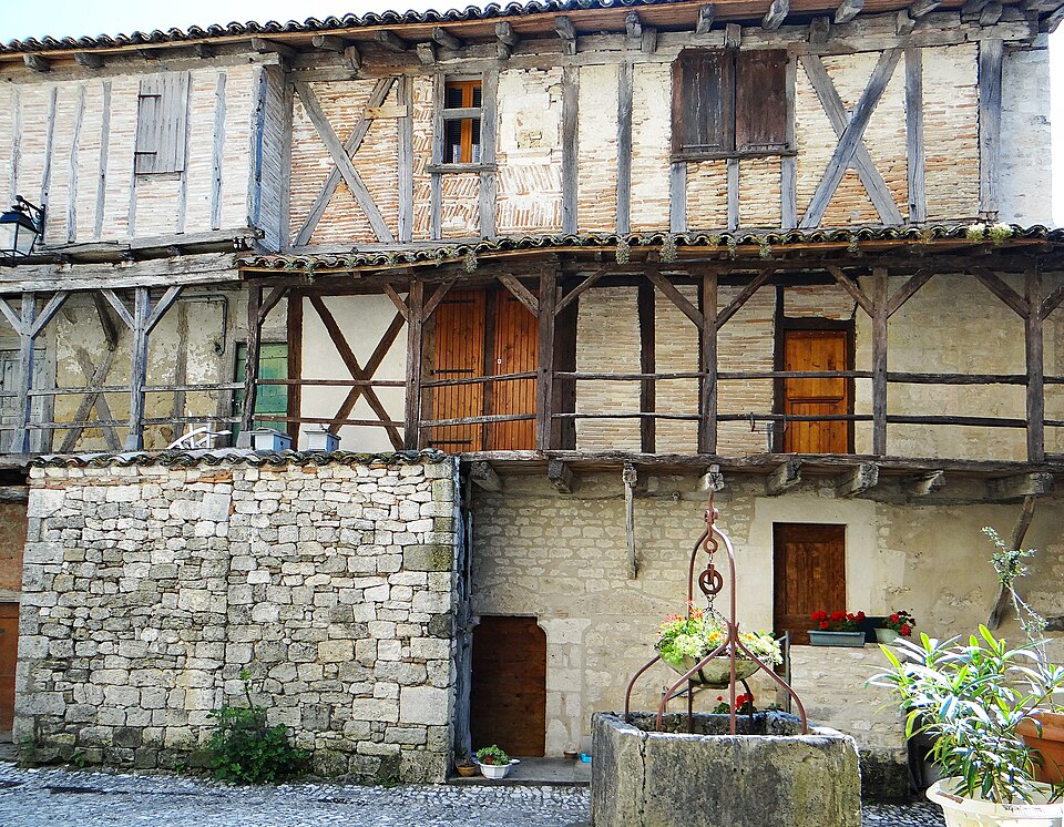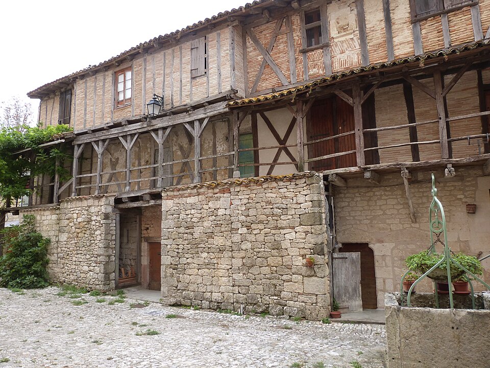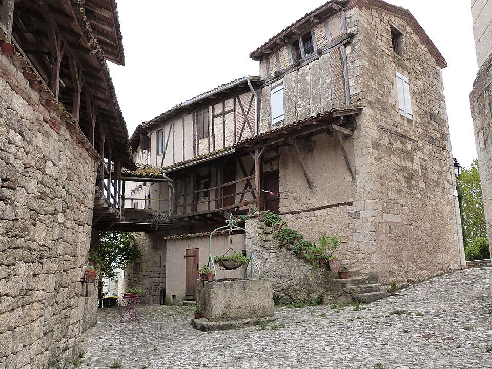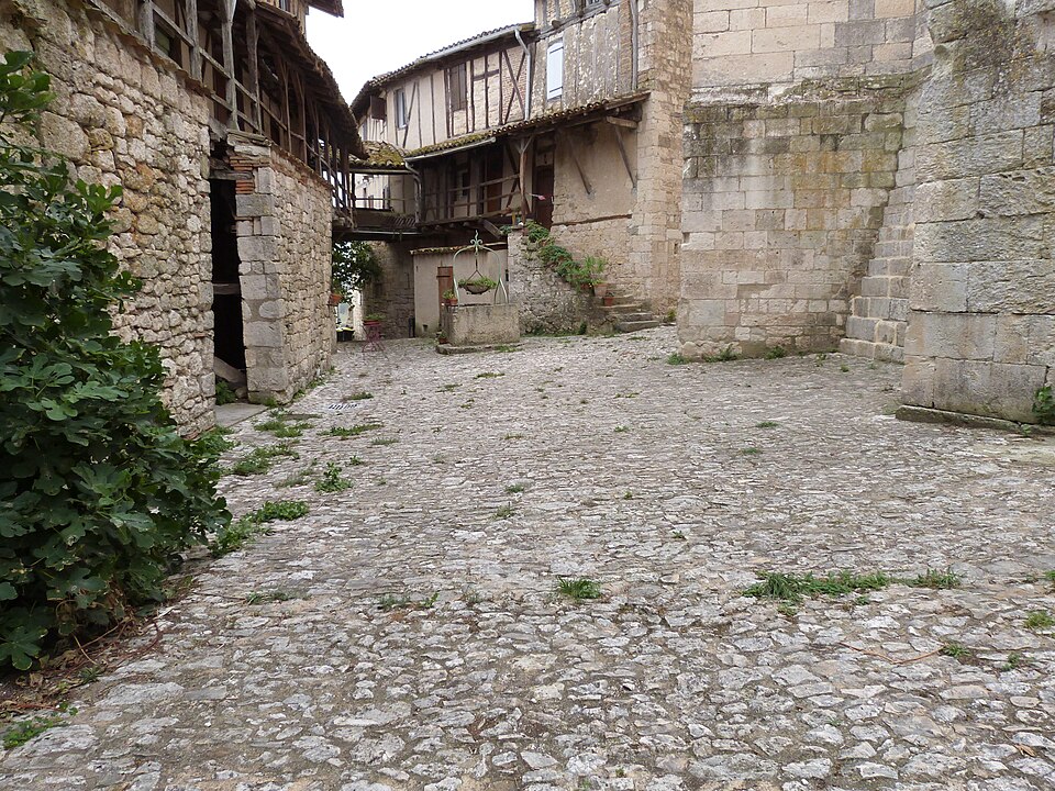 La collégiale Saint-Martin de Montpezat-de-Quercy, située dans le département de Tarn-et-Garonne, a été construite en 1337 grâce au cardinal Pierre des Prés et consacrée en 1343. L'édifice, classé au titre des monuments historiques dès la liste de 1840, présente une nef unique de cinq travées flanquée de chapelles et un chœur pentagonal sans chapelles latérales, l'ensemble étant dépourvu de transept. Les chapelles latérales, disposées entre les contreforts, jouent le rôle de soutènement de la nef sans recours à des arcs-boutants. Les voûtes d'ogives polygonales des travées sont séparées par des doubleaux et leurs clés portent les armoiries de Pierre des Prés. L'abside, voûtée d'ogives, est éclairée par une grande fenêtre axiale à meneau et quatre baies latérales plus petites. Le tympan du portail, refait, est dépourvu de décor ; au‑dessus s'ouvre une rosace formée d'une rose centrale à huit lobes entourée de huit trilobes, et seule la statue de la niche gauche subsiste. Le clocher, tour carrée située à gauche du portail au-dessus de la première chapelle, s'élève avec une tourelle polygonale percée de meurtrières qui conduit à l'étage supérieur, éclairé par des fenêtres géminées sur chaque face. Autour du chevet, des maisons qui servaient d'habitat aux chanoines ont conservé des façades et des toitures à pans de bois inscrites au titre des monuments historiques en 1956 ; leurs rez-de-chaussée sont en maçonnerie de moellons, leurs étages en pans de bois et briques, et le premier étage présente une galerie de communication reliant les bâtiments. Le mobilier du chœur comprend des stalles du XVe siècle et cinq tapisseries flamandes du début du XVIe siècle, offertes par Jean IV, évêque de Montauban, qui illustrent divers épisodes de la vie de saint Martin ; leur présence in situ, dans l'édifice pour lequel elles furent commandées, est remarquablement rare. Le chœur abrite également deux gisants : à droite Pierre des Prés en marbre blanc et à gauche son neveu Jean des Prés, évêque de Castres. Dans les chapelles latérales se trouvent une statue en albâtre du XIVe siècle de la Vierge à l'Enfant accompagnée de colombes, des coffrets en bois du XVe siècle et trois plaques d'albâtre d'un retable de Nottingham représentant la Nativité, la Résurrection et l'Ascension. Plusieurs chapelles, notamment les 1re et 4e du côté sud, conservent des lambris et des peintures réalisées pour l'église par F. Gérard de Moissac et Blaise Segrétin de Tours vers 1700. De nombreux objets de la collégiale sont répertoriés dans la base Palissy. Parmi les personnages associés à l'édifice, Antoine de Lettes, seigneur de Montpezat et chevalier de l'ordre de Saint-Michel, y a été inhumé après le 26 juin 1544.