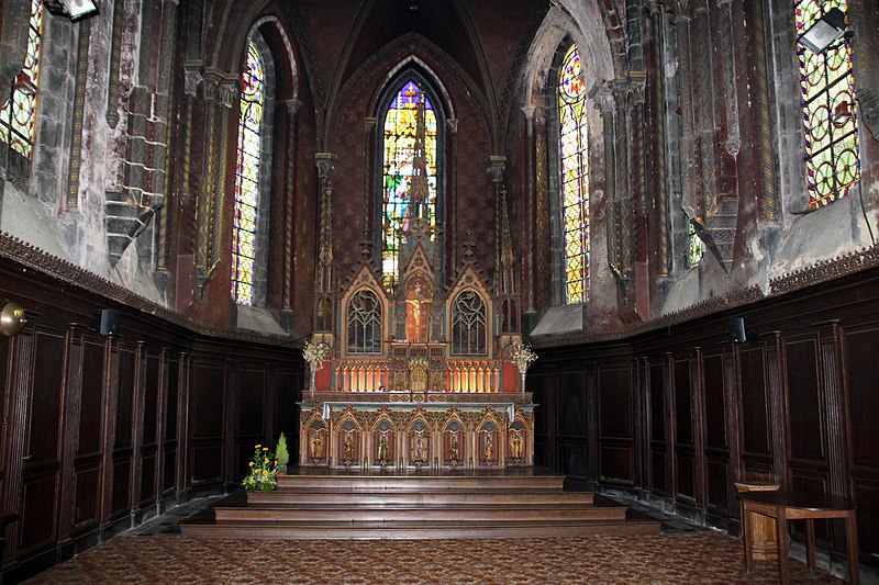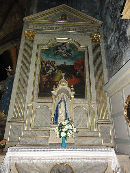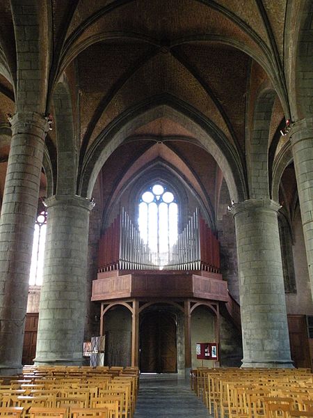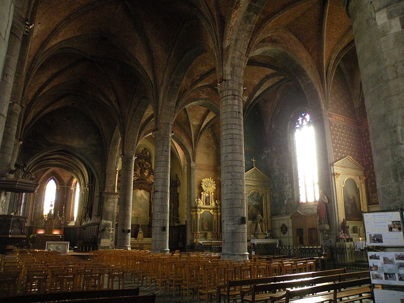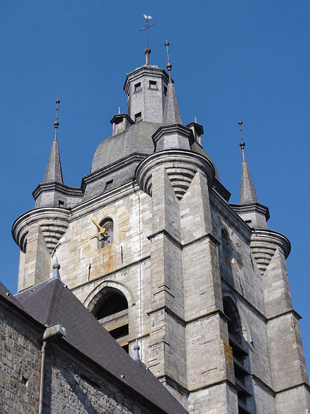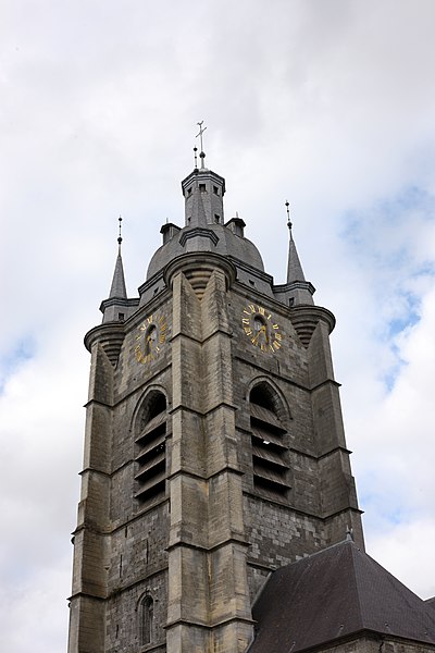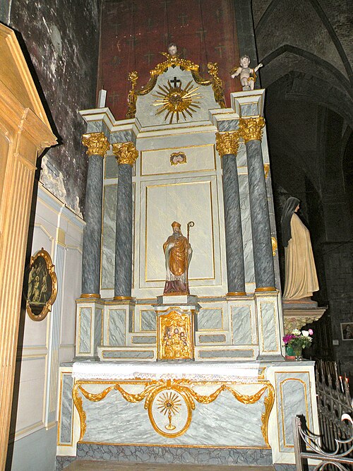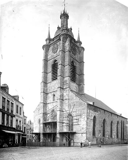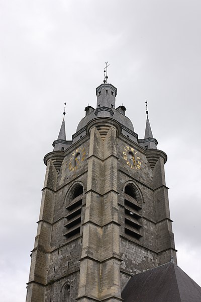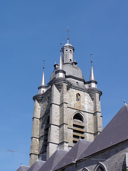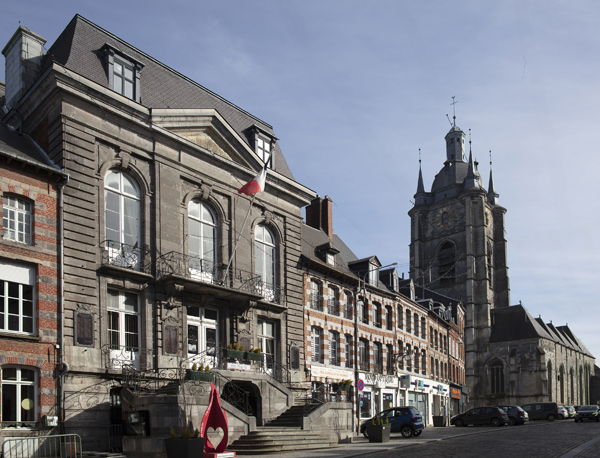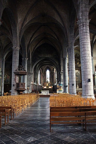 La collégiale Saint-Nicolas d'Avesnes-sur-Helpe se situe dans la commune d'Avesnes-sur-Helpe, dans le département du Nord. L'édifice, qui a connu plusieurs transformations au fil du temps, est classé au titre des monuments historiques depuis le 16 février 1913. Le 5 avril 2021, un incendie a causé d'importants dégâts à l'intérieur de la collégiale ; une enquête a été ouverte et le retable de l'autel sud a été détruit. Le chœur remonte au XIIIe siècle ; ses colonnes furent tronquées à environ trois mètres de hauteur en 1534 pour permettre l'installation des stalles des chanoines. Une grande partie de la nef a été reconstruite en pierres de Lez-Fontaine après un incendie en 1514, grâce aux libéralités de Louis d'Albret. En entrant par le portail principal, deux piliers imposants d'environ six mètres de circonférence supportent la tour. Le carillon est installé dans cette tour, qui a toujours eu un caractère communal : le beffroi de l'hôtel de ville, détruit en 1477 lors de la prise de la ville par Louis XI, fut remplacé au XVIe siècle par une seule tour servant à la fois l'église et la commune, et qui subsiste. La cloche dite « la Charlotte », donnée en 1514 par Charles Quint, a été fondue par Simon Wagheven. En partant du portail, à gauche, la quatrième chapelle Sainte-Anne présente un retable aux premiers signes de l'art baroque et est surmontée d'une statue de Sainte-Anne datée du XVe siècle ; la grande chapelle dédiée à la Vierge conserve des boiseries exécutées vers 1740 et des toiles de Louis-Joseph Watteau représentant l'Annonciation, la Visitation et, au centre, l'Assomption. À droite se succèdent la chapelle Saint-Antoine, la grande chapelle Saint-Nicolas et la chapelle Notre-Dame-des-..., pour laquelle une légende rapporte que la Vierge, entourée d'un essaim d'abeilles, aurait repoussé les Français lors d'une invasion en 1498. Le blason de Gilles Albert Denis, doyen de la collégiale, est d'azur au lion d'argent surmonté de trois abeilles d'or en chef. Le chapitre royal de Saint-Nicolas porte un écu complexe figurant un saint Nicolas pontifical dans une niche, une cuve avec trois enfants, et un écusson losangé brochant, accompagné de plusieurs quartiers héraldiques détaillés. Parmi les doyens de la collégiale se succèdent notamment Gilles Albert Denis (décédé en 1699), M. C. Hannoye (décédé en 1897), M. Hécart (1897-1903), M. Deligny (1903-1908), M. Daubresse (1908-1914), M. Gir (décédé en 1924), M. A. Inglart (1924-1935), M. Elie Deloge (1936-1939), le chanoine J. Bouché (décédé en 1963), le chanoine R. de la Motte Saint Pierre (1963-1970) et l'abbé J. Rousseaux (1970-1974). Jeanne de Lalaing (†1467) est inhumée dans la collégiale auprès de son mari Olivier de Blois (†1433). Parmi les éléments signalés en iconographie figurent une vue intérieure de 1903, le chœur, la pierre tombale d'Olivier de Blois, l'orgue et le triptyque de l'Assomption avec l'Annonciation à gauche et la Visitation à droite. Pour approfondir, on peut se reporter à la notice d'Adolphe-L. Bourgeois intitulée Notice sur le chapitre de Saint-Nicolas d'Avesnes (Avesnes : Dubois-Viroux, 1856).