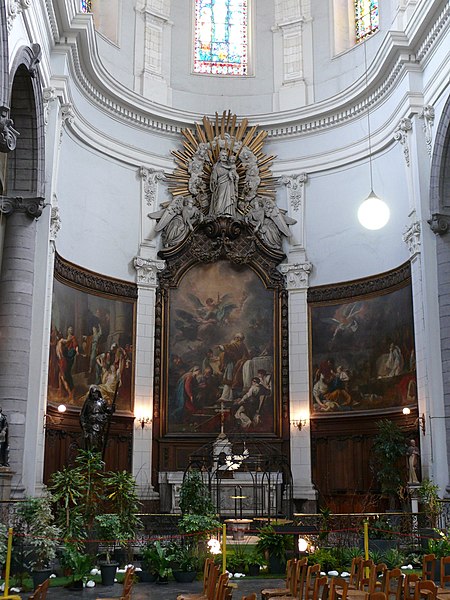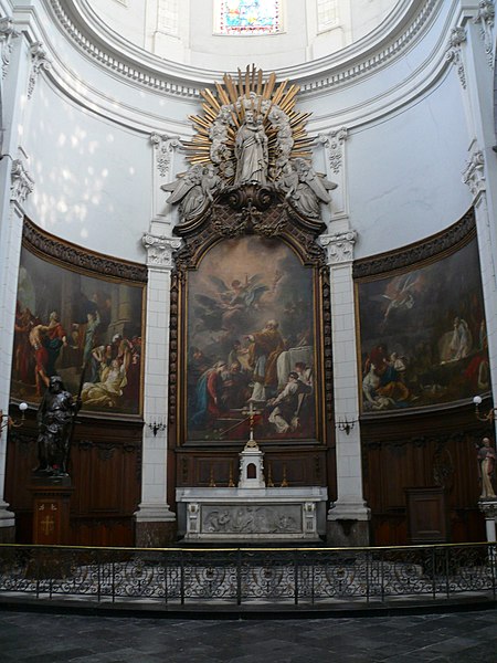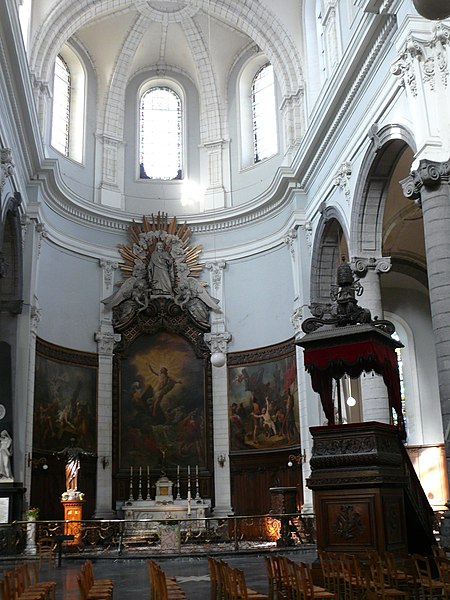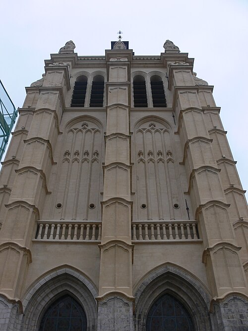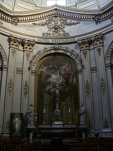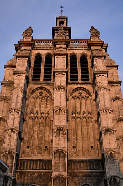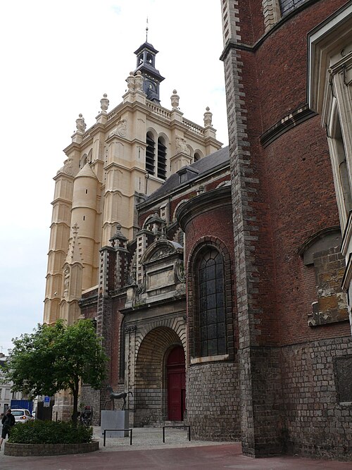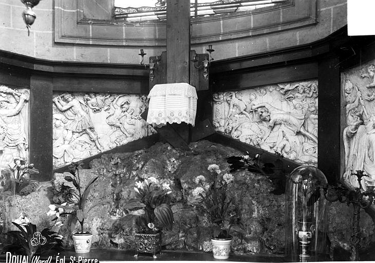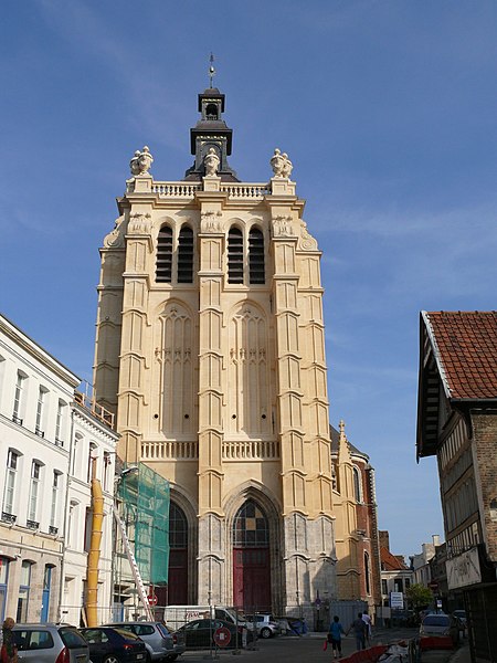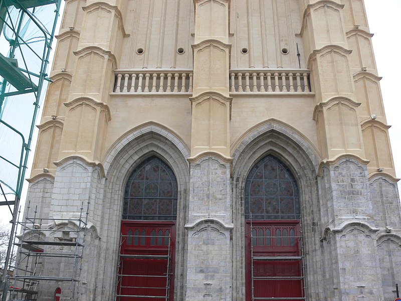 La collégiale Saint-Pierre de Douai, située dans le Nord de la France, est l’une des rares églises de la ville aux côtés de la collégiale Saint-Amé. Elle s’étend sur 112 mètres, ce qui en fait la plus longue au nord de Paris, et elle est classée au titre des monuments historiques depuis le 21 février 1974. À l’origine église paroissiale, elle fut élevée en collégiale probablement en 1113 par le comte de Flandre Baudouin VII ; elle exerçait la juridiction sur l’ensemble des paroisses de la rive droite de la Scarpe. Jean Rayne, échevin de la ville victime d’une erreur judiciaire en 1364, fut inhumé dans la chapelle Sainte‑Croix par arrêté du conseil du roi. Le clocher a été rebâti entre 1513 et 1687, mêlant styles gothique et classique, et son couronnement a été refait en 1904–1905. Le vaste édifice actuel date de 1735–1750 après que l’église précédente, menaçant ruine, fut interdite au culte et démolie en 1734. La reconstruction aurait été commandée vers 1740 par des membres du Parlement sous l’impulsion de son président Charles‑Joseph de Pollinchove ; l’architecte municipal était Antoine‑Joseph Lefebvre, bien que certaines sources attribuent les plans à Brissy de Bruxelles. L’église, en croix latine, comprend trois nefs, un transept aux extrémités arrondies et une chapelle axiale coiffée d’un dôme du XVIIIe siècle. Remarquable par son harmonie et son classicisme mêlé d’éléments gothiques flamands, l’édifice renferme de nombreux tableaux de l’école française du XVIIIe siècle, un retable du début du XVIIe siècle, des sculptures en marbre des XVIIe et XVIIIe siècles, ainsi que du mobilier (chaire, autels, grille) daté du XVIIIe siècle ; sous l’autel de la coupole repose une chasse en argent doré du XIIIe siècle. Le bâtiment actuel mesure 112 mètres de longueur sur 42 mètres de largeur et la hauteur des voûtes atteint 25 mètres. La tour carrée, édifiée de 1512 à 1686, porte sur un pilier la date de 1518, n’a jamais reçu la flèche prévue et a résisté aux sièges de 1710 et 1712. Lors de la Révolution, les six cloches furent déposées et la collégiale devint le Temple de la Raison ; dégradée au XIXe siècle, sa partie supérieure fut restaurée en 1903–1904 avec balustrade classique, clochetons et vases Médicis. En 1917 l’occupation entraîna un nouvel enlèvement des cloches, dont trois furent refondues dans les années 1920 par les établissements Wauthy de Sin‑le‑Noble. La tribune supporte l’orgue monumental : l’instrument principal, construit originellement pour l’abbaye d’Anchin en 1732 et transféré en 1792, connut de nombreuses restaurations, fut pillé en 1917 puis enrichi en 1922 par un orgue Cavaillé‑Coll/Mutin conçu entre 1910 et 1914 ; cet instrument de style symphonique français possède quatre claviers, 69 jeux et environ 4 400 tuyaux, est classé aux Monuments historiques depuis 2002 et ses titulaires actuels sont Marc Carlier, Denis Tchorek et Henri Vitté. Il fonctionne avec une transmission mécanique complétée de machines Barker, sommiers à registres et divers dispositifs pneumatiques et mécaniques de combinaisons. L’orgue de chœur, construit en 1856 par Merklin avec un buffet en chêne des établissements Buisine, restauré en 1952 par Jean Pascal, compte onze jeux, un clavier de 54 notes, un pédalier de 30 notes et environ 570 tuyaux. À gauche de l’entrée, sous la tour, un mémorial et un reliquaire rappellent que Douai offrit pendant 125 ans refuge aux catholiques anglais, avec une mention de saint John Southworth. Un monument commémoratif évoque aussi la fondation de l’université de Douai, autorisée en 1559 selon une bulle papale (attribuée par d’autres sources à Philippe II), ouverte en 1562 avec cinq facultés et dotée d’un réseau de collèges et de séminaires qui lui valut une large renommée. Le transept gauche abrite un autel de marbre et des chandeliers provenant de l’abbaye de Marchiennes, une toile attribuée à Lagrenée et trois mausolées, dont celui de Charles‑Joseph de Pollinchove sculpté par Christophe‑Gabriel Allegrain. La chapelle Notre‑Dame des Miracles, commencée en 1523, s’ouvre sur le dôme depuis un déambulatoire; elle conserve une madone du XVIe siècle, des guirlandes de Nicolas Brenet (1768), six tableaux et des œuvres modernes comme le chemin de croix de Jean‑Paul Blanc. La chapelle Saint‑Laurent présente un buste de saint Roch et une Résurrection de Lazare d’Abraham Janssens. Le maître‑autel, de style Louis XV, est du XVIIIe siècle et est flanqué de statues en plâtre de Théophile Bra représentant saint Pierre et saint Paul. Le transept droit reçoit un calvaire provenant de l’abbaye de Flines, six panneaux de marbre blanc de l’abbaye de Saint‑Amand dus à Schleiff, ainsi que des œuvres et bas‑reliefs venus des abbayes d’Anchin et de Marchiennes. Une relique attribuée à l’apôtre Jacques — une arcade sourcilière donnée au Moyen Âge — fut retrouvée dans l’église Saint‑Jacques de Douai et doit être exposée dans le narthex de la collégiale dans un reliquaire initialement dédié à saint Roch. L’hostie du miracle eucharistique de Douai, reliée à une vision de 1254 survenue à la collégiale Saint‑Amé et décrite par Thomas de Cantimpré, est conservée dans la collégiale Saint‑Pierre. Une importante campagne de réfection de la toiture en ardoises sur 3 000 m2 et de la zinguerie a été engagée en 2009; les travaux, réalisés en six phases sur dix ans pour un coût estimé à 5 millions d’euros, ont été inaugurés le 22 juin 2019 en présence de Marc Drouet, directeur régional des affaires culturelles des Hauts‑de‑France.