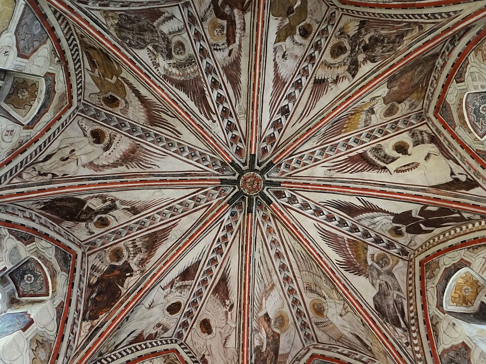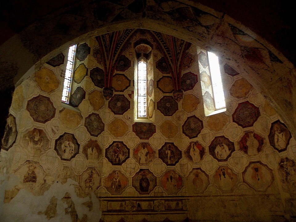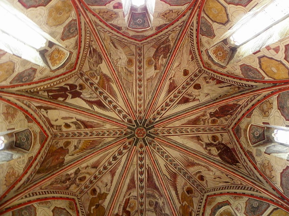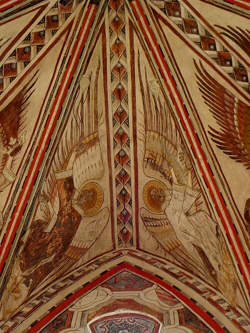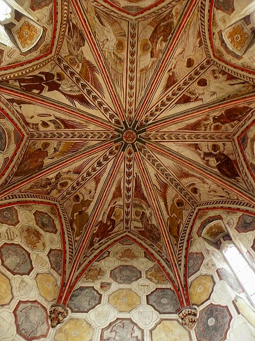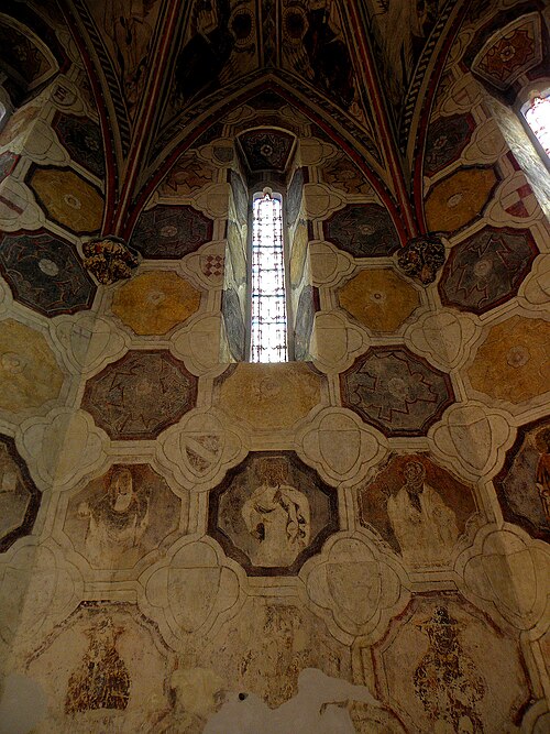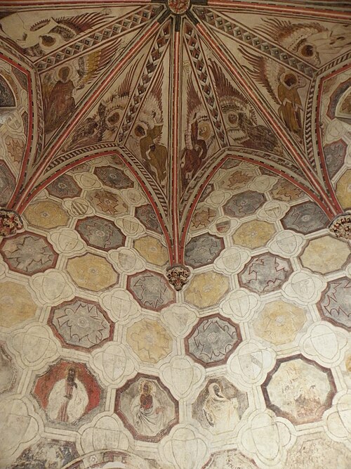 La collégiale Saint-Pierre de La Romieu, située dans le village éponyme au nord du département du Gers, se compose d'un cloître, d'une église, de deux tours et des vestiges d'un ancien palais. Collégiale et cloître ont été édifiés par le cardinal Arnaud d'Aux, natif de La Romieu, qui acquit un ancien prieuré fondé, selon la tradition, par deux moines de retour d'un pèlerinage à Rome, d'où le nom du lieu. Arnaud d'Aux, parent du pape Clément V et camérier de la cour pontificale, en fit la collégiale. L'ensemble est classé au titre des monuments historiques depuis 1901 et inscrit au patrimoine mondial de l'Unesco depuis 1998 dans le cadre des chemins de Saint-Jacques-de-Compostelle. L'église présente une longue et haute nef de quatre travées, flanquée de deux tours : la tour carrée abrite le clocher, tandis que la tour octogonale contient, du bas vers le haut, la sacristie, l'ancienne salle capitulaire, la salle des archives et un belvédère. Le comble de l'église était pourvu d'une arcature ininterrompue conçue pour la défense de l'édifice et de la population réfugiée en cas d'alerte ; ces arcades jouaient le rôle de créneaux et les merlons qui les soutenaient étaient percés de meurtrières cruciformes. L'eau de pluie pouvait pénétrer par les créneaux ; elle était recueillie dans un caniveau en pierre, acheminée par une rigole au droit de chaque pinacle des contreforts et évacuée par des gargouilles. À l'intérieur, la sacristie est ornée de peintures murales en médaillons représentant les apôtres, des saints et des évêques, tandis que la voûte porte des décors d'anges et d'anges musiciens. Des vues et documents illustrent le cloître, les peintures de la sacristie, la voûte de la nef ainsi que les deux tours et le chevet. Pour approfondir, on peut consulter des études et notices, notamment l'ouvrage d'Evelyne Ugaglia (2003, 32 p.) et plusieurs articles de J.-I. Broconat publiés dans la Revue de l'Agenais (1906–1909). Des ressources et notices complémentaires sont également accessibles sur des portails et bases documentaires consacrés au patrimoine, ainsi que sur Wikimedia Commons.