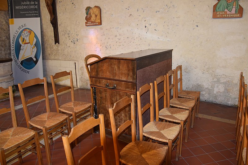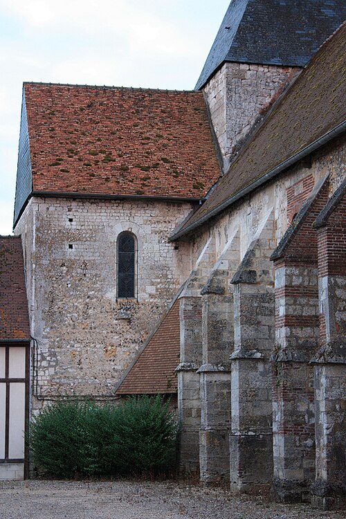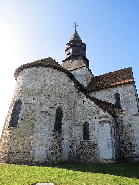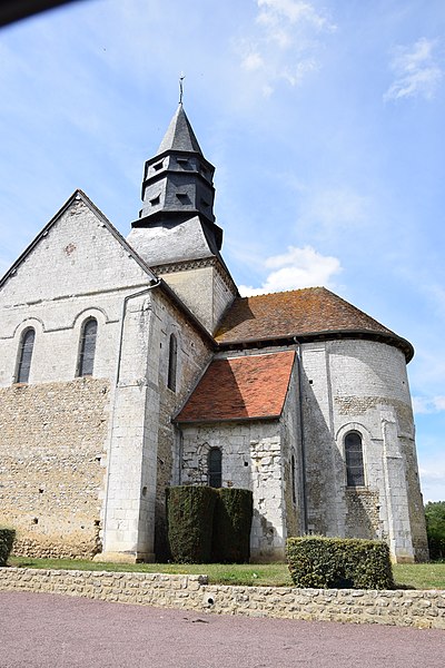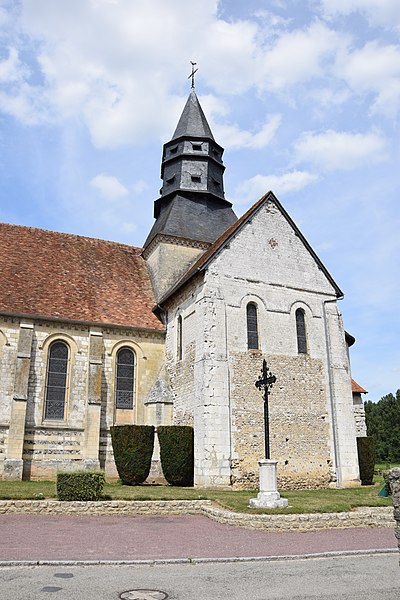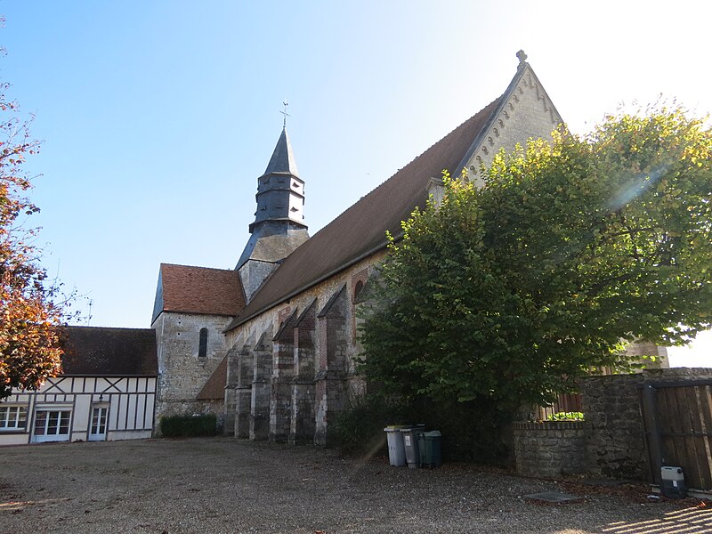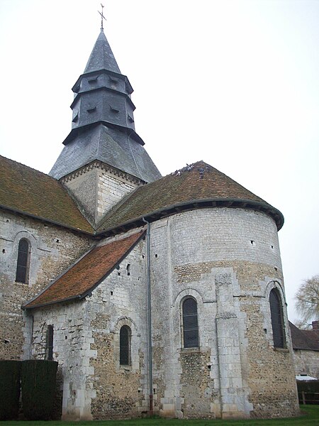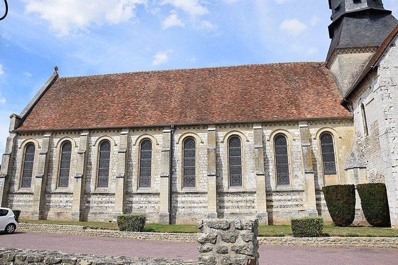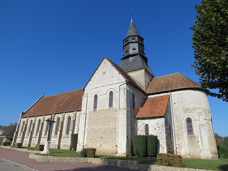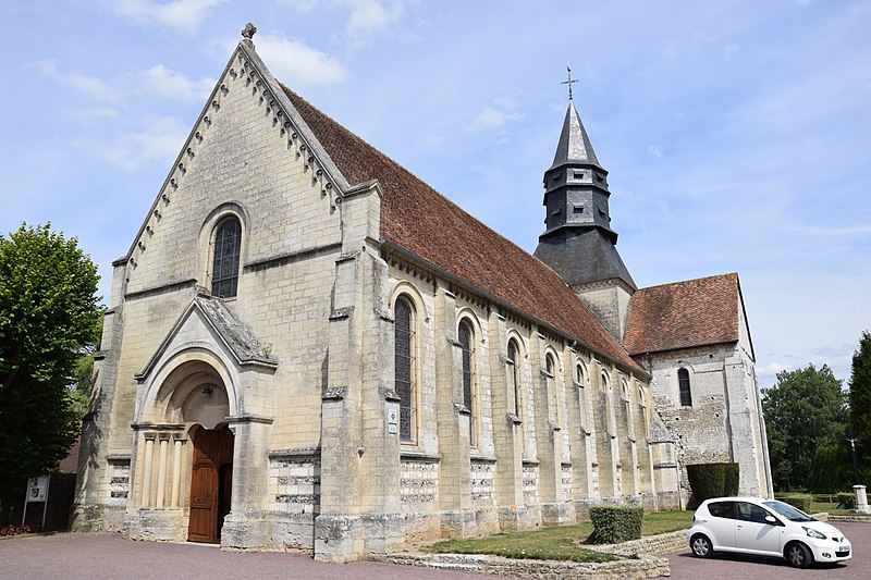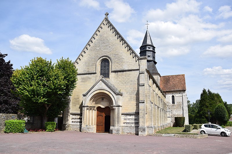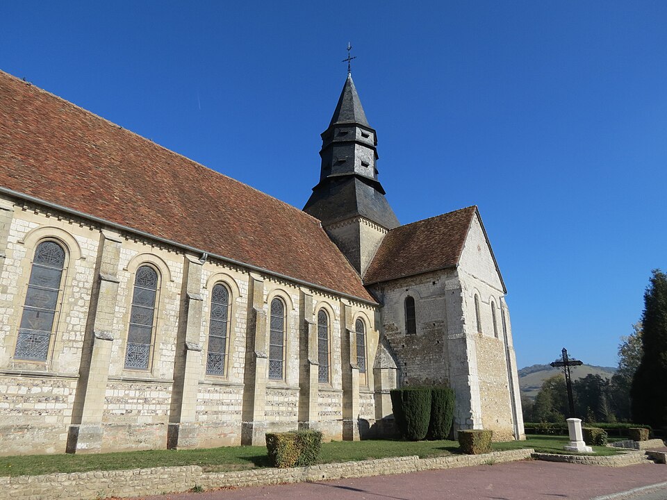 La collégiale Saint-Pierre de Neuf‑Marché, aujourd’hui église paroissiale, trouve son origine vers 1080 quand des moines venus de l’abbaye de Saint‑Evroult établissent un prieuré. En 1088, Hugues de Grandmesnil remplace les chanoines par des moines bénédictins ; à la fin du XIe siècle le prieuré ne compte que quatre religieux. Le chœur est rebâti en 1128 par ordre de Guillaume de Roumare, qui porte alors le nombre de moines à onze et entreprend la reconstruction de la collégiale en s’appuyant sur l’architecte du château de Neuf‑Marché ; la nef ancienne est conservée et reliée au nouveau chœur par des passages latéraux. Une grande partie de l’édifice actuel date des XIIe et XIIIe siècles. La collégiale accueille des événements importants au XIIe siècle, notamment le mariage de Marguerite de France et d’Henri le Jeune le 31 août 1158, puis en juillet 1160 le concile des évêques d’Angleterre et de Normandie qui confirme l’élection d’Alexandre III et annule celle de l’anti‑pape Victor IV. L’archevêque de Rouen Eudes Rigaud visite fréquemment le prieuré et ordonne en 1268 la séparation des lieux de culte pour moines et paroissiens. Pendant la Révolution, l’édifice est vendu comme bien national vers 1790 et devient église paroissiale ; il subit des destructions et des incendies. Au XIXe siècle, la grande nef est restaurée entre 1863 et 1872 par l’architecte Dauphiné, et les murs sud et ouest sont consolidés en 1871. L’édifice est gravement endommagé en 1944 : toiture et voûtes s’effondrent, murs lézardés et vitraux brisés ; la toiture est ensuite refaite. Arrivé en 1951, l’abbé Lucien Bodin mène pendant une dizaine d’années la restauration de l’église sans aide communale et fait remettre à neuf les intérieurs de la nef et du chœur entre 1953 et 1959. En 1963, l’artiste Jacques Pasquier réalise des fresques représentant les vertus théologales, les mystères du Rosaire et des épisodes de la vie de saint Pierre. L’église fait l’objet d’un classement au titre des monuments historiques depuis le 4 octobre 2004.