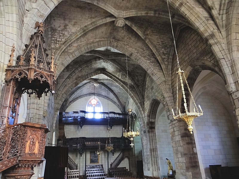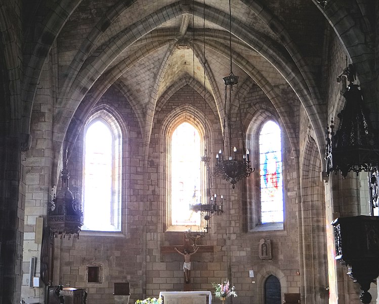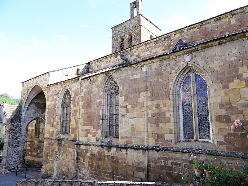 La collégiale Saint‑Sernin de Saint‑Sernin‑sur‑Rance, située dans l'Aveyron, est classée au titre des monuments historiques en 1930. L'édifice mesure 33 mètres de longueur, 9,58 mètres de largeur et 12 mètres de hauteur ; il abrite huit chapelles, dont une dédiée à la Vierge. L'observation montre qu'il résulte d'adjonctions successives, certains soubassements pouvant remonter à la fin du XIVe siècle. Après son érection en collégiale par le pape Eugène IV en 1442, l'église primitive a été augmentée de plusieurs chapelles dans la seconde moitié du XVe siècle, selon J.-P. Suau (1993). Deux chapelles et le porche pourraient dater de la fin du XVe siècle et une autre chapelle appartient à la Renaissance. Les architectes ont introduit des éléments originaux, comme la forme triangulaire des contreforts du chœur. La « chapelle A » présente une voûte et une plate‑bande à double clef, formée de cinq appareils, qui ferme la baie de communication avec la nef ; ces dispositifs sont d'une conception originale pour l'époque. Les clés de la voûte figurent le Christ portant le globe du monde et bénissant les quatre évangélistes. Un rapport de 1926 signale des traces de peinture au‑dessus de la porte d'entrée, à l'intérieur du gâble. En 1518, Antoine de Baderon, seigneur de Saint‑Sernin, fait son testament en fondant une chapelle « dédiée à Notre‑Dame‑de‑Pitié » dans l'église, où ses restes doivent être transférés une fois la chapelle construite. À l'extérieur, la fenêtre d'une chapelle est surmontée d'un personnage tenant un écu gravé de la date 1646 suivie d'un R ; ce relief a été intégré ultérieurement dans la maçonnerie. L'église était autrefois ornée d'un grand nombre d'écussons, qui ont été grattés lors de la Révolution. Lors de son érection en collégiale, le chapitre comprenait douze chanoines, six prébendés et deux simples clercs ; la bulle d'institution précise que la piété devait être maintenue dans le castrum et que la ville nourrissait déjà vingt‑quatre prêtres grâce aux fondations ou au casuel, rendant inutile le recours à d'autres églises pour former le personnel.