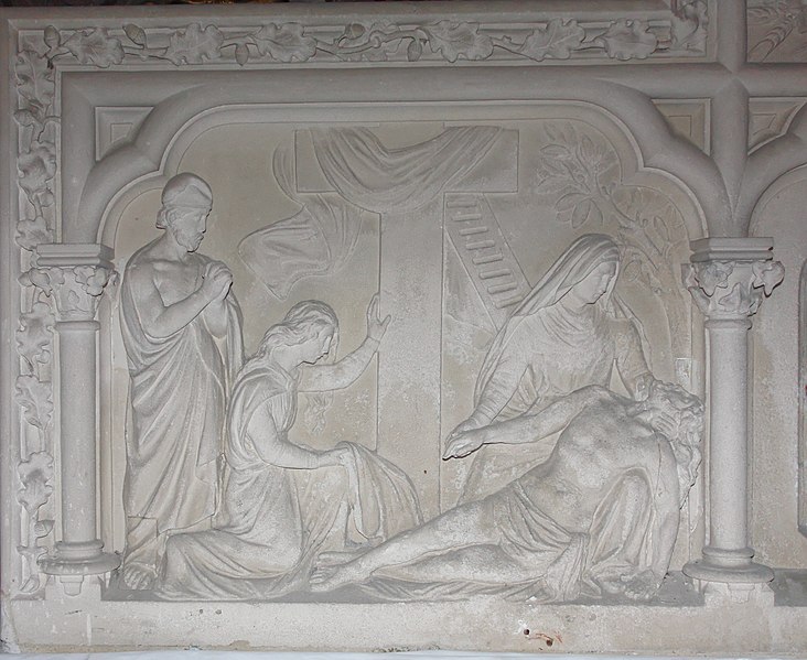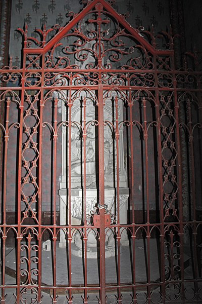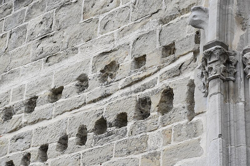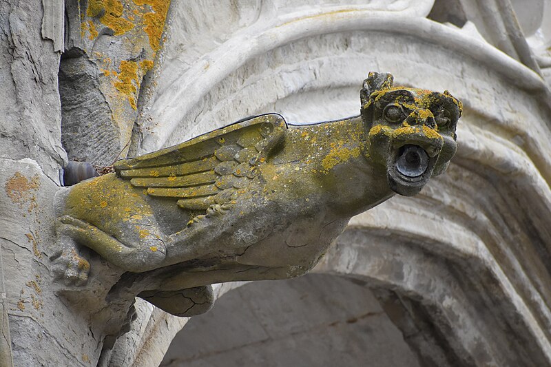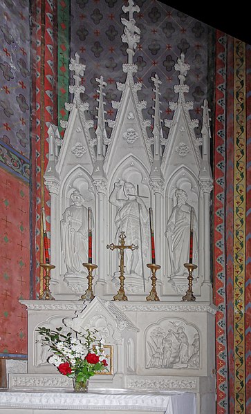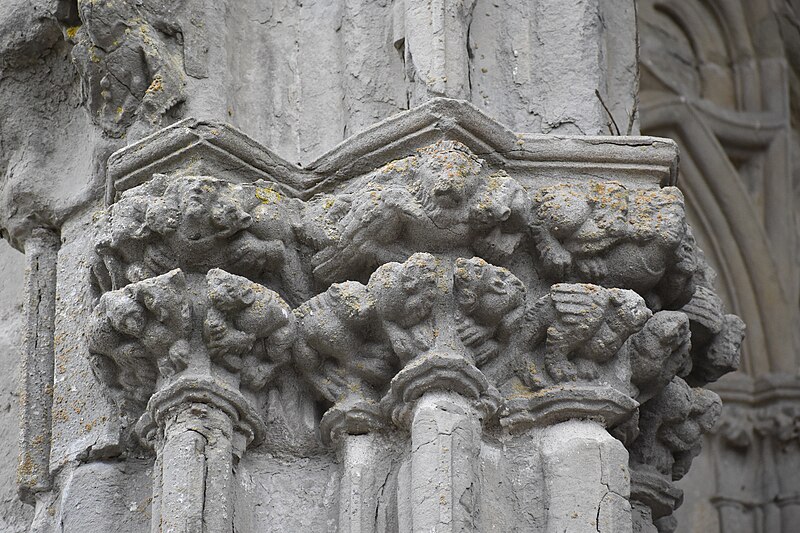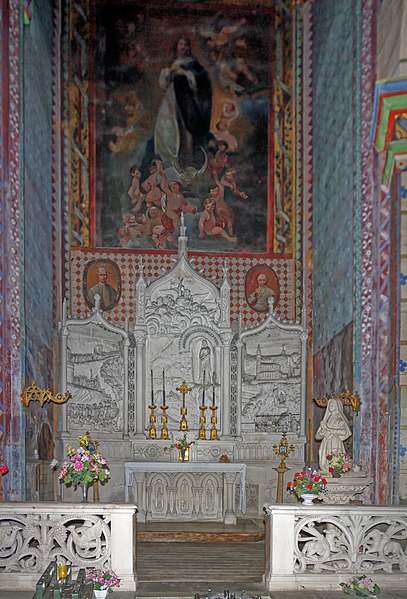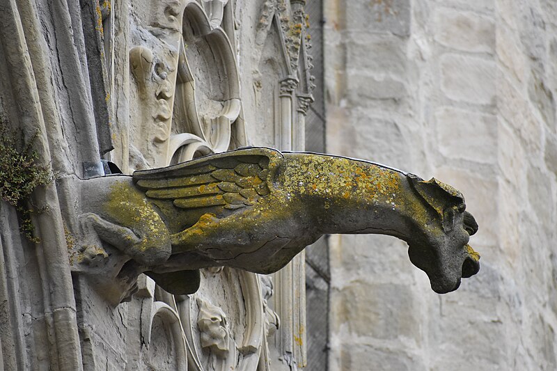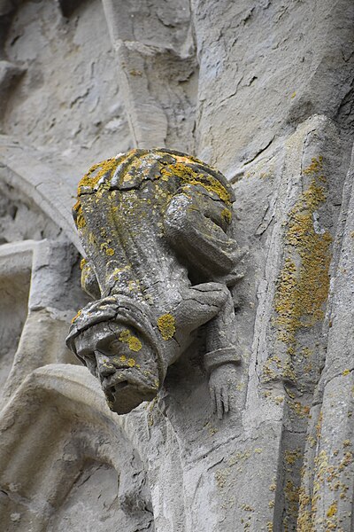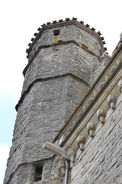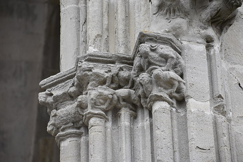 La façade méridionale présente en son centre un porche richement sculpté, précédé d'un large escalier à deux degrés, dont le gâble masque en partie une rosace percée au-dessus de la porte. À l'est s'élève une haute tour octogonale coiffant le clocher et ornée d'arcatures aveugles, tandis qu'à l'ouest une tourelle circulaire surmonte un encorbellement d'angle ; de part et d'autre du portail d'entrée s'ouvrent six hautes fenêtres, trois de chaque côté, qui éclairent les chapelles latérales. Le portail secondaire de la façade occidentale est assez détérioré et, au nord de cette même façade, une tourelle octogonale fait pendant au clocher ; le chevet polygonal est en partie masqué par la sacristie de 1763.