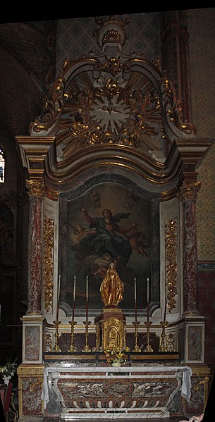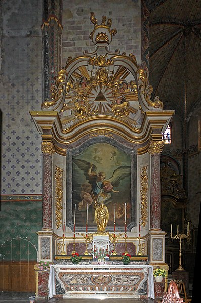 L'intérieur comprend une nef unique d'environ 20 mètres de largeur, bordée de treize chapelles logées entre les contreforts — sept à droite et six à gauche, l'emplacement manquant étant occupé par la porte d'entrée. L'abside pentagonale est précédée d'un chœur pourvu de soixante-six stalles de bois finement sculptées, trente-trois hautes et trente-trois basses, datées du XVIIe siècle. L'église conserve de nombreux tableaux : dans le chœur se trouvent sept toiles de Jean-Baptiste Despax retraçant la vie et le martyre de saint Vincent, avec au centre une grande composition de 6,00 × 3,90 m représentant le saint sur un lit de roses et six toiles de 1,80 × 3,50 m illustrant l'ordination, la prédication, l'arrestation, le jugement, le martyre et l'apothéose ; dans la chapelle en face de la porte d'entrée deux toiles de Jacques Gamelin représentent saint Pierre guérissant un paralytique et saint Roch secouru par un ange, et, dans les chapelles latérales proches du chœur, on trouve encore de lui un Archange Gabriel et une Assomption de la Vierge.