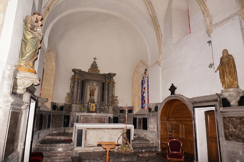 L'édifice présente un plan absidial avec une nef unique, un chœur et un transept de style roman enrichis à la fin du XIIe siècle par des voûtes sur croisées d'ogives, et un chevet circulaire à sept côtés. La façade actuelle, reconstruite en 1775, comporte une tour carrée servant de base à un clocher octogonal et a été édifiée en avant de l'église, six marches au-dessus de son niveau. Le mur extérieur du chevet peut remonter à la fondation ; une crypte a dû exister par le passé.