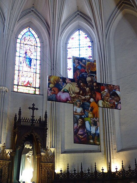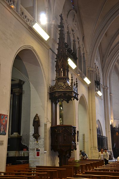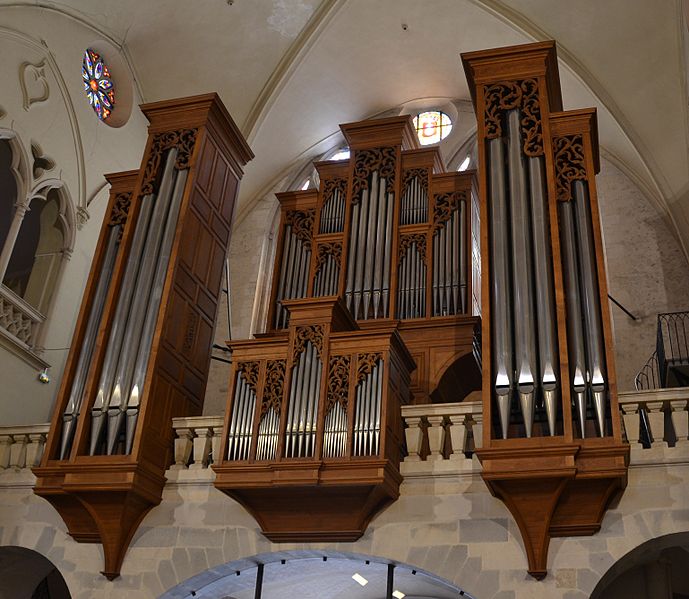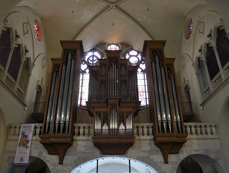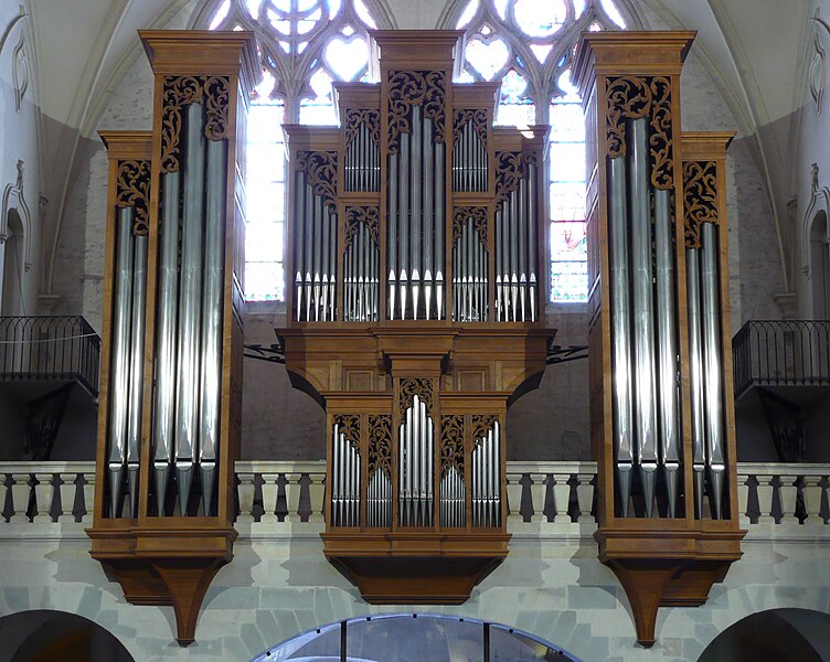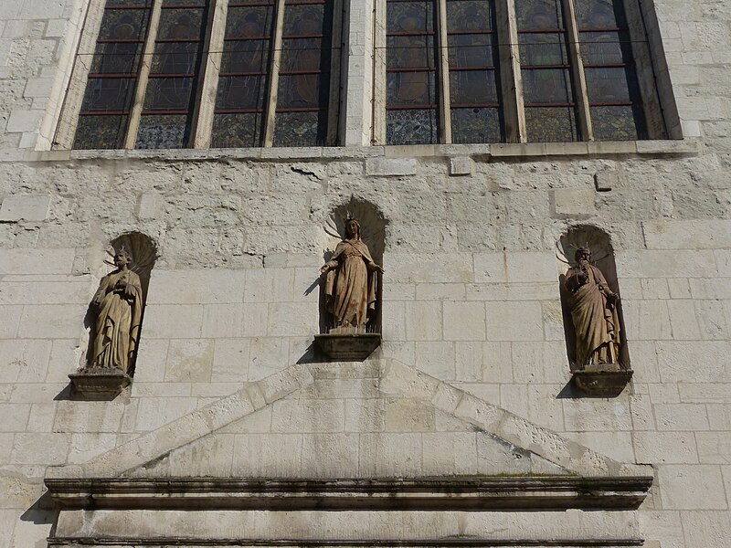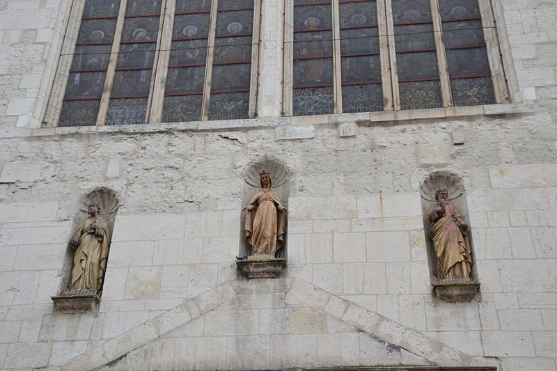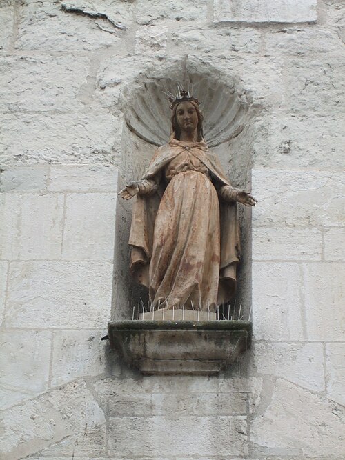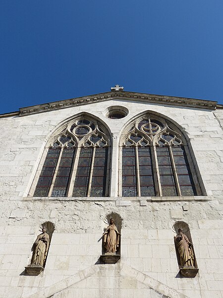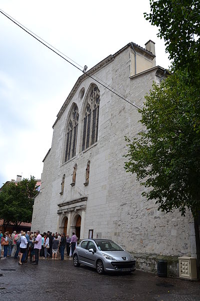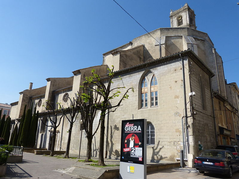 La collégiale Sainte‑Croix de Montélimar est attestée dès le XIIe siècle et une bulle papale la désigne comme dépendance de l'abbaye de l'Île‑Barbe. D'origine romane, il ne subsiste de cette période qu'une partie basse de la tour du clocher. L'empereur Frédéric II Barberousse y vint pour son sacre en tant que roi d'Arles. Après le rattachement de la ville au Dauphiné, le dauphin Louis sollicita l'élévation de l'église en collégiale auprès du pape Nicolas V ; la décision favorable intervint en 1449, précédant d'importants travaux de transformation. L'édifice fut agrandi à la fin du XVe siècle et la façade principale, de la première moitié du XVIe siècle, présente un portail composé de deux ouvertures en plein cintre encadrées par trois colonnes toscanes ; un fronton triangulaire au‑dessus de la corniche a disparu. Le clocher, reconstruit au milieu du XVIe siècle et achevé en 1555, est élevé en plusieurs étages ornés de pilastres, chapiteaux ioniques, architrave et corniche ; sa partie haute est bordée d'un acrotère et d'angles en pierre sculptée. En 1567 la ville fut pillée et la collégiale incendiée : le chœur, l'abside et le clocher furent les éléments principaux à subsister. La reconstruction débuta en 1577 et s'acheva en 1606, date portée sous une fenêtre gothique, tandis que le culte catholique fut rétabli en 1589. Au cours du XVIIe siècle, on ajouta une sacristie au sud‑est en 1638 et l'orgue fut rénové en 1682 ; en 1616 puis en 1700 des jacquemarts furent remplacés. Après la révocation de l'édit de Nantes, la cloche du temple protestant démoli fut installée dans la collégiale sous le nom de « la Calvine ». Le chœur reçut une clôture en fer forgé en 1755, déplacée en 1848. Transformée pendant la Révolution en temple du culte de la Raison, l'église retrouva le culte catholique sous le Concordat en 1802 ; en 1818 on réalisa la voûte en briques de la nef et la tribune des orgues. Sur le plan architectural, la nef principale et les bas‑côtés du XVIe siècle ont reçu des tribunes et des baies ajourées en ciment moulé au milieu du XIXe siècle, tandis que le chœur, voûté sur croisées d'ogives, présente une abside polygonale et des chapiteaux ornés de motifs animaliers. La collégiale a conservé au fil des siècles un mélange d'éléments romans, gothiques et de la Renaissance, témoignant des nombreuses campagnes de reconstruction et d'embellissement. Elle est inscrite à l'inventaire des monuments historiques.