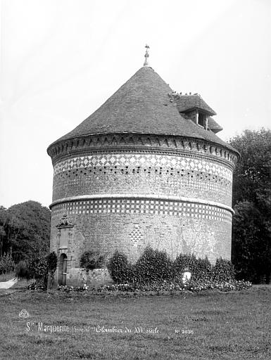 Le colombier du manoir est une tour circulaire, vestige de l'ancien domaine qui conserve également un grand logis néo-classique. Daté de la fin du XVIe ou du début du XVIIe siècle, il présente un décor polychrome en brique, calcaire et silex comprenant des damiers, des frises et des armoiries. L'élément conserve son échelle tournante, ses boulins et sa lucarne d'envol. Il se situe au 2336, chemin de la Mer, au sein du domaine du château de la Tour à Sainte-Marguerite-sur-Mer (Seine-Maritime). Le colombier fait l’objet d’une inscription au titre des monuments historiques depuis le 31 octobre 2007.