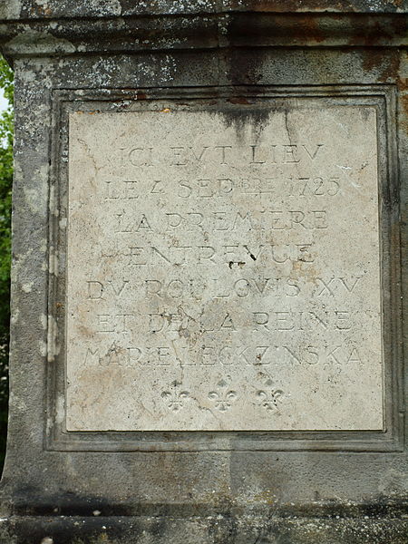 Colonne érigée en souvenir de la première rencontre de Louis XV et Marie Leczinska le 4 septembre 1725