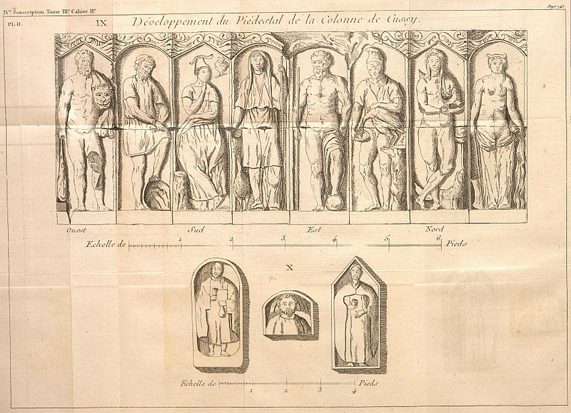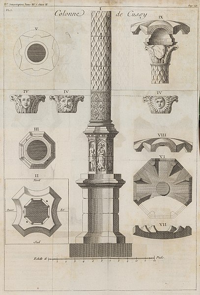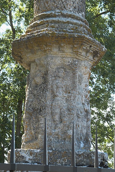 La Colonne romaine de Cussy-la-Colonne, dans la Côte-d'Or, est un monument daté du IIIe siècle. Elle semble avoir marqué l'entrée d'un domaine gallo-romain ou, selon une autre hypothèse, avoir été érigée en l'honneur de Taranis, dieu du tonnerre, car elle se trouve sur une faille géologique réputée attirer la foudre. Partiellement écroulée au sommet depuis une date inconnue, la colonne a fait l'objet d'une restauration par Claude Saintpère en 1825. Elle est classée au titre des monuments historiques par la liste de 1846. Située à l'écart du village, en contrebas d'un chemin, elle mesure actuellement 11,60 mètres de haut. À sa base reposent deux piédestaux octogonaux séparés par une corniche ; le piédestal inférieur est orné de divinités dont l'interprétation varie : certains reconnaissent Junon avec un sceptre et un paon, Jupiter avec un sceptre, Apollon, Vénus, Diane, Mercure, Saturne et Mars, tandis que d'autres proposent Minerve, Junon, Jupiter, Ganymède, Diane, une nymphe, Hercule et Prométhée. Des vues documentent la colonne en 2009, le piédestal octogonal originel et la partie sommitale telle qu'elle existait au XIXe siècle.