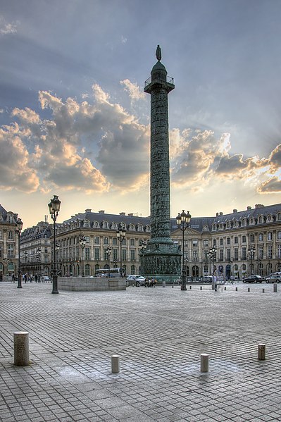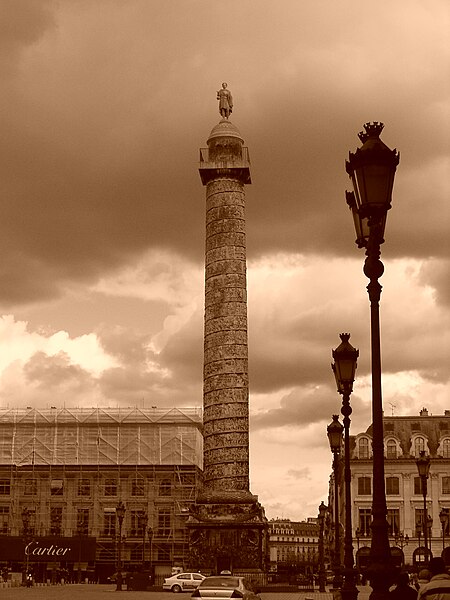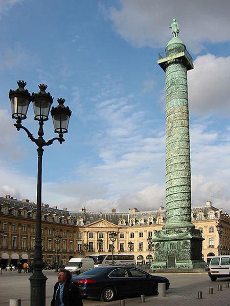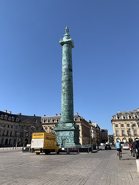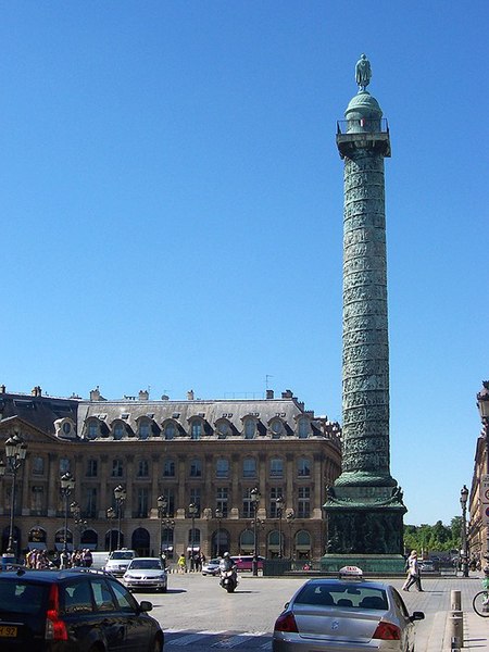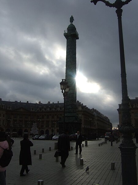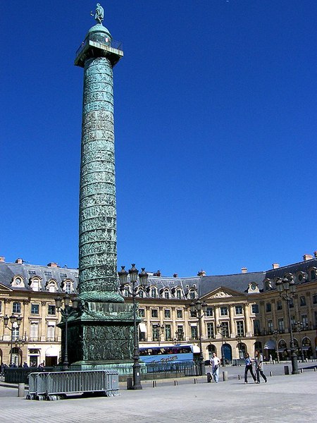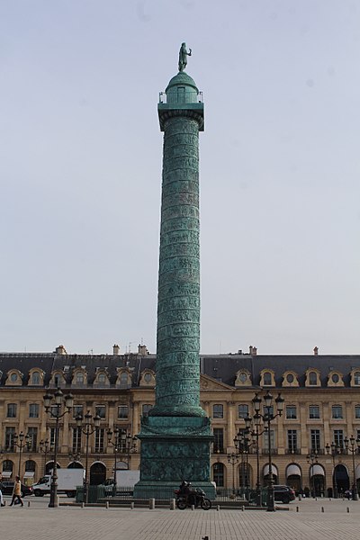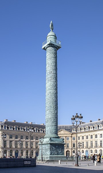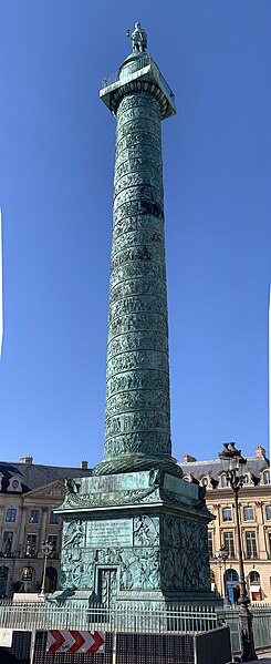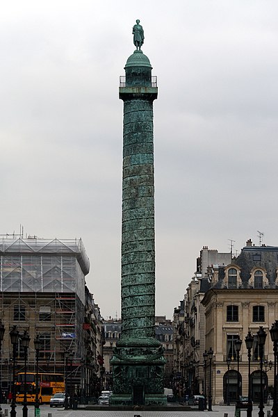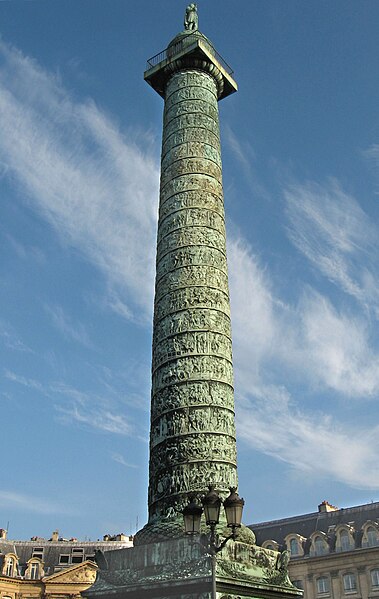 La colonne Vendôme se dresse au centre de la place du même nom, dans le 1er arrondissement de Paris. Érigée sur ordre de Napoléon Ier entre 1806 et 1810 pour commémorer la bataille d'Austerlitz, elle fut détruite lors de la Commune de Paris en 1871 puis reconstruite dans sa forme actuelle. Elle a porté successivement les noms de colonne d'Austerlitz, colonne de la Victoire et colonne de la Grande Armée, et est couramment appelée colonne Vendôme ; elle est distincte de la colonne de la Grande Armée près de Boulogne-sur-Mer. La colonne est classée au titre des monuments historiques depuis le 31 mars 1992.