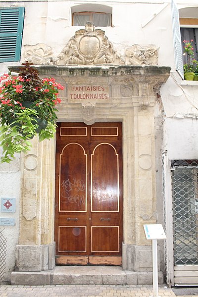 Le premier théâtre de Toulon fut édifié à la fin du XVIIIe siècle : les sources évoquent les années 1765 ou 1775 pour sa construction. Il comprenait une salle rectangulaire à quatre niveaux de galeries ; un vestibule et un portail sculpté donnant sur la rue de la Comédie furent ajoutés quelques années plus tard. Malgré son inconfort et une fréquentation limitée, la Comédie accueillit des artistes et personnalités tels que Talma, Rachel et le compositeur Offenbach. Dès 1810, un projet de théâtre plus vaste fut envisagé, et l'abaissement des remparts autour de 1850 permit sa réalisation ; le Grand Théâtre de Toulon fut inauguré en 1862, rendant l'ancienne Comédie obsolète. La salle elle-même fut détruite par des bombardements pendant la Seconde Guerre mondiale ; il ne subsiste aujourd'hui que deux portails et un escalier qui menait aux appartements de la direction. L'ancien vestibule est occupé par un commerce. Le portail sculpté sur l'ancienne rue de la Comédie (aujourd'hui rue Denfert-Rochereau) constitue l'élément le plus remarquable : un cartouche central porte l'inscription "Fantaisies toulonnaises", appellation tardive du théâtre, et un médaillon le surmonte, orné d'une coquille, d'une tête d'enfant et de cornes d'abondance. De part et d'autre du médaillon se trouvent des attributs de la Musique et de la Comédie, difficilement identifiables aujourd'hui. Parmi les rares entrées monumentales conservées à Toulon, ce portail présente, par son programme décoratif, un caractère original et reste le seul témoin visible du premier théâtre de la ville. Le portail est inscrit au titre des monuments historiques par arrêté du 11 février 1998.