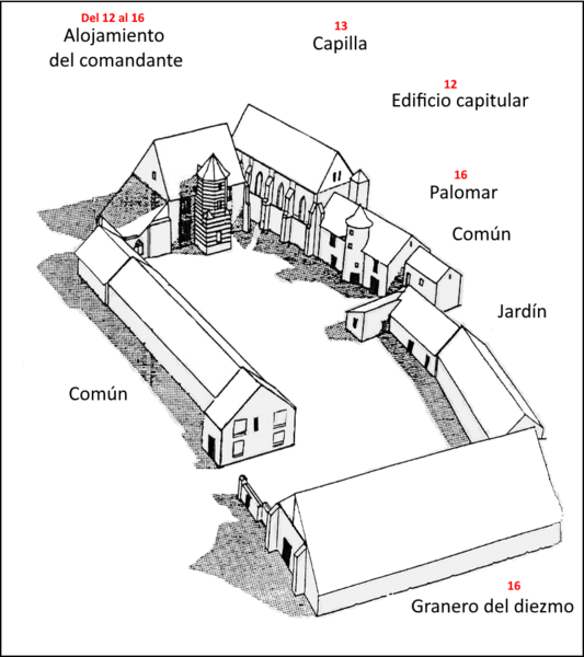 Le logis du commandeur, élevé sur trois niveaux, comprendait cellier, cuisine, réfectoire et probablement des dortoirs ; remanié à plusieurs reprises, il associe maçonneries anciennes et élévations postérieures et fait l'objet de travaux de restauration et d'étaiement. La cour est fermée par d'anciennes écuries et des porcheries, tandis qu'un colombier cylindrique en saillie sur la cour, doté de centaines de nichoirs, marque le prestige et la richesse de la seigneurie.