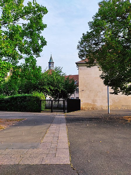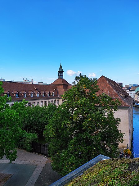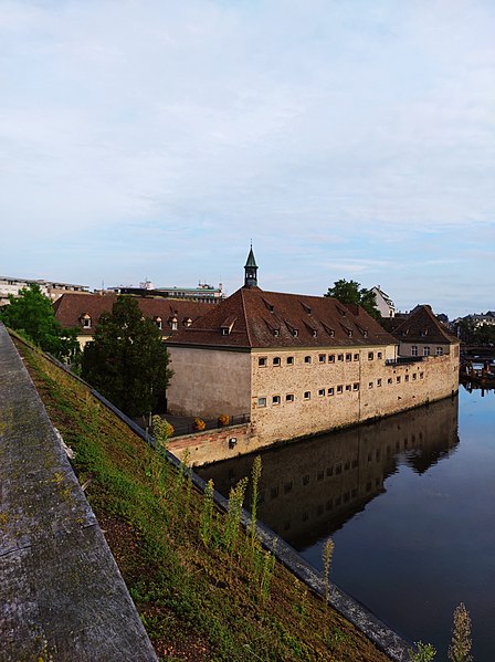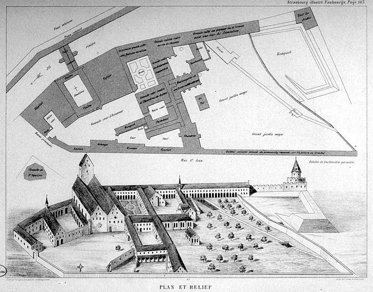 Le site était d’abord occupé par le couvent de la Trinité, confié aux Augustins en 1252, puis abandonné après le déclin de leur communauté. En 1371, le banquier Rulman Merswin fonde la « maison de l’Îsle-Verte » destinée à un ermitage laïque, rachète le couvent aux Trinitaires et le remet aux Hospitaliers de l’ordre de Saint-Jean de Jérusalem. La commanderie devient un haut lieu de la mystique rhénane ; l’empereur Maximilien Ier d’Autriche y séjourne à plusieurs reprises entre 1492 et 1507, et le lieu reçoit aussi des légats pontificaux. Le vaste ensemble comprenait une église, une grange, des écuries et des bâtiments d’habitation ; en 1520 est érigé un petit hôpital pour syphilitiques dont un bâtiment subsiste. Par crainte d’une invasion pendant la guerre de Trente Ans, la commanderie et les couvents voisins sont évacués le 16 janvier 1633, puis la démolition commence en mars 1633 ; la plupart des meubles sont spoliés ou vendus et le site est laissé à l’abandon. De cette époque subsiste notamment un petit pavillon de l’hôpital daté de 1547, sa façade ornée de peintures en trompe-l’œil dans le goût de Wendel Dietterlin.