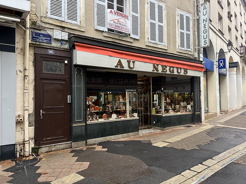 Confiserie « Au Négus », sise 96, rue François-Mitterand, anciennement rue du Commerce : l'avant-salle en totalité, comprenant les décors et leurs structures porteuses, ainsi que le seuil de mosaïques du pas-de-porte sur rue (cad. BK 3, cf plan annexé à l'arrêté) : inscription par arrêté du 16 février 2015