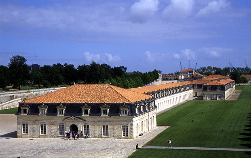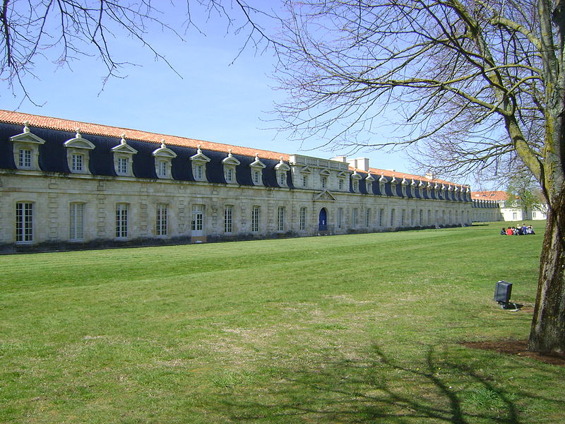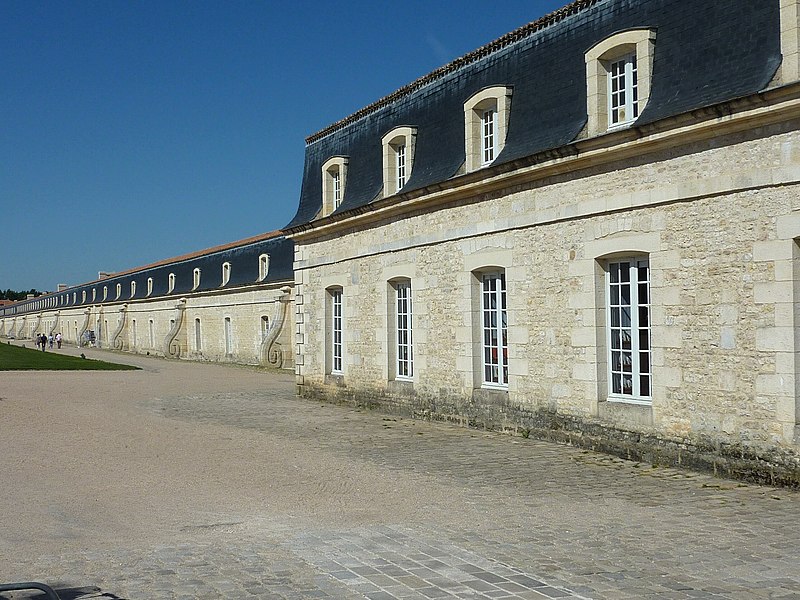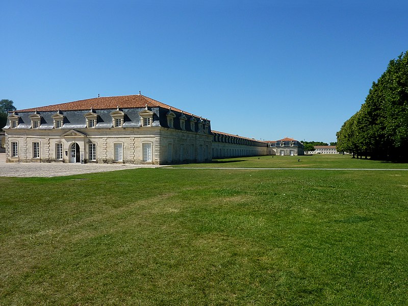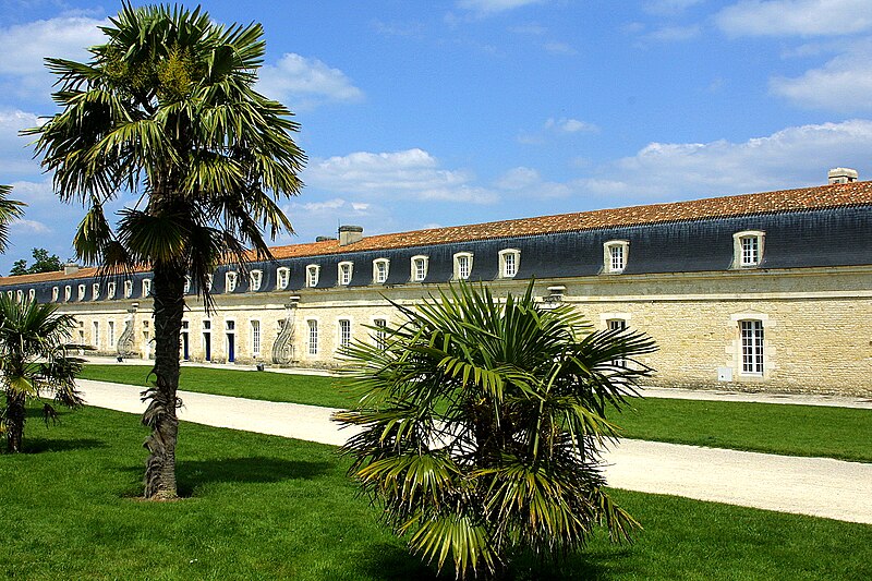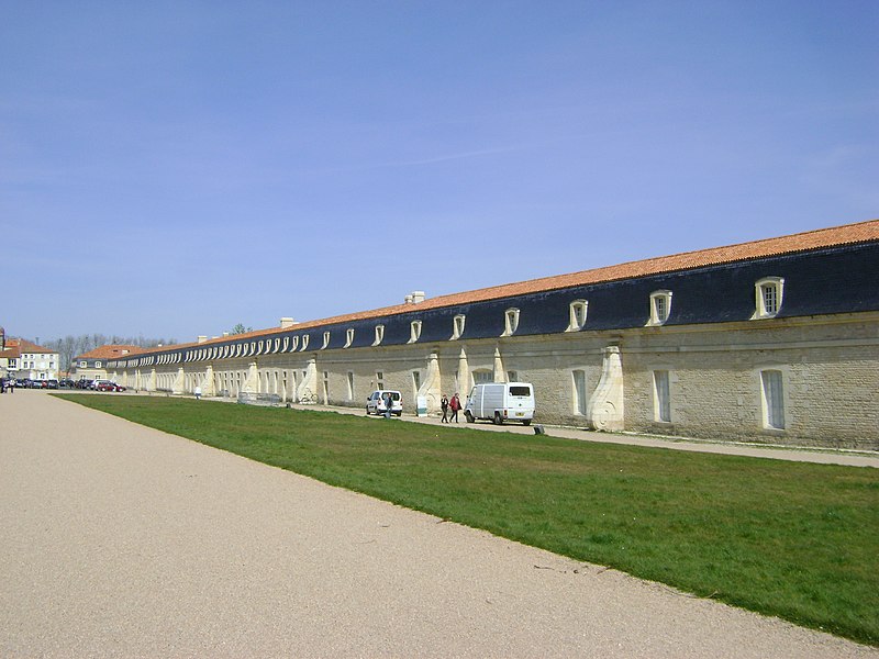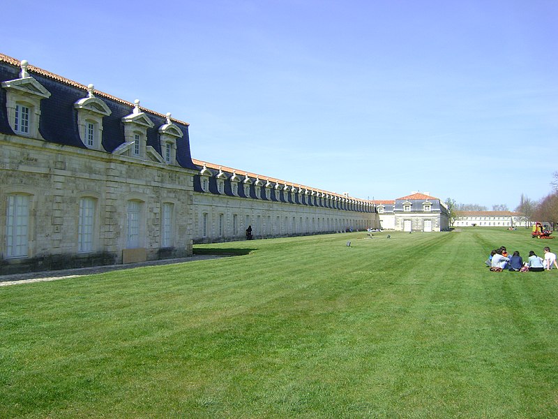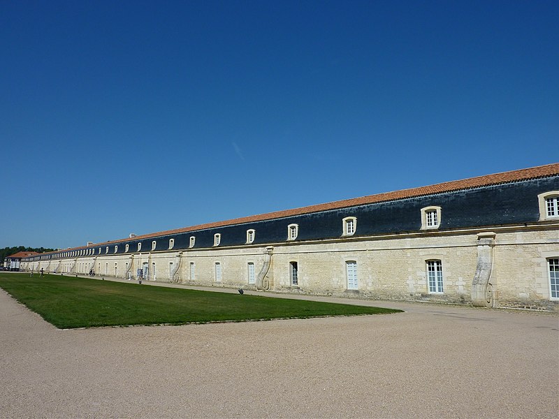 La Corderie de l'Arsenal, édifiée sur les plans de l'architecte François Blondel, est le premier atelier mis en service de l'arsenal de Rochefort et a été conçue pour la confection des câbles et des voiles à partir de chanvre. Colbert choisit Rochefort pour y établir un arsenal protégé par les forts voisins et situé à l'abri, répondant ainsi aux contraintes de sûreté de l'époque. Construite à partir de 1666 sur un sous-sol marécageux, la corderie repose sur un radeau de poutres de chêne et sa construction s'est achevée vers 1669 ; le bâtiment entre en service dès 1670. Sa longueur exceptionnelle, d'environ 374 mètres pour 8 mètres de largeur, répondait à la nécessité de fabriquer en un seul tenant des cordages de grande longueur et fit de la corderie jusqu'au XXe siècle le plus long bâtiment industriel d'Europe. La conception allie fonctionnalité et esthétique classique ; l'intérieur ne comporte aucun mur de refend afin d'accueillir les opérations de filage et de commettage. Le chanvre, principalement venu d'Auvergne, de Bretagne et de la mer Baltique, était stocké et filé dans les combles, transformé en cordages au rez-de-chaussée et traité dans des pavillons dédiés : la voilerie au sud, le magasin à goudrons au nord et des étuves et cuves dans le pavillon central. Dès le XVIIe siècle une fontaine approvisionnait en eau les ateliers et un corps de bâtiment au nord servait de logements pour le maître cordier et les ouvriers. Des contreforts furent ajoutés vers 1669 en raison des contraintes du sol, et le bâtiment a connu des modifications et agrandissements au début du XIXe siècle, notamment aux pavillons nord et central. La mécanisation intervient progressivement au XIXe siècle avec l'introduction de la machine à vapeur et d'appareils inventés par l'ingénieur Hubert vers 1820, ce qui augmente la production destinée à la marine royale et aux colonies. L'activité de cordage cessa en 1862 ; le bâtiment continua d'être réemployé pour des magasins, ateliers, écoles d'artillerie puis pour divers services avant d'être incendié en 1944 et laissé en ruine pendant plusieurs décennies. Classée au titre des monuments historiques en 1967, la corderie fait l'objet d'un vaste projet de réhabilitation mené à partir des années 1960–1970 par la municipalité et des acteurs locaux ; les travaux, entrepris après l'achat du site en 1973, se poursuivent jusqu'aux années 1980. Restaurée, la corderie accueille aujourd'hui des services administratifs et culturels, dont le siège national du Conservatoire du littoral, la chambre de commerce et d'industrie de la Charente-Maritime, le Centre international de la mer et la médiathèque municipale. Le Centre international de la mer, ouvert en 1986 dans l'aile sud, présente une exposition permanente consacrée à la fabrication des cordages avec démonstrations de nœuds, machines et matériaux, et propose également des expositions temporaires et des stages de matelotage. En 2017 l'exposition permanente a été repensée pour offrir un parcours plus interactif, intégrant des vidéos et dispositifs participatifs. L'ensemble muséographique fait partie du grand arsenal de Rochefort et figure parmi les sites touristiques de la ville, recevant plus de 100 000 visiteurs par an. Le périmètre paysager autour de la corderie, nommé jardin des Retours, regroupe le jardin des Amériques, le jardin de la Galissonnière et le jardin de la Marine, aménagés à partir des années 1980 et offrant promenades, labyrinthe et espaces de jeux. Le site conserve des traces de son histoire industrielle et militaire, visibles dans la structure restaurée, l'utilisation de pierres remaniées et la mise en valeur des volumes intérieurs adaptés aux expositions.