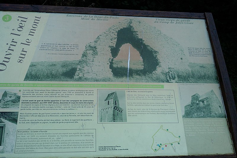 L'ancien corps de garde de Doville, situé sur la commune de Doville dans le département de la Manche, est un bâtiment militaire construit au XVIIe siècle. Ses vestiges en ruines occupent le sommet du mont Doville, dans le Massif armoricain, à 129 m d'altitude. Placé dans un site exceptionnel, il constitue un témoignage de la défense des côtes du Cotentin sous l'Ancien Régime. Les vestiges ont été inscrits au titre des monuments historiques par arrêté du 31 mars 1992. Ils rappellent l'implantation militaire et la surveillance côtière de cette période.