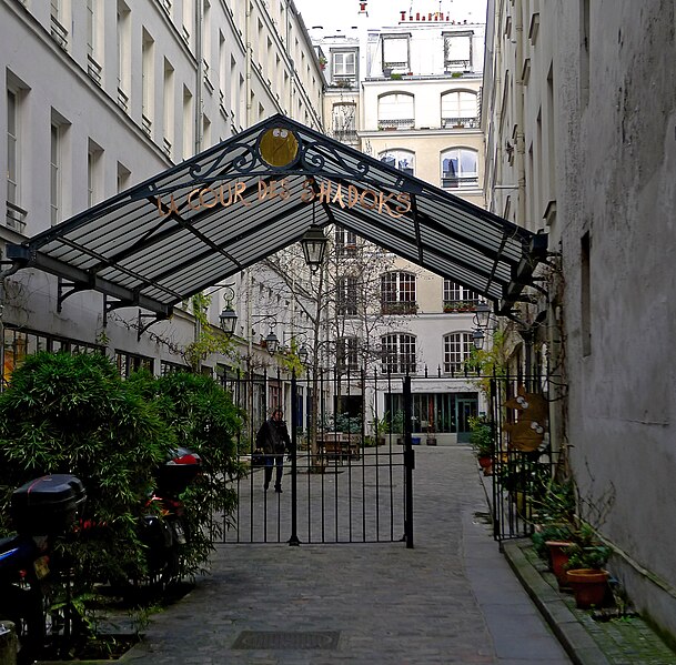 L'ensemble immobilier trouve son origine vers 1640 avec la construction d'une maison de plaisance entre cour et jardin ; de cette époque subsiste un bel escalier à deux noyaux dont le limon sculpté représente les quatre saisons. Aux XVIIe et XVIIIe siècles, la cour s'ouvre aux artisans de l'ameublement et des bâtiments d'un ou deux étages, avec boutiques au rez‑de‑chaussée, sont édifiés dans la première cour, dont subsiste aujourd'hui un bâtiment en équerre dans l'angle sud‑est. Au cours du XVIIIe siècle, le jardin est progressivement remplacé par des écuries, des remises et des hangars à bois, puis, au début du XIXe siècle, une maison décorée d'une frise de palmettes est reconstruite dans la première cour sur des fondations antérieures. Dans le premier quart du XIXe siècle, des logements‑ateliers sont aménagés au nord et à l'est de la seconde cour. À la fin du XIXe siècle, l'architecte De Chabot et l'entrepreneur Pinturier font ériger, à l'ouest de la seconde cour et à l'emplacement des anciennes écuries, un grand immeuble‑atelier de quatre étages ; un bâtiment est également construit en surplomb au‑dessus du passage cocher et l'immeuble sur rue est reconstruit.